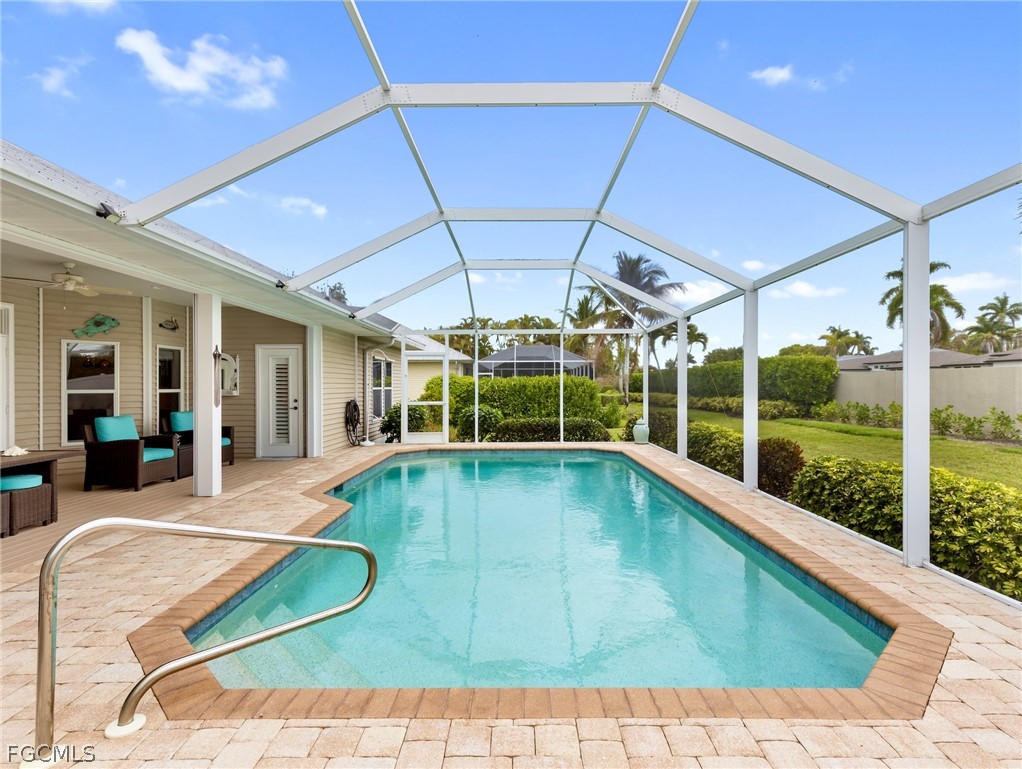 Gorgeous Caloosa Creek 4 bedroom 3 bath Florida style residence designed by award winning Daniel Wayne Homes! Watch the video and call now! This established gated community with mature trees is literally across the street from the Caloosahatchee River at the landmark intersection of John Morris and Iona Rd. Signature rocking chair front porches, decorative siding, and metal roofs identify Caloosa Creek as the sister community of sold-out Coconut Creek off Old McGregor. Meticulously maintained by owners who care, you will discover a move-in-ready home for you and your loved ones to enjoy day one. High ceilings, storm protection on all openings, truly oversized pool built in 2015, tropical flowering landscape, and a BIG back yard. Walk straight across the lanai wood deck transitioning level to pool pavers without a step down and go for a real swim in a saltwater pool! The great room concept with soaring cathedral ceiling enables an efficient use of conditioned space where all can interact, participate, and share in daily living activities. The oversized eat-in kitchen features stainless appliances, solid surface counter tops, spacious pantry, generous cabinetry, breakfast bar, island, and built-in desk. And of course, there’s an elegant formal dining room for those more than just casual gatherings. Spend a third of your life in this primary suite worthy of eight or more hours each peaceful night and waking morning with views of the sparkling pool water. Spacious walk-in closet, dual sinks, and refreshing shower experience accented by a frameless clear glass enclosure. The ensuite second bedroom at the back offers a full bathroom doubling as a pool bath. Bedroom four at the front is currently utilized as a career home office. Caloosa Creek is more than just a name, it is a Southwest Florida lifestyle where neighbors get in their daily steps around the one-mile shaded circle with sidewalks on BOTH sides. Amenities you saw in the video include clubhouse with WIFI, heated community pool, playground, and tennis court also lined for pickle ball. Go ahead, take one more look through the photos, and call now to learn more.