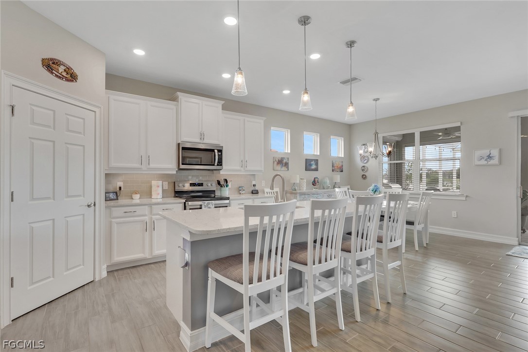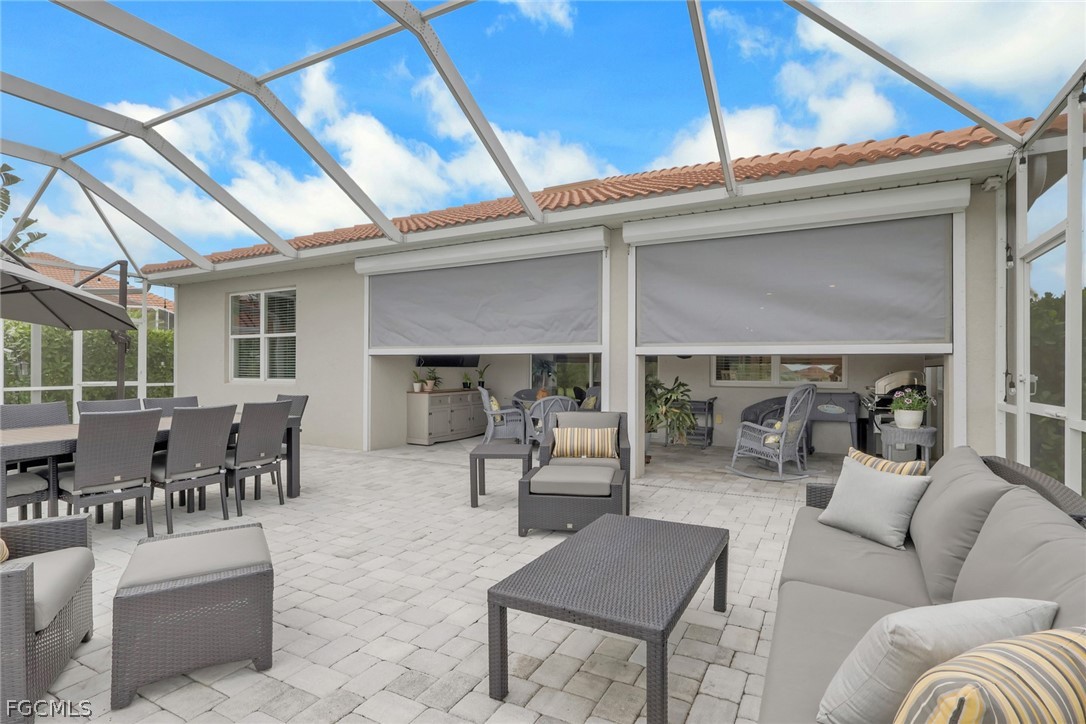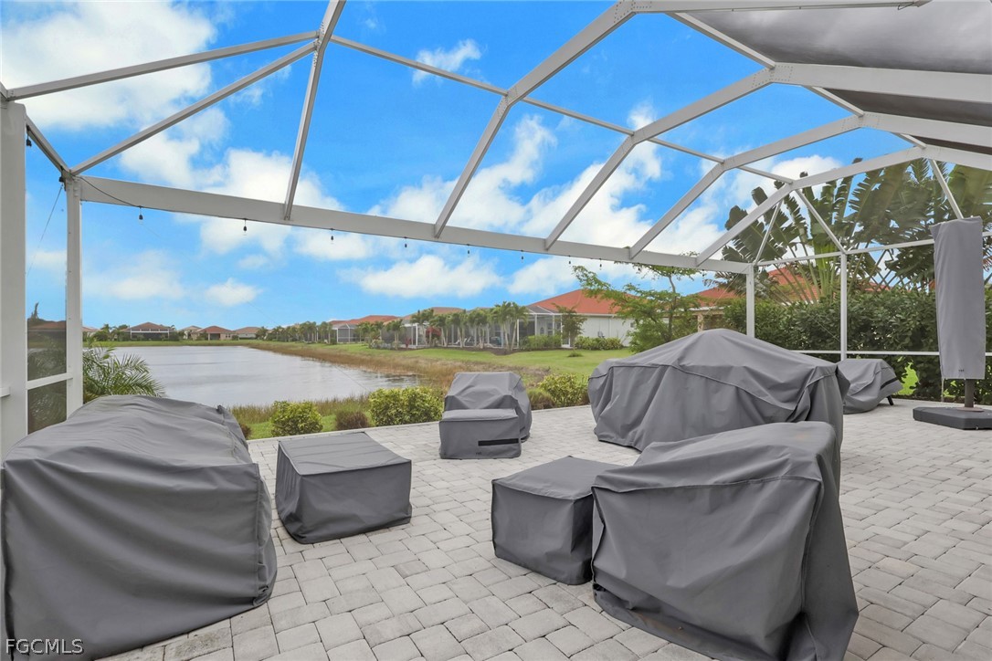 Luxury waterfront living in Cascades at River Hall, a fabulous 55+ active adult community. This stunning open concept home with tile flooring throughout boasts 3 bedrooms, a 4th bedroom/office, 2 bathrooms, and a large 3 car garage. The kitchen is a chef's delight with quartz counters, stainless steel appliances, and a large island for casual entertaining/dining. The expansive water views are visible from the kitchen, dining and living areas. Step outside to your private, screened 20 x 40 lanai with 40 foot-wide picture window to enjoy the spectacular expansive lake view with plenty of room entertaining making your backyard a paradise. The community offers an extensive list of social activities planned all year round, including pickleball, bocce, and tennis courts for the active lifestyle you deserve. Low HOA fees include all your lawn care, access to the fitness center, resort-style heated pool, and community room for gatherings with family, friends and/or neighbors. This is a great opportunity to live in luxury and comfort in a prime location close to shopping and dining. Make this house your forever home and start living the lifestyle you deserve.