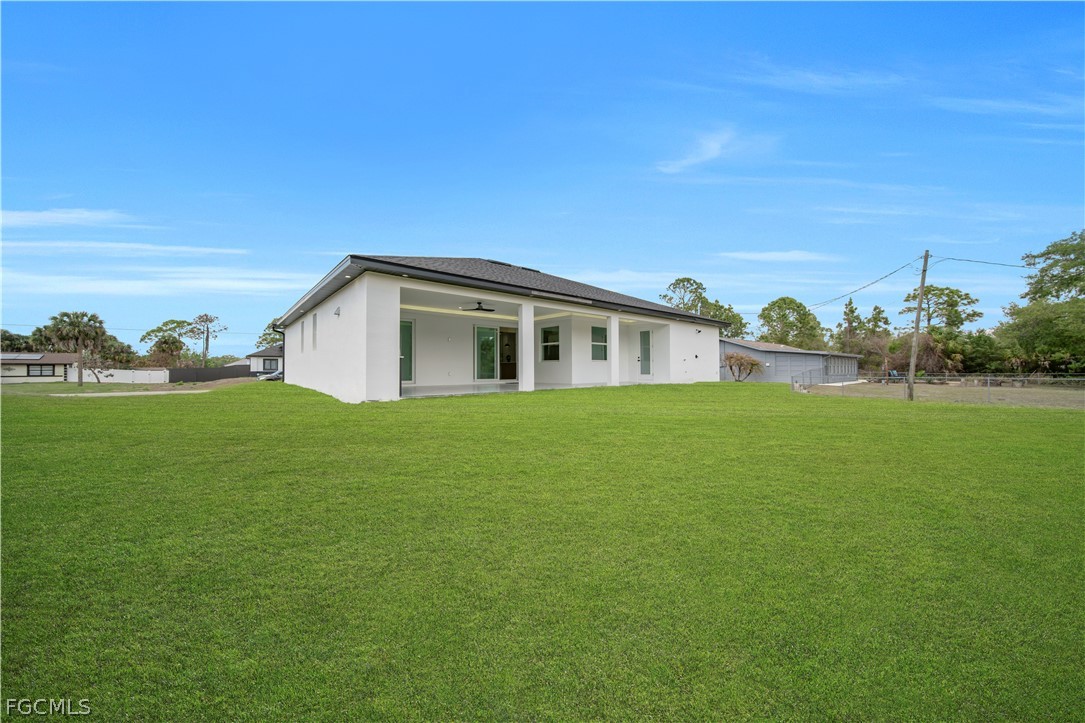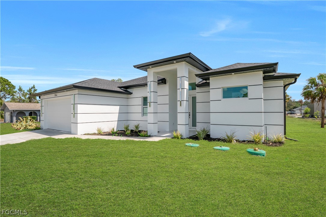 ***NEW CONSTRUCTION • HALF-ACRE LOT • MODERN DESIGN*** Not your typical new construction. This thoughtfully designed home offers 4 bedrooms, 3 bathrooms, and 2,973 total sq ft (1,916 under A/C) with high ceilings, a 2-car garage, and a functional open layout. Situated on a rare 0.50-acre lot, this property provides space, privacy, and flexibility rarely found in the area. Inside, the home features modern finishes with unique touches throughout, including LED lighting across the entire property and custom bathroom niches that enhance both design and functionality. The layout includes a junior suite, ideal for guests, extended family, or added flexibility. The main living area opens to an extended lanai with over 500 sq ft under roof, complemented by a 16-foot-wide outdoor kitchen, creating a true indoor-outdoor living experience designed for entertaining and everyday enjoyment.***Come see it in person — easy to show and ready to go. Seller is flexible and open to working with the right buyer. Bring your offer and let’s make it happen.***