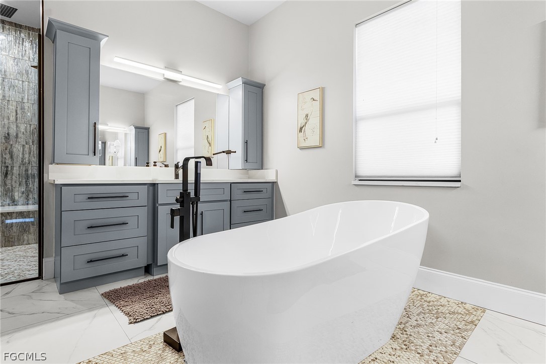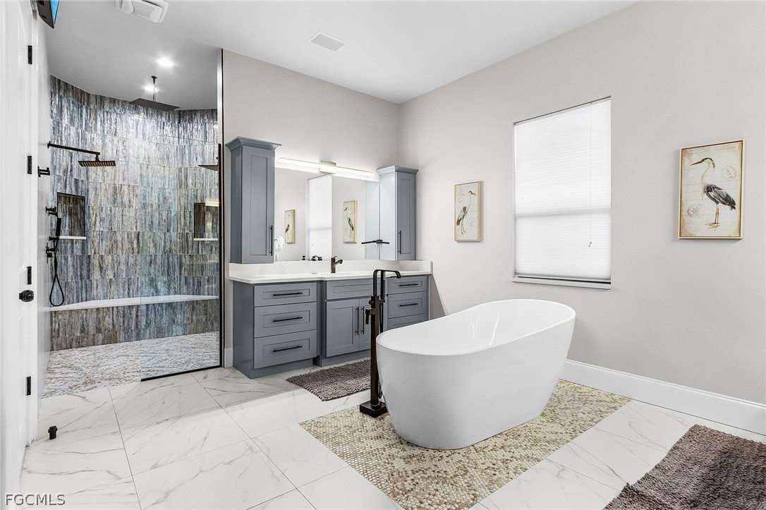 The primary suite is conveniently located on the first floor, providing a private retreat with a freestanding soaking tub and an expansive floor-to-ceiling tiled shower. Guest rooms reflect the same level of detail, while the executive office and media spaces offer exceptional flexibility, easily accommodating a 6- or even 7-bedroom configuration.