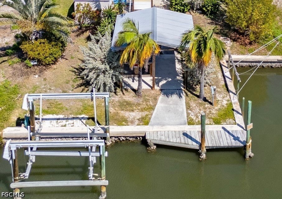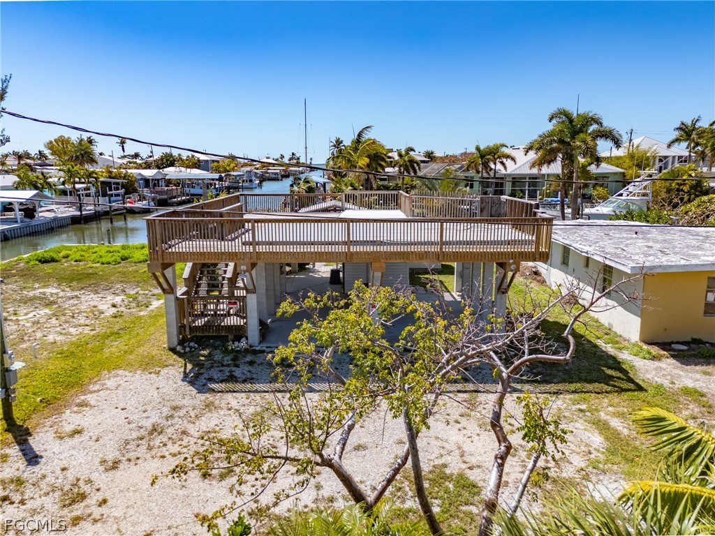 It’s all about the location, location! Beautiful views looking south down the canal to the bay and Sanibel Island! The foundation was new in 2005 when the 1950’s cottage was elevated. With severe damage from Hurricane Ian, just the home was torn down, leaving the resilient existing piling foundation that provides the solid base for your future coastal retreat. The groundwork is set on this blank canvas; now is your chance to design your ideal waterfront dream home that takes advantage of those fantastic water views. Your Pine Island lifestyle awaits! Located on intersecting canals, with direct, deep water access to the Intracoastal Waterway, this property is a boater's paradise. Access the open waters with ease, whether you’re heading out for a day of fishing, exploring the beautiful nearby islands and Gulf beaches, or simply enjoying a sunset cruise. Charter guides and fisherman take note. Great visibility on a busy canal with quick access to some of the best fishing in Southwest Florida! Picture your evenings spent entertaining friends and family in the comfortable backyard with covered bar area overlooking the canal. Property features include a boat lift and dock, shared cut-in boat slip, mature landscaping, outdoor shower, enclosed downstairs storage/utility room, and a detached shed. Plenty of parking for cars, trailers, boats, and even an RV. Enjoy the convenience of walking, biking, or hopping on your golf cart, and in minutes being at all the restaurants, bars, shops, and fun that St. James City has to offer! Seller financing available. Make your offer today!