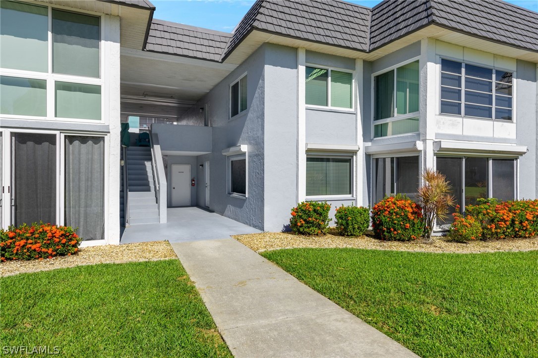 Discover a rare opportunity for waterfront living in this beautifully maintained 2-bedroom, 2-bath ground-floor condo, complete with a detached deep single-car garage. Nestled in the desirable Bay Harbor Club—a charming 2-story building within an active 55+ community—this move-in-ready home offers scenic views of the Caloosahatchee River. Freshly painted and featuring new carpet, a 2023 roof, and updated appliances (including stove, refrigerator, dishwasher, washer, and dryer), this condo is designed for comfort and convenience. Hurricane protection includes electric lanai shutters and roll-down hurricane shutters on all windows, offering peace of mind year-round. HOA fees also include flood insurance. Unwind in the enclosed Florida room with sweeping river views, or relax on your private lanai overlooking a beautifully landscaped courtyard. Community amenities include a heated pool, a grilling area, and a brand-new fishing pier with a cleaning station—ideal for outdoor lovers. The building’s exterior has recently been repainted, adding to its well-kept appearance. Just a short walk away, you'll find a waterfront restaurant and an ice cream parlor, with four additional dining options at the nearby marina. A free seasonal trolley provides easy access to vibrant Downtown Fort Myers, featuring over 60 restaurants, galleries, shops, and theaters.