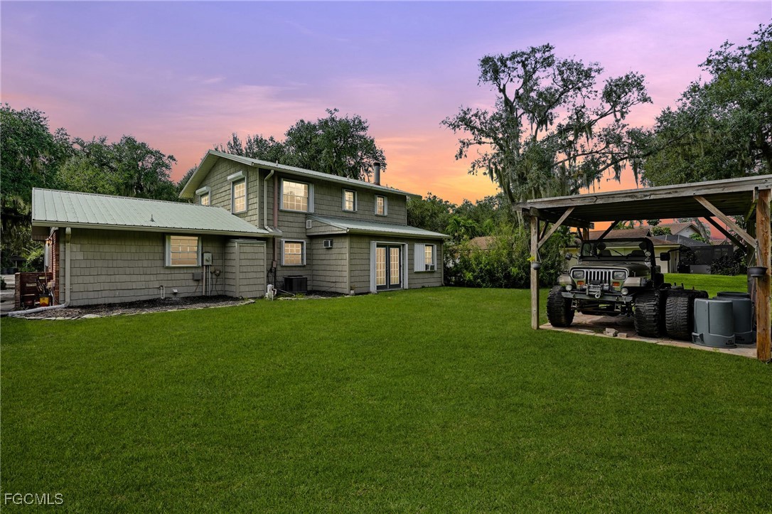 Buyer incentive includes a 1-year AHS ShieldComplete® Home Warranty for added peace of mind. Tucked along a private, tree-canopied street just off Old Olga Road, this two-story residence sits on an oversized 1/3-acre lot with no HOA, offering privacy, flexibility, and a true waterfront lifestyle. A standout feature of this property is its deeded direct river access with private boat ramp and dock, providing Gulf access via the Caloosahatchee River-a rare and highly desirable amenity. Enjoy tranquil mornings from the front porch overlooking the river, and relaxing evenings by the riverside firepit as boats pass by. The exterior features a durable metal roof, brick façade with vinyl second-story siding, and accordion shutters. An extended concrete driveway provides ample parking and includes a 30-amp RV hookup, ideal for RVs, boats, or additional vehicles. An oversized two-car garage adds excellent storage and workspace. Inside, the home offers new tile flooring throughout (no carpet), a renovated kitchen, updated primary bathroom, and fresh interior paint, creating a bright, move-in-ready interior. The spacious two-story layout combines rustic charm with modern updates in a peaceful, riverfront setting. This property delivers private waterfront access, Gulf boating convenience, and no HOA restrictions-a unique opportunity to own a home that truly stands out.