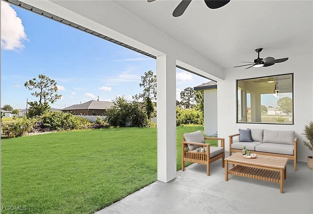 MOVE IN READY - NEW CONSTRUCTION on a corner lot featuring a split open concept floor plan with 3 bedrooms plus a Den, 2 baths, and 2 car garage. The modern design offered high tray ceilings, French doors, all impact-resistant doors, and windows, luxury vinyl plank floors throughout, quartz countertops and backsplash in the kitchen with white shaker cabinets, stainless-steel appliances and waterfall center island. The Master bedroom offers his and her walking closet leading to the master bath with quartz counters, dual sinks, LED light mirror, a barn door and frameless glass shower doors. All fixtures and finishes at this house show elegance and quality. The extended under-roof lanai is perfect for outdoor gatherings and activities…. GREAT LOCATION in a very desirable Lehigh Acres area, close to 82, Off Sunshine with quick access from/to Fort Myers; short distance drive to shopping plazas, schools and more. Don’t miss this opportunity to own a new home with modern, elegant features. House is staged. Furniture and decoration do not convey.