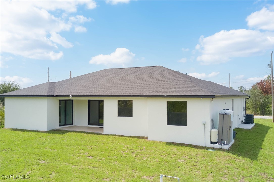 Welcome to your dream home! This stunning single family home boasts 4 bedrooms, 3 bathrooms, & a 2 car garage, providing ample space for your family to grow & thrive. The majestic kitchen features granite counters, stainless steel appliances, & 24X48 porcelain tile, perfect for entertaining guests or preparing delicious meals for your loved ones. There are 2 master suites. One is equipped with his and her closets, separate tub & shower and double sink vanities. The house boast of a total of over 3013 sq ft & over 2300 sq ft of living area & offers luxury and comfort at every turn. The whole house reverse osmosis water system ensures clean & pure water for your family, while the irrigation system keeps your yard looking lush and green all year round. Upgraded impact windows & sliding doors provide added security & peace of mind, allowing you to relax & enjoy the beautiful views of your surroundings. Don't miss out on the opportunity to make this exquisite home yours - schedule a showing today & start living the life you've always dreamed of!