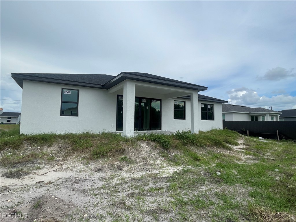 Welcome to your dream home, a brand-new construction in a prime central location in Lehigh Acres that will be completed this Winter. This home offers a perfect mix of luxury, style, and convenience, built with exceptional quality and attention to detail. It's designed for modern living and peace of mind. This spacious 3-bedroom, 2-bathroom residence features a versatile den that's perfect for a home office or cozy reading nook. The split floor plan ensures privacy, with the luxurious primary suite tucked away on one side of the home. The primary suite is a true retreat, boasting an elegant tray ceiling and two spacious walk-in closets. In the spa-like primary bathroom, you can relax in a standalone soaking tub or enjoy the sleek, frameless shower. The bathroom also features two separate sinks and vanities, along with a private water closet. The heart of the home is the chef's kitchen, which features high-end GE brand stainless steel appliances, elegant quartz countertops, and soft-close cabinetry with a beautiful tiled backsplash. This space flows seamlessly into the large great room, making it ideal for entertaining. Throughout the home, you'll find 8-foot doors, decorative lighting and fans, and stunning large tile flooring. The living room also has a tray ceiling, adding an extra touch of sophistication. Beyond the stunning interior, you'll find top-of-the-line features for comfort and security. Cat 5 Hurricane impact windows and doors provide superior protection and energy efficiency. The exterior features a beautifully landscaped yard with lawn irrigation, which you can view from the screened-in lanai. The builder even added an integrated pest control system, allowing for easy access and a pest-free home. This fantastic location puts you close to everything you need. You're just a short drive from RSW International Airport, SR-82, and I-75, making travel a breeze. Enjoy the excitement of Spring Training for the Boston Red Sox and Minnesota Twins, or explore the area's excellent shopping and dining. When you're ready for a day in the sun, the beautiful Gulf Coast beaches are not far away. This home is more than just a place to live—it's a lifestyle. Come see what makes this brand-new home so special.