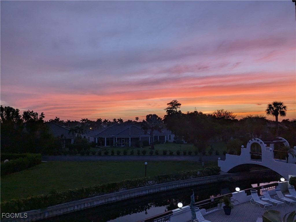 Ambiance abounds from the moment you enter this lovely GULF ACCESS community. This unique community with its gorgeous Spanish architecture is unlike any cookie cutter community found in the vicinity. This second floor end unit is all one level (2nd floor access via steps or elevator) boasts an open concept plan, upgraded kitchen, ample storage, covered parking and stunning views! Immediately start enjoying your investment as it comes turnkey and is ready for a new owner. Step out your unit to find the community pool/spa and a few steps further over the footbridge will lead you to one of two sets of tennis courts. Take a short walk to the fitness center/community room and another short stroll to the marina equipped with a fishing pier and a private island. The fees include a freshwater slip accommodating up to a 26 ft boat which can be transferred via a forklift service to the Saltwater Marina situated on the Caloosahatchee River. The highly desirable Iona area offers everything you need nearby without fighting traffic. When you are ready to venture out, take a 5 mile car or bike ride to Fort Myers Beach or world renowned Sanibel Island. Alternatively, jump in your boat & head a few miles north to the lovely historical downtown Ft Myers or south to some of the best boating you will ever experience. This community (not in a flood zone) is a total hidden gem and faired extremely well in Ian. NEW Metal Roofs with a tiled appearance installed in 2025. Hurry and make your plans for winters away from the cold & snow to PARADISE!!