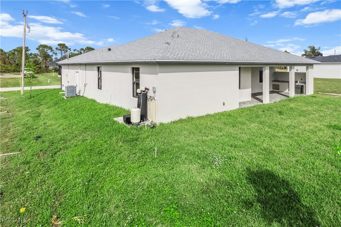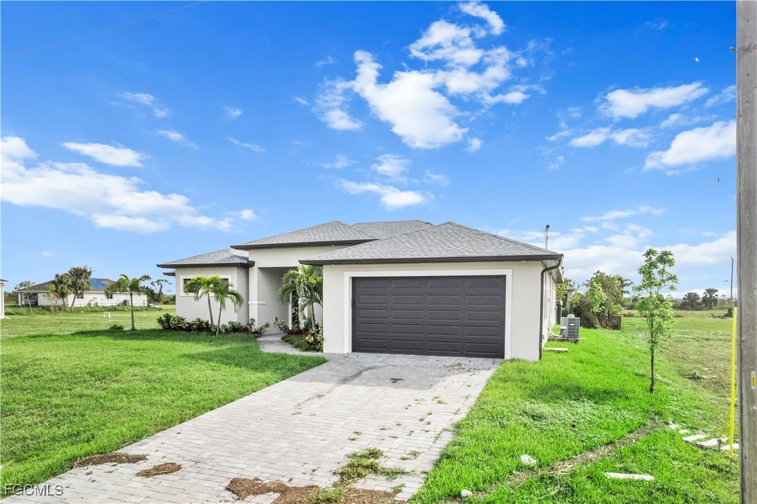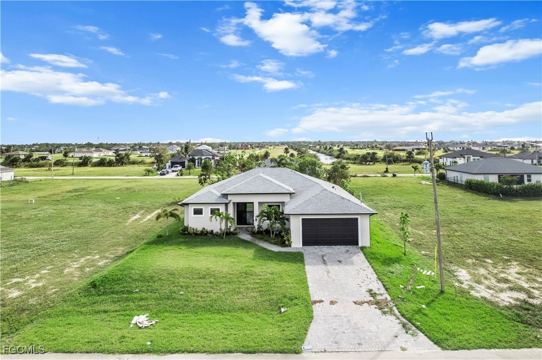Welcome to your NEW CONSTRUCTION dream home in Cape Coral LOADED WITH UPGRADES and modern finishes. Featuring 3 beds plus den/office, 2 full baths, and nearly 1,918 SF. Designed with high ceilings, crown molding, and detailed coffered ceilings. Plus upgraded porcelain tile throughout (no carpet) & hurricane-impact windows & doors. The oversized 2-car garage has epoxy floors. The gourmet kitchen is a showstopper with a quartz waterfall island, elegant white shaker cabinetry, stainless steel appliances, pendant lighting, and a dry bar/coffee station. A formal dining area and bar-top seating. Retreat to the luxurious primary suite, featuring tray ceilings and a spa-quality bathroom with dual vanities, a soaking tub, a feature wall, and a walk-through shower. The spacious walk-in closet is perfect for storing clothes and accessories. Two large guest bedrooms, a private den/flex space, and a full guest bath with a walk-in shower provide ample space for family and guests. The bright, open-concept great room features soaring tray ceilings, recessed lighting, and impact-resistant sliding glass doors that seamlessly connect indoor and outdoor living spaces. Enjoy Florida living at its best in your private backyard oasis, with a large undercover patio lanai, outdoor kitchen with built-in grill, and plenty of room for a future pool. Entertain friends, relax with family, or unwind while enjoying SW Florida’s endless sunshine. Located in the desirable NW Cape near boat ramps and golf courses. Buy with confidence knowing this new home was built to the latest Florida building codes, with storm protection and energy efficiency in mind. Cape Coral’s most desirable and fast-growing areas. Just minutes from the future Cape Coral Grove, a 131-acre mixed-use town center on Pine Island Road, may feature over retail and entertainment, upscale apartments, a 125-room hotel, two public parks, and vibrant community events. It will serve as a lively hub for living, shopping, dining, working, and hosting up to 200 annual events—all expected to generate a projected $1.3 billion economic impact that will reshape the area. You're just minutes from shopping, dining, parks, schools, and a short drive to beaches and boating. Golf enthusiasts will appreciate being just minutes from Palmetto Pines Country Club & Coral Oaks Golf Course. It is also near the highly anticipated Seven Islands waterfront development, expected to feature restaurants, boutique shops, marinas, parks, green space, and possibly a beach area—making it one of Cape Coral’s most promising future destinations. Enjoy quick and easy access to Fort Myers, beautiful Florida beaches, theaters, and events. Additional developments: The Cove at 47th with w/boutique shops & nightlife; the Bimini Basin project with restaurants and a new Lee Health medical facility; the reimagined Cape Coral Yacht Club with beach, marina, and recreation center; and Slipaway Marina offering boat slips, waterfront dining, and entertainment.