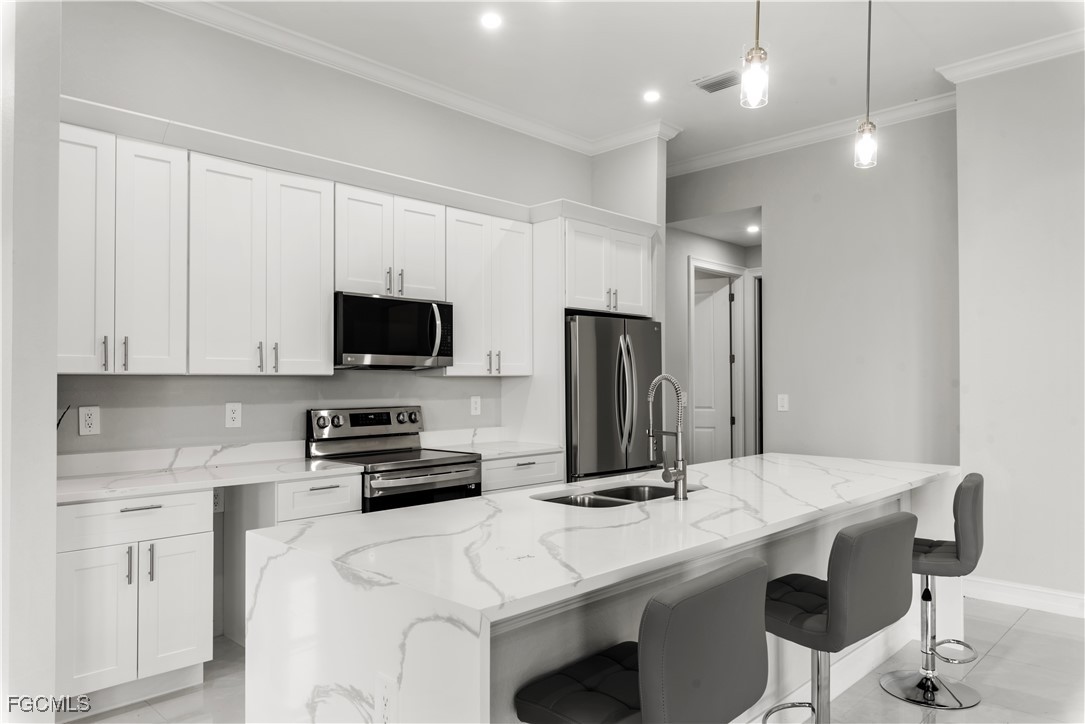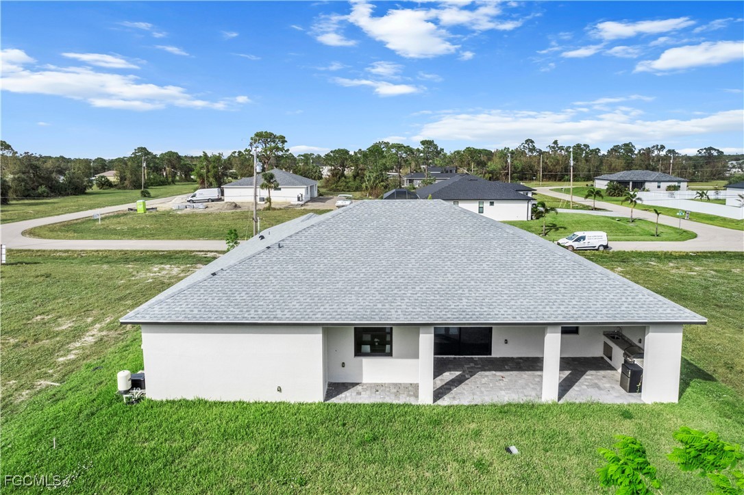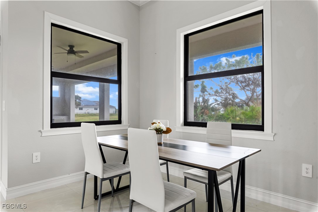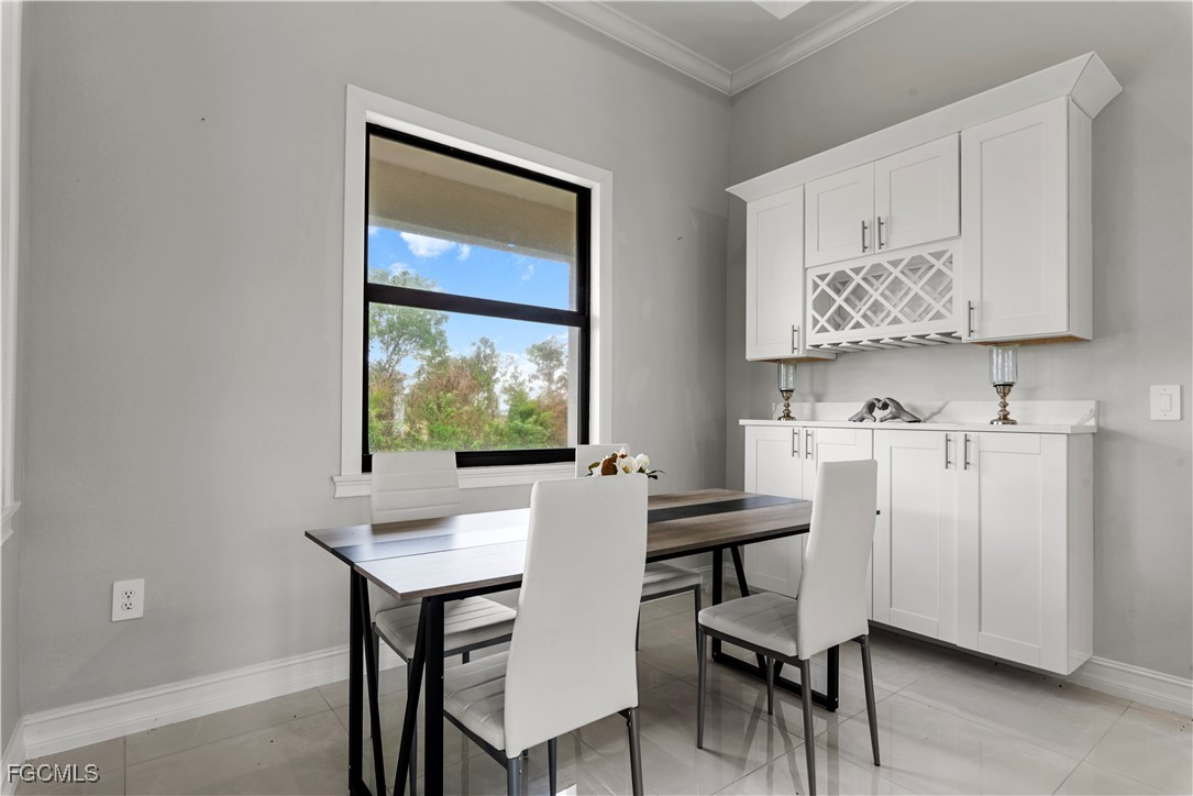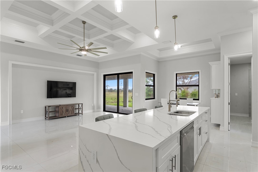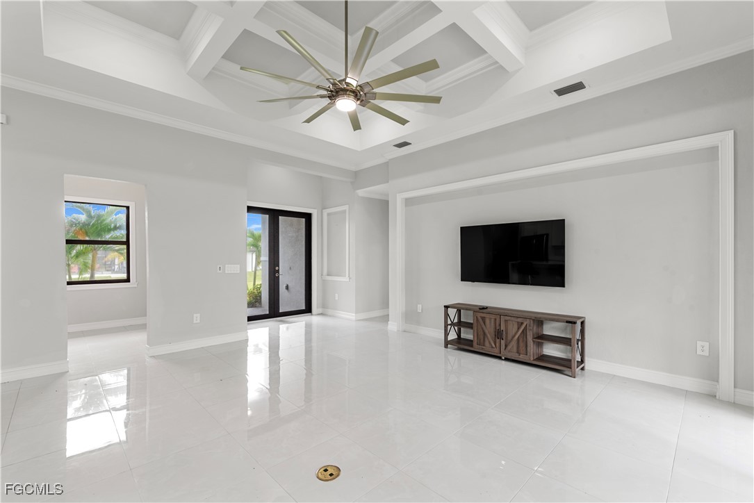 Welcome to your NEW CONSTRUCTION dream home in Cape Coral LOADED WITH UPGRADES and modern finishes. Featuring 3 beds plus den/office, 2 full baths, and nearly 1,918 SF. Designed with high ceilings, crown molding, and detailed coffered ceilings. Plus upgraded porcelain tile throughout (no carpet) & hurricane-impact windows & doors. The oversized 2-car garage has epoxy floors. The gourmet kitchen is a showstopper with a quartz waterfall island, elegant white shaker cabinetry, stainless steel appliances, pendant lighting, and a dry bar/coffee station. A formal dining area and bar-top seating. Retreat to the luxurious primary suite, featuring tray ceilings and a spa-quality bathroom with dual vanities, a soaking tub, a feature wall, and a walk-through shower. The spacious walk-in closet is perfect for storing clothes and accessories. Two large guest bedrooms, a private den/flex space, and a full guest bath with a walk-in shower provide ample space for family and guests. The bright, open-concept great room features soaring tray ceilings, recessed lighting, and impact-resistant sliding glass doors that seamlessly connect indoor and outdoor living spaces. Enjoy Florida living at its best in your private backyard oasis, with a large undercover patio lanai, outdoor kitchen with built-in grill, and plenty of room for a future pool. Entertain friends, relax with family, or unwind while enjoying SW Florida’s endless sunshine. Located in the desirable NW Cape near boat ramps and golf courses. Buy with confidence knowing this new home was built to the latest Florida building codes, with storm protection and energy efficiency in mind. Cape Coral’s most desirable and fast-growing areas. Just minutes from the future Cape Coral Grove, a 131-acre mixed-use town center on Pine Island Road, may feature over retail and entertainment, upscale apartments, a 125-room hotel, two public parks, and vibrant community events. It will serve as a lively hub for living, shopping, dining, working, and hosting up to 200 annual events—all expected to generate a projected $1.3 billion economic impact that will reshape the area. You're just minutes from shopping, dining, parks, schools, and a short drive to beaches and boating. Golf enthusiasts will appreciate being just minutes from Palmetto Pines Country Club & Coral Oaks Golf Course. It is also near the highly anticipated Seven Islands waterfront development, expected to feature restaurants, boutique shops, marinas, parks, green space, and possibly a beach area—making it one of Cape Coral’s most promising future destinations. Enjoy quick and easy access to Fort Myers, beautiful Florida beaches, theaters, and events. Additional developments: The Cove at 47th with w/boutique shops & nightlife; the Bimini Basin project with restaurants and a new Lee Health medical facility; the reimagined Cape Coral Yacht Club with beach, marina, and recreation center; and Slipaway Marina offering boat slips, waterfront dining, and entertainment.
