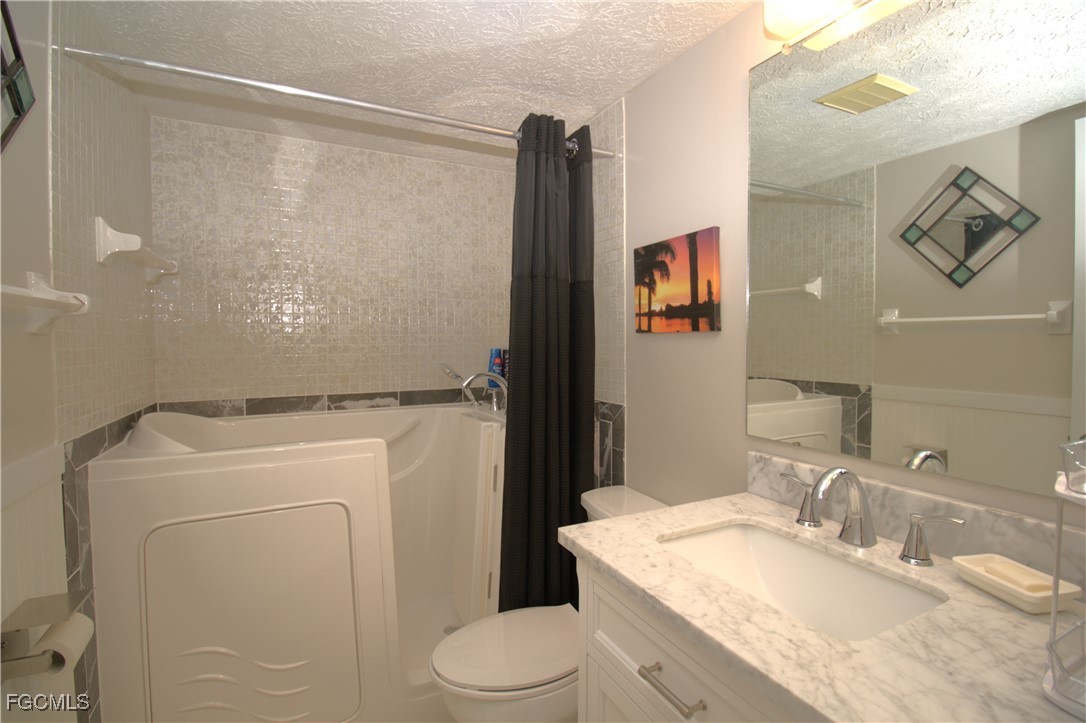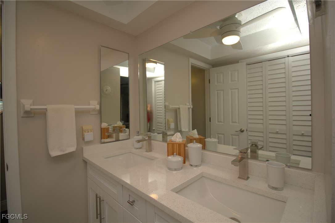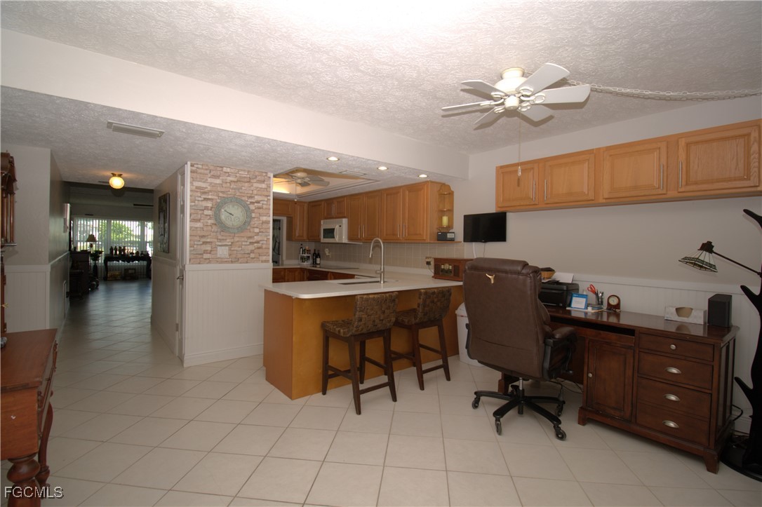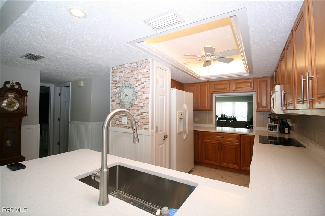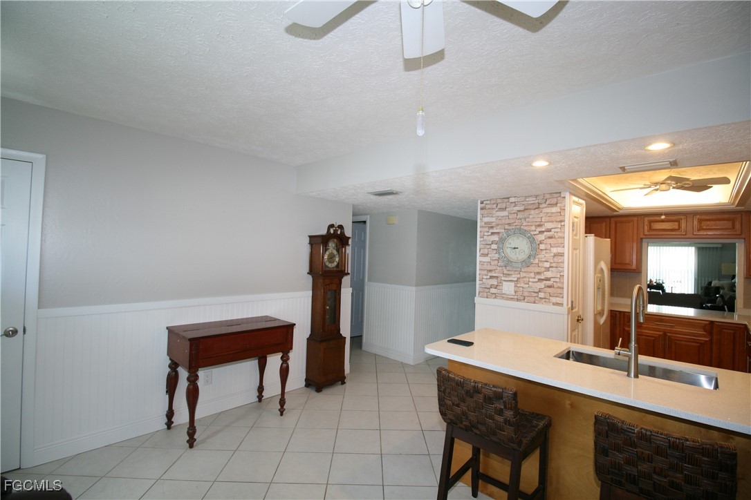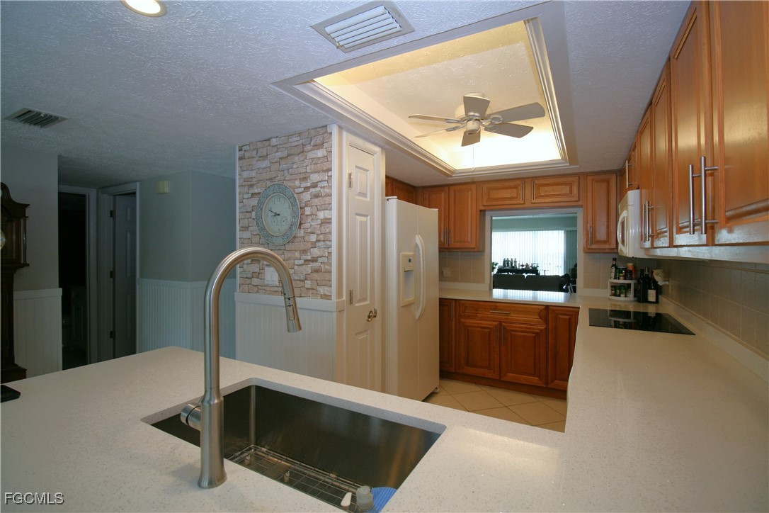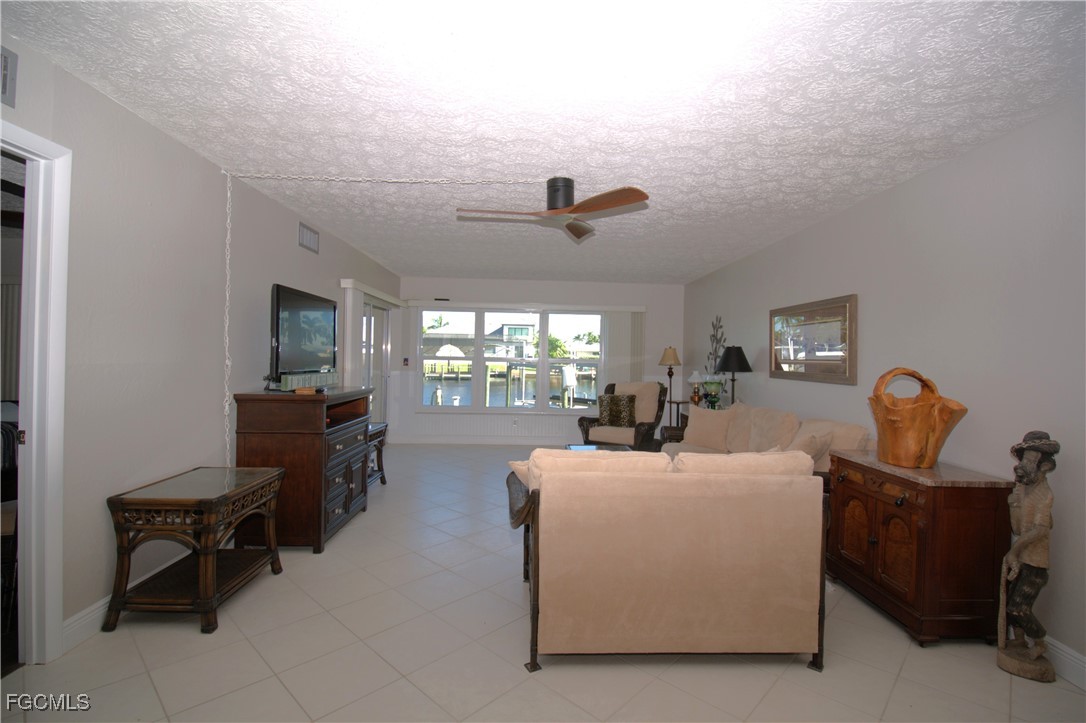 DIRECT GULF ACCESS CONDO/NO BRIDGES! Located on 200 ft. wide intersecting canals with expansive water views. This first floor unit has been beautifully updated featuring an updated kitchen with quartz countertops and tile backsplash, plantation shutters and bead board wainscoting for a coastal vibe. Lots of water views from the spacious greatroom area, with room to accommodate a dining table or extra seating for guests. Flexible space off the kitchen can be used as a breakfast/dining area or home office. Primary Suite has slider doors leading to the screened lanai with a beautiful water view. Both bathrooms feature quartz countertops and stylish tile accents with a large walk-in tub in the guest bath and double sinks in the primary bath. Large laundry room with extra cabinets for storage. Plenty of extra storage space in this unit with a large walk-in closet in the primary suite bathroom. Dock space is assigned by the association. Well funded HOA, they have just completed resurfacing the community pool for residents to enjoy. The boat slip assigned to this unit does not have a dock or lift installed, but, can be installed by the new owner.