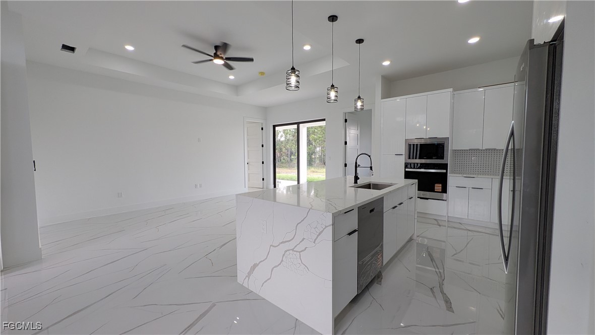 READY NEW CONSTRUCTION HOME 2025! Discover this stunning brand-new construction home in the fast-growing community of Lehigh Acres! On an open floor plan with countless upgrades with 2371 Total Sqft. This single-family home offers luxury features throughout along with quality high-end construction-Double Door Entry, Open Concept Floor, Impact Windows and Doors, Cathedral Ceilings, Smoke Detectors, LED lighting, porcelain tile floors Throughout, Utility Sink. Kitchen Island with room for seating, Wood Cabinets with soft close doors and Quartz Countertops. Stainless Steel Kitchen Appliances. Spacious Master Suite with Cathedral Ceiling, Walk-In-Closets, Dual Sinks, Glass Door. Two Car Garage, Driveway in Pavers, sprinkles Large and Relaxing Lanai. Wonderful and quiet neighborhood, NO HOA fees! This Property is ready to live and enjoy.