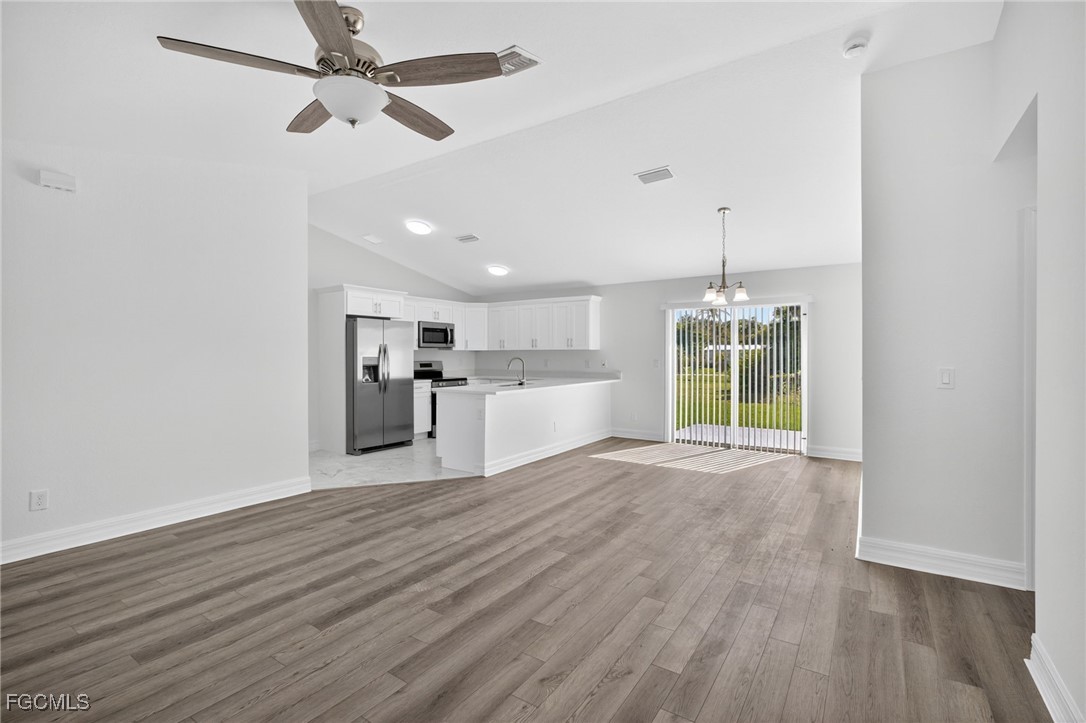 Completed, Brand-new block-constructed home is ready to MOVE-IN NOW! Built to current code and outside the flood zone—no flood insurance required! Loaded with upgrades including stainless steel appliances, stone countertops, hard-surface flooring, and fully tiled bathrooms. Primary suite features dual closets, private water-closet, and double-sink vanity—! Conveniently located near dining favorites like Fish Tale Grill by Merrick Seafood and Gather – Cape Coral. Close to schools including Diplomat Elementary School and Diplomat Middle School. Enjoy outdoor time at Sirenia Vista Park. Seller is offering a contribution with this home, which comes with a 1-year builder warranty and 10-year structural warranty.