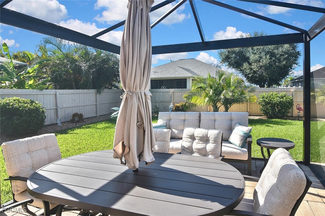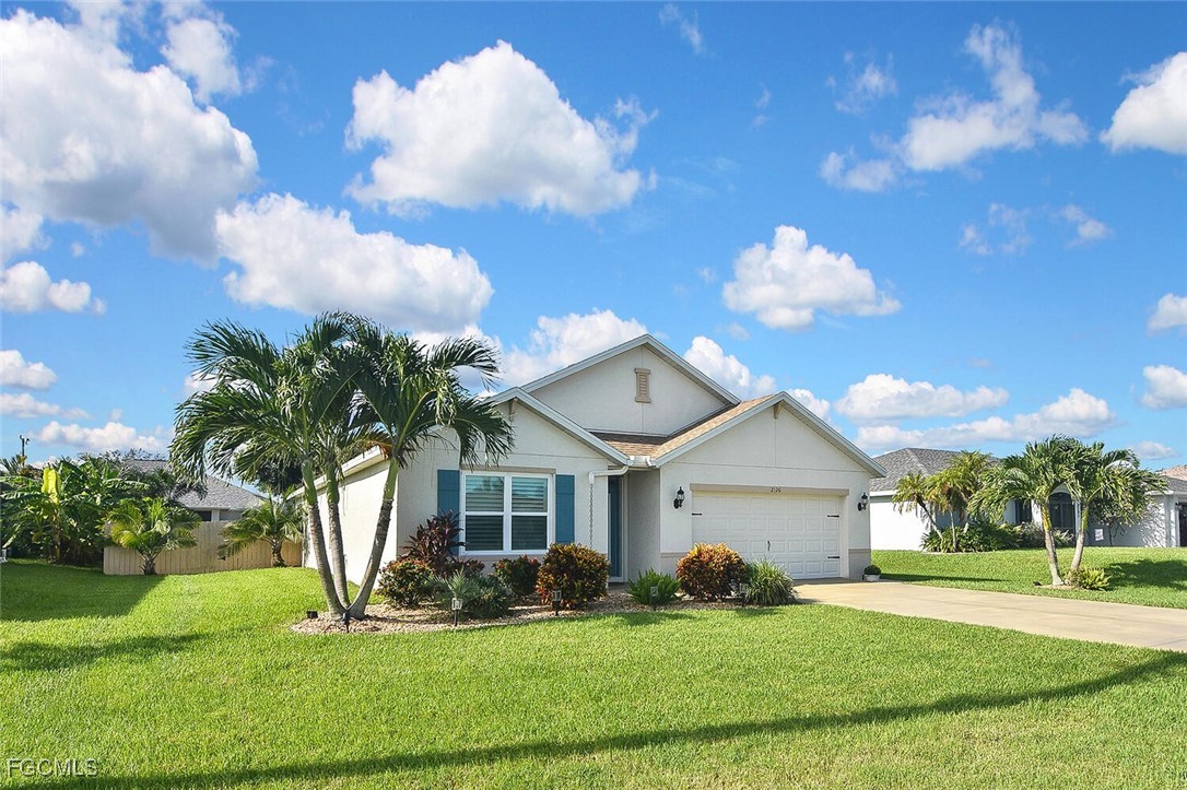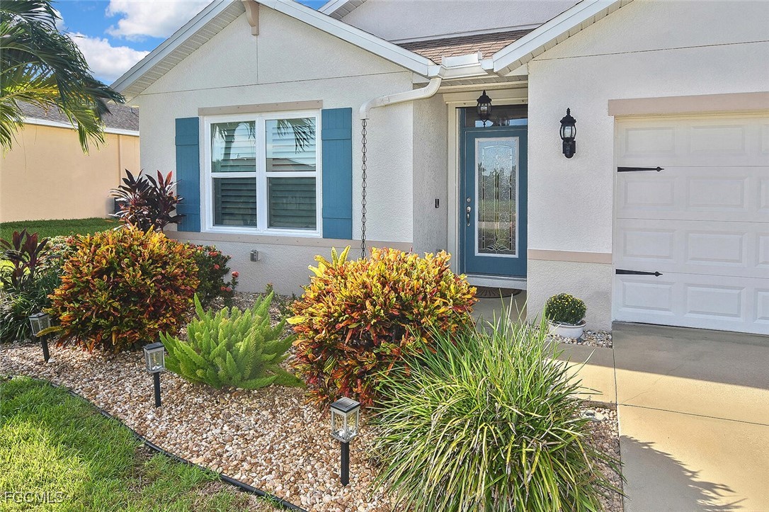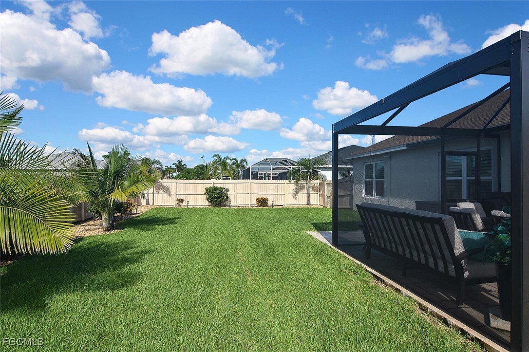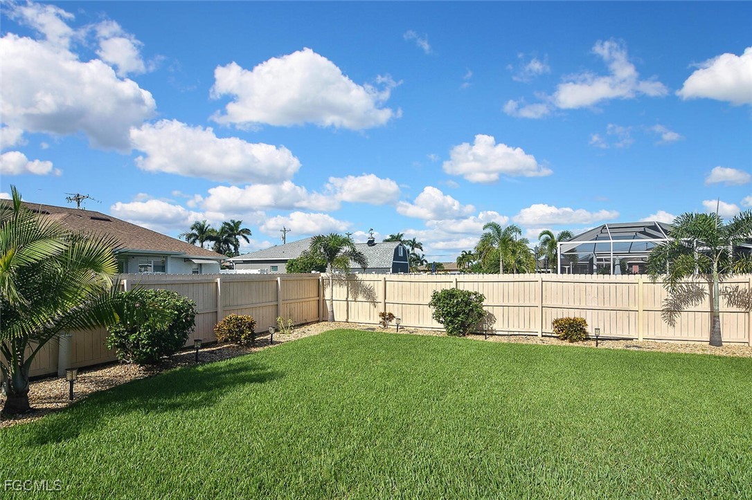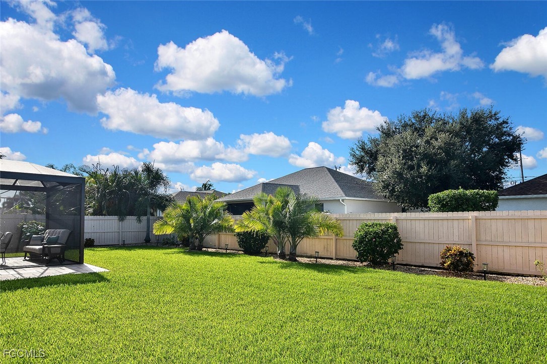 STUNNING 4 BEDROOM, 2 BATH HOME Located in much desired South West Cape Coral. Welcome to this beautifully upgraded single-family home that blends style, comfort, and peace of mind. Designed with an open floor plan, this home is perfect for both everyday living and entertaining. Custom cut-glass entry door, tile flooring in main living areas, luxury vinyl flooring in bedrooms, crown molding throughout, hi impact slider and windows, new roof, plantation shutters on all windows and slider, extended screened Lanai with paver flooring, ceiling fans in each bedroom and Great Room, Storm Smart roll down storm screen on Lanai and entry, fenced park-like yard, and beautiful landscaping are just some of the special upgrades you'll find in this home.