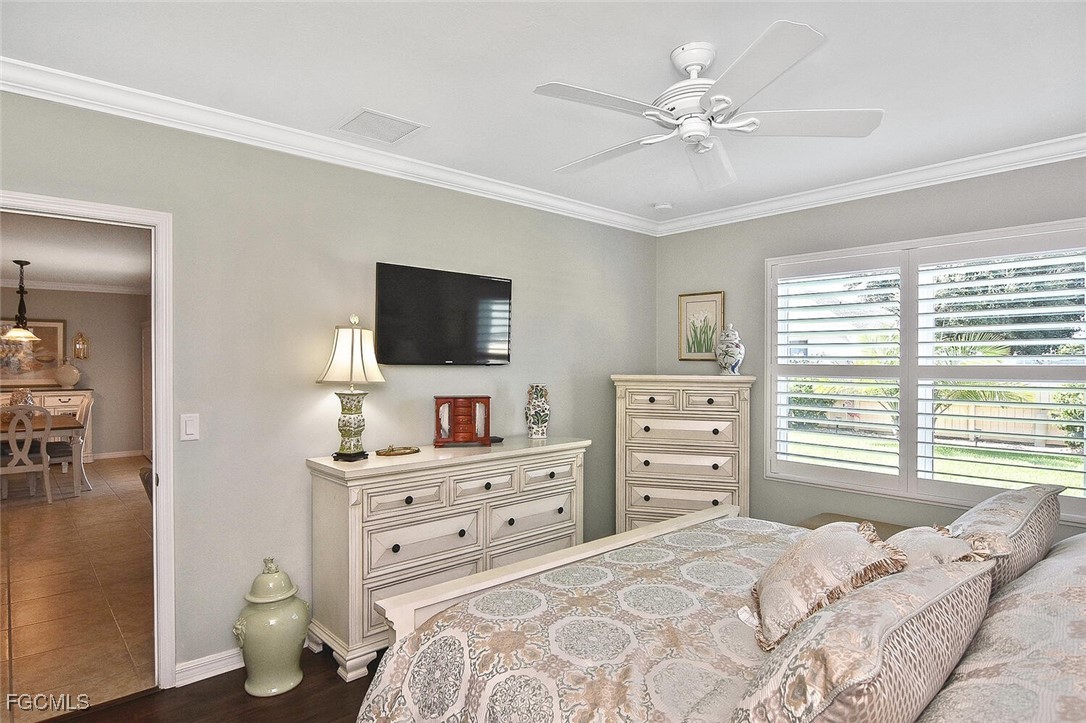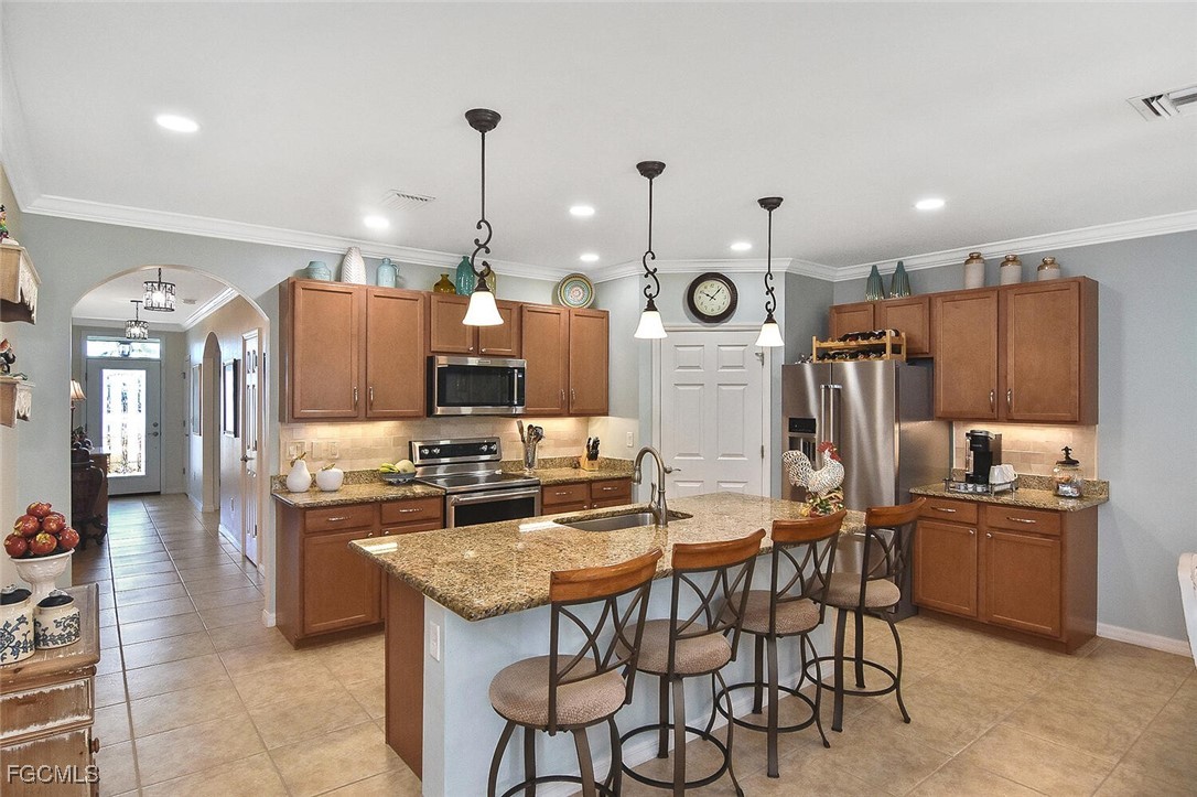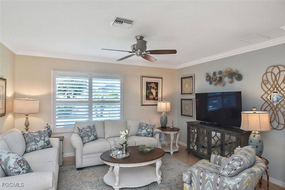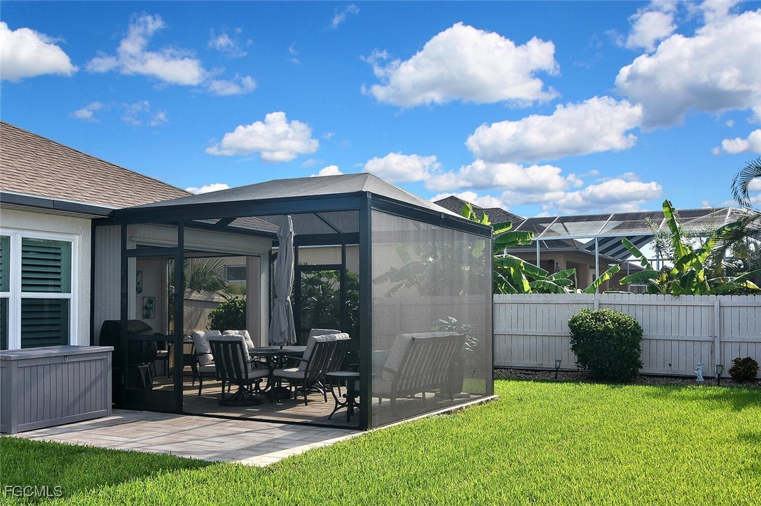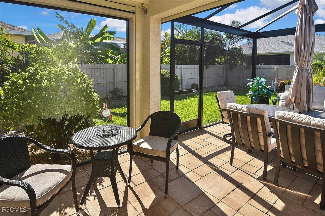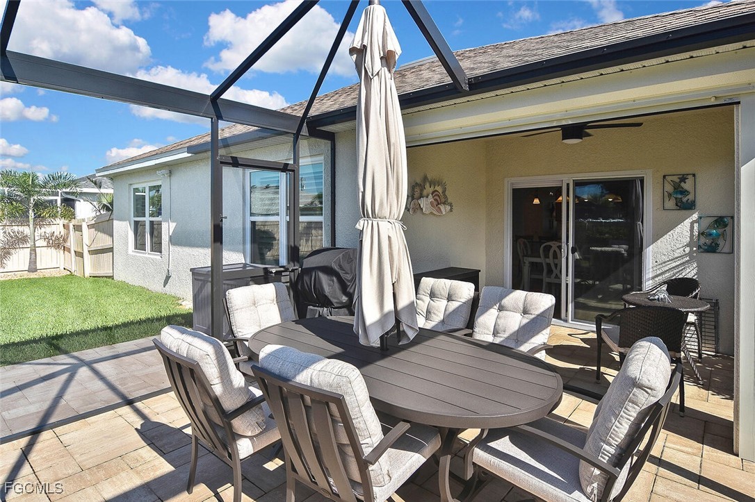 STUNNING 4 BEDROOM, 2 BATH HOME Located in much desired South West Cape Coral. Welcome to this beautifully upgraded single-family home that blends style, comfort, and peace of mind. Designed with an open floor plan, this home is perfect for both everyday living and entertaining. Custom cut-glass entry door, tile flooring in main living areas, luxury vinyl flooring in bedrooms, crown molding throughout, hi impact slider and windows, new roof, plantation shutters on all windows and slider, extended screened Lanai with paver flooring, ceiling fans in each bedroom and Great Room, Storm Smart roll down storm screen on Lanai and entry, fenced park-like yard, and beautiful landscaping are just some of the special upgrades you'll find in this home.