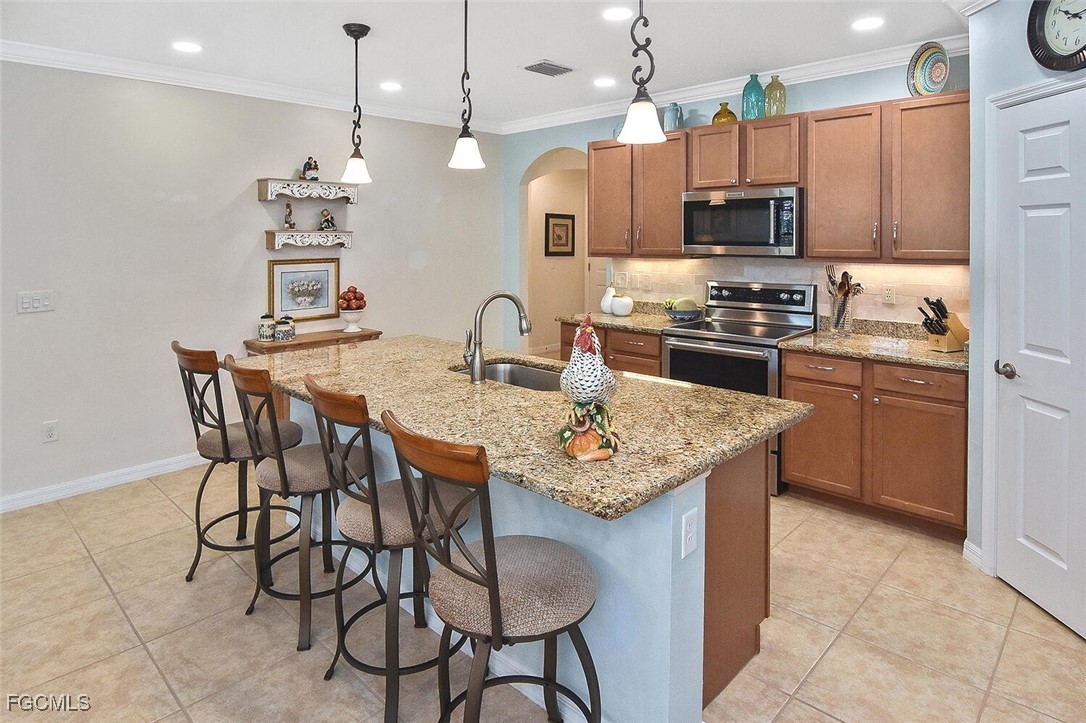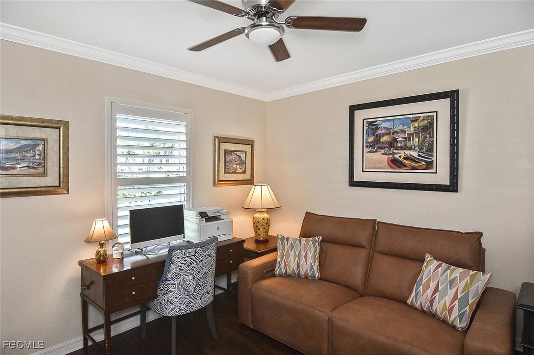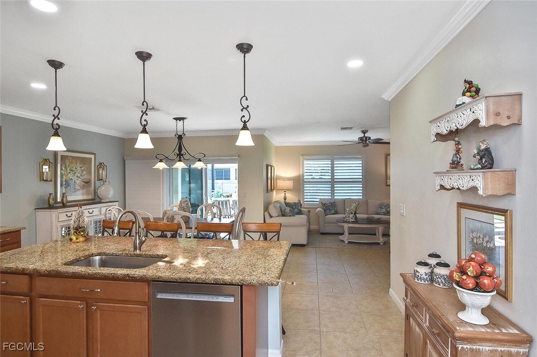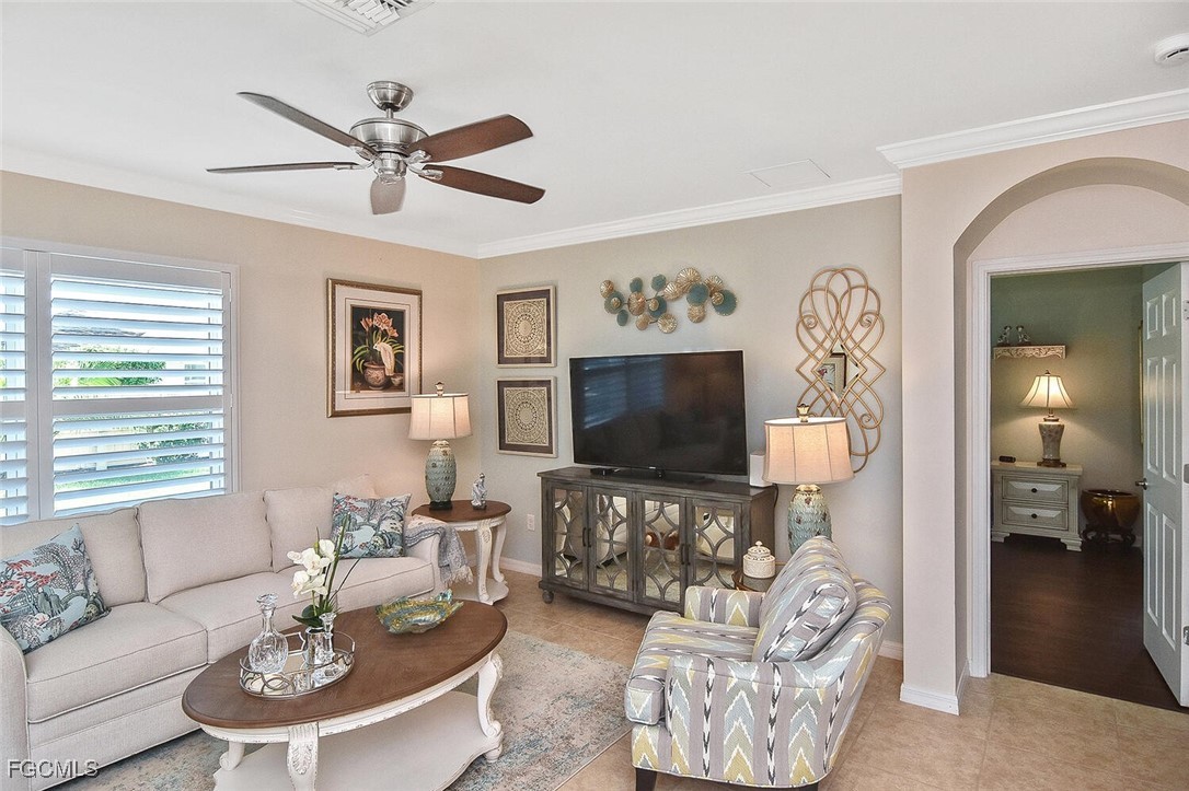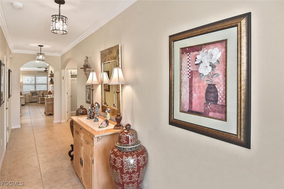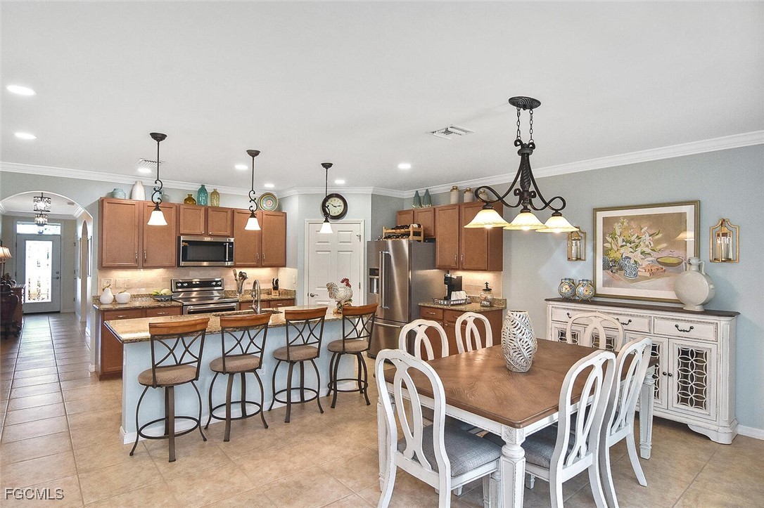 STUNNING 4 BEDROOM, 2 BATH HOME Located in much desired South West Cape Coral. Welcome to this beautifully upgraded single-family home that blends style, comfort, and peace of mind. Designed with an open floor plan, this home is perfect for both everyday living and entertaining. Custom cut-glass entry door, tile flooring in main living areas, luxury vinyl flooring in bedrooms, crown molding throughout, hi impact slider and windows, new roof, plantation shutters on all windows and slider, extended screened Lanai with paver flooring, ceiling fans in each bedroom and Great Room, Storm Smart roll down storm screen on Lanai and entry, fenced park-like yard, and beautiful landscaping are just some of the special upgrades you'll find in this home.