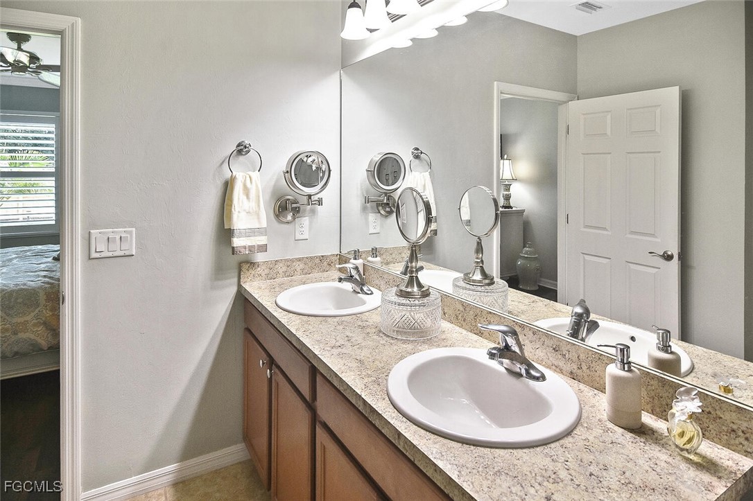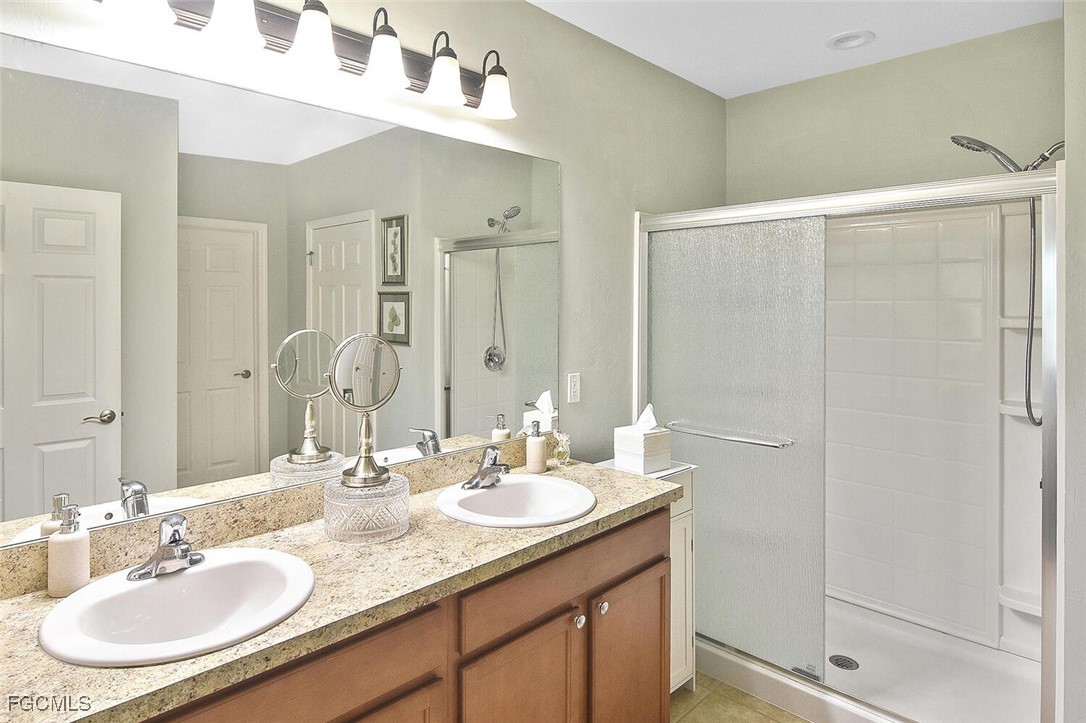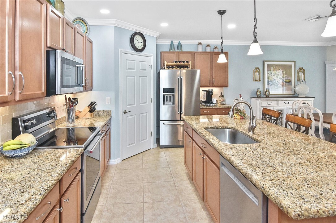 The Kitchen features stainless appliances, wood cabinetry, granite counters, custom backsplash, walk-in pantry, and large island and flows seamlessly into the Dining and Living areas. This is the perfect place for entertaining family and friends. Glass slider from the Great Room leads to the extended screened Lanai with paver flooring. The Lanai overlooks the fenced park-like yard and has plenty of room for a future pool. The Primary Suite is a luxurious retreat and has a large walk-in closet. The Primary Ensuite' has a double sink vanity, glass enclosed shower, private water closet, and spacious linen closet. Each of the Guest Bedrooms have large closets and are conveniently located in close proximity to the Guest Bath. One of the 3 Guest Bedrooms is currently being used as an office/sitting room, but has a large closet and can be used as a bedroom. The choice is yours. The Guest bath has a tub/shower combination and new wood vanity.