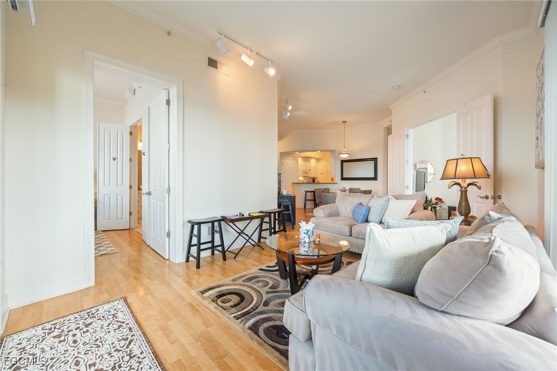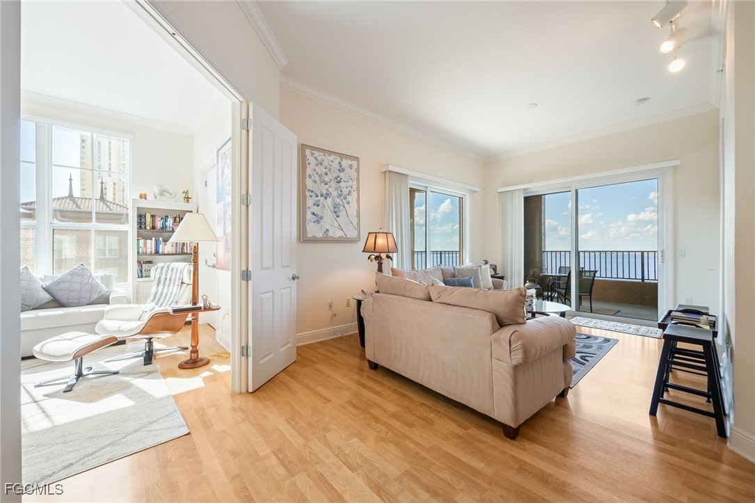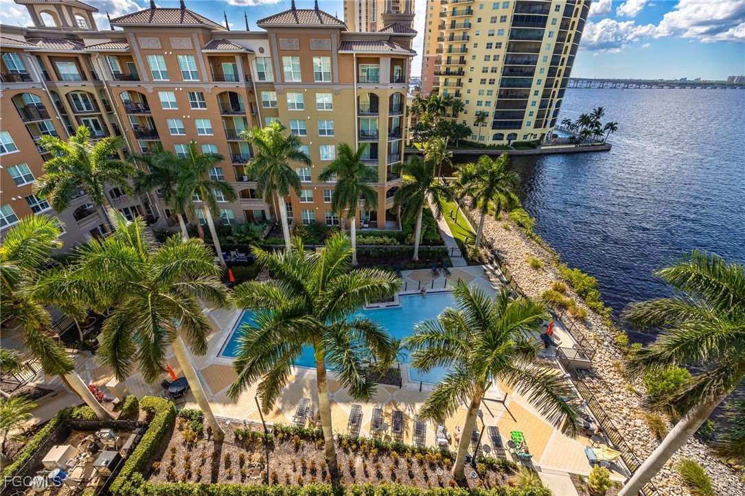 (Interior photos coming soon!) Perched on the top floor of Alta Mar along the Caloosahatchee River, this rarely available penthouse residence offers one of the most sought-after views in the building. Unit 719 features soaring ceilings and a wraparound balcony that captures sweeping vistas of both the river and the resort-style pool below. The spacious three-bedroom, two-bath floor plan is finished with wood and tile flooring throughout and is offered turnkey furnished for convenience and ease.