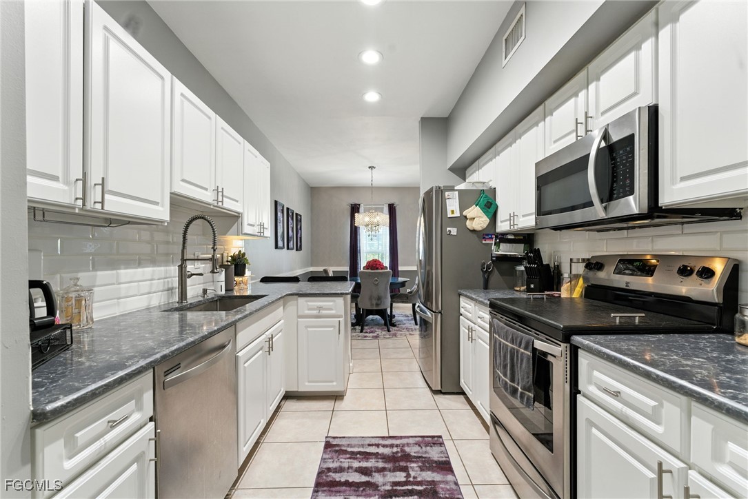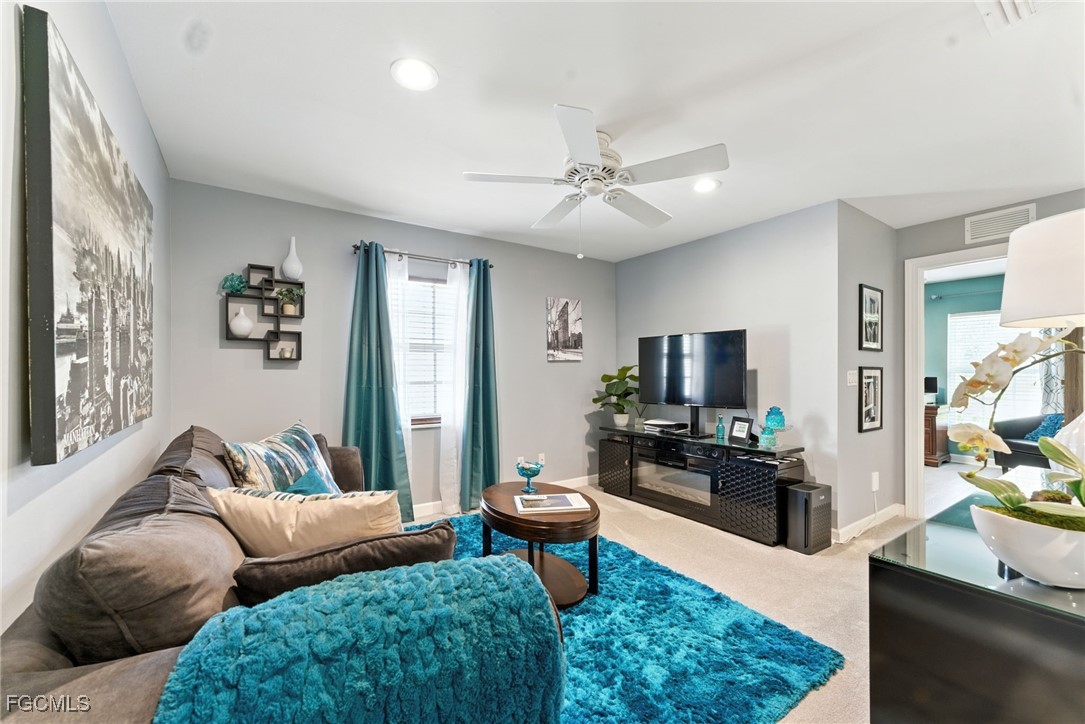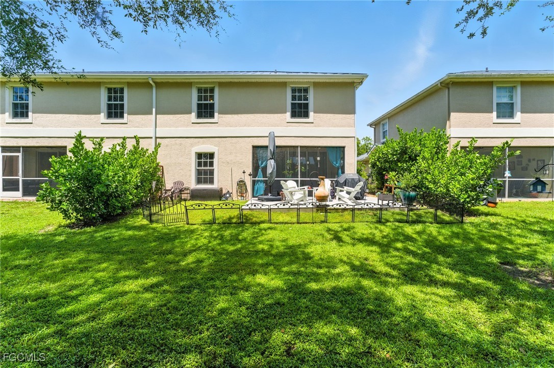 Welcome to 9763 Glen Heron Drive, an elegant residence in the highly desirable community of Cockleshell Village. This impeccably maintained two-story home offers three bedrooms, two and a half baths, and nearly 1,800 square feet of refined living space. Designed for both comfort and peace of mind, the property features full hurricane-impact windows and doors, with no history of storm damage or flooding. The interior is sophisticated yet inviting, with open living and dining areas enhanced by abundant natural light and timeless finishes. Neutral tile flooring flows throughout the main level, while designer lighting fixtures and tasteful accents create a polished ambiance. The gourmet-inspired kitchen showcases sleek white cabinetry, granite-style countertops, stainless steel appliances, and a modern backsplash, blending style with everyday functionality. The first-floor primary suite is a private retreat offering hardwood flooring, a spacious walk-in closet, and a beautifully appointed en-suite bath. Upstairs, two additional bedrooms and a versatile loft provide generous accommodations for guests or flexible use as a media room or home office. Outdoor living is equally impressive with a screened lanai and extended patio overlooking lush landscaping, creating an ideal setting for dining, entertaining, or quiet relaxation. The attached two-car garage offers additional convenience, complementing the home’s thoughtful design. Positioned on a private road with low HOA dues, this residence delivers both exclusivity and exceptional value. Its central location places you within minutes of Bonita’s pristine Gulf beaches, Hertz Arena, and the area’s new high school offering accredited college-credit programs. Fine dining, upscale shopping, and major thoroughfares are also just moments away. 9763 Glen Heron Drive presents a rare opportunity to enjoy luxury, security, and the sought-after Southwest Florida lifestyle.