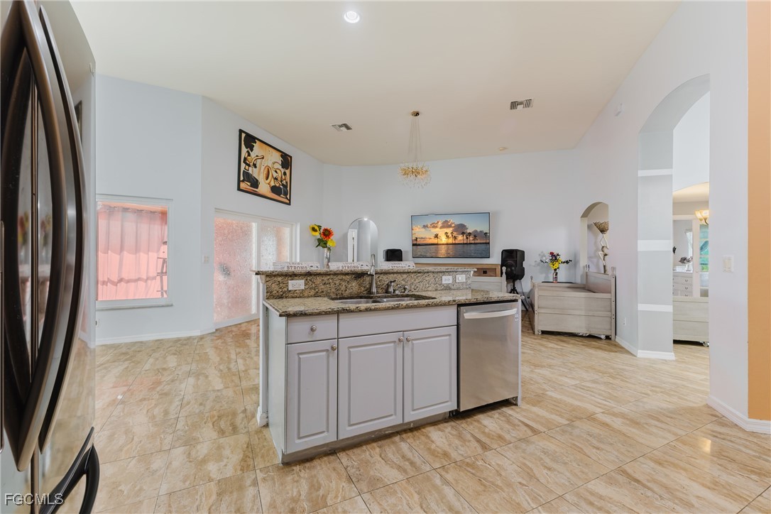 Welcome to this beautiful 4-bedroom + den, 2-bath home with a 3-car garage & over 2,200 sq. ft. of living space – the perfect blend of style, functionality, and Florida charm! Step inside to a welcoming great room with soaring high ceilings, elegant tile flooring, and impact-resistant windows & doors for peace of mind during any season. The spacious kitchen is a chef’s dream, featuring stainless steel appliances, sleek granite countertops, and a large island – perfect for meal prep or gathering with friends and family. Retreat to the primary suite with its en suite bath, complete with dual sinks, a walk-in shower, a new AC unit along with a new roof, and a soaking tub ideal for relaxing at the end of the day. Enjoy Florida living outdoors on the large patio overlooking the fully fenced backyard – offering plenty of room for a pool and even your very own plantain tree! With some furnishings included, this home is move-in ready. Don’t miss your chance to make this perfect property your own!