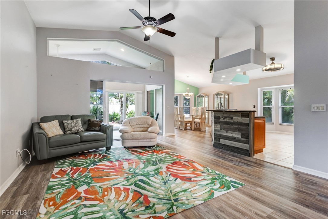 Welcome to this delightful single-family home nestled in the desirable "Islands at Three Oaks" community in south Fort Myers. Featuring a spacious great room that brings together the living room, dining area and kitchen along with 3 bedrooms and 3 full bathrooms, this home provides ample room for comfortable living. The fully enclosed lanai provides additional living space. The screened front entrance leads into an interior enhanced with vaulted ceilings, creating an open and airy atmosphere. The layout is thoughtfully designed to accommodate both relaxation and entertainment needs. Situated on a cul-de-sac, the property offers a sense of privacy and tranquility. The attached two-car garage provides convenient parking and additional storage space. The "Islands at Three Oaks" community is conveniently located not far from the Gulf Coast Town Center’s variety of stores and restaurants. And the Southwest Florida International Airport is just around the corner too.
