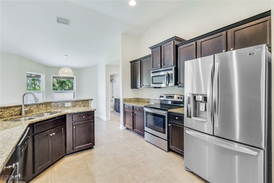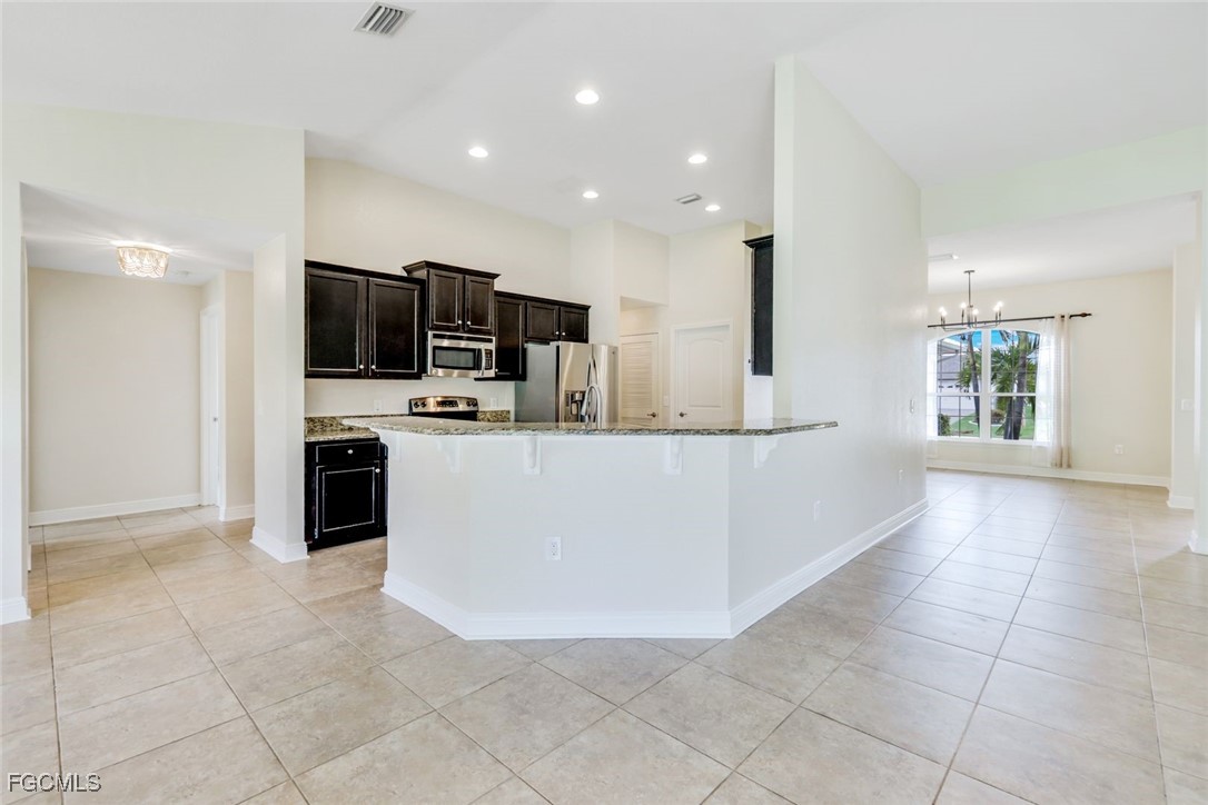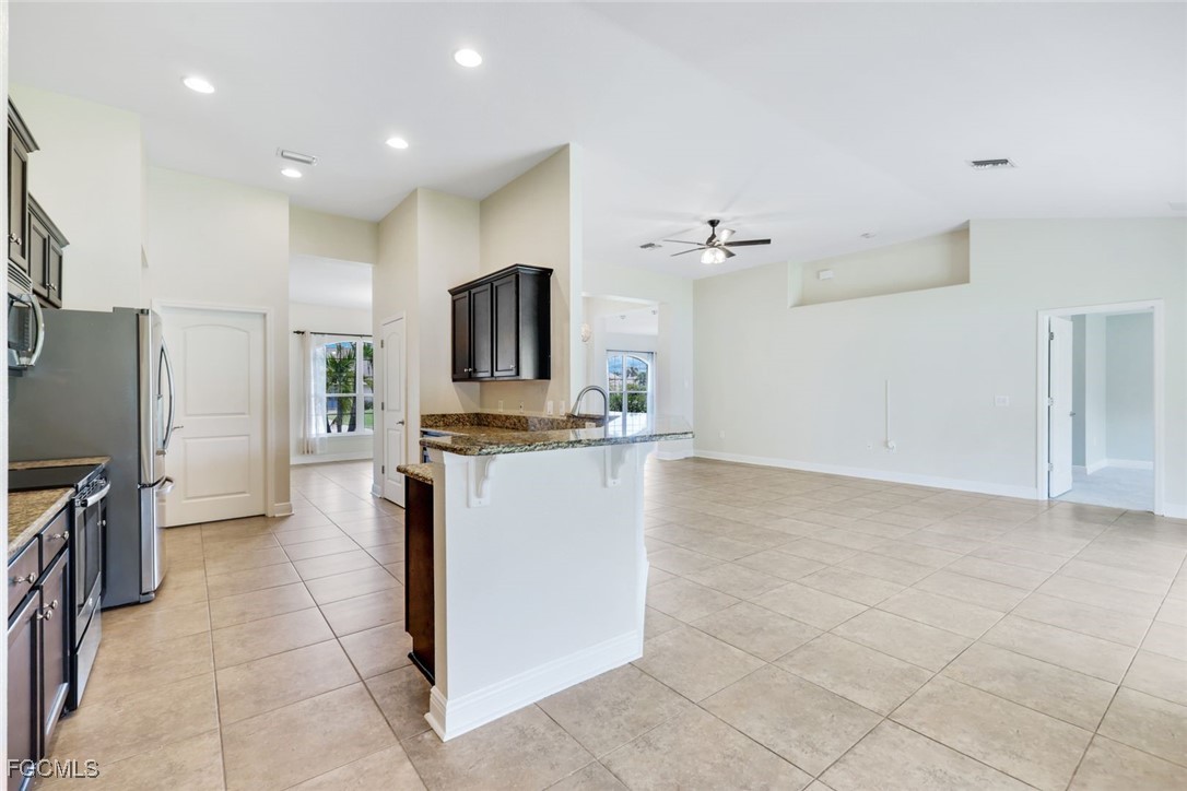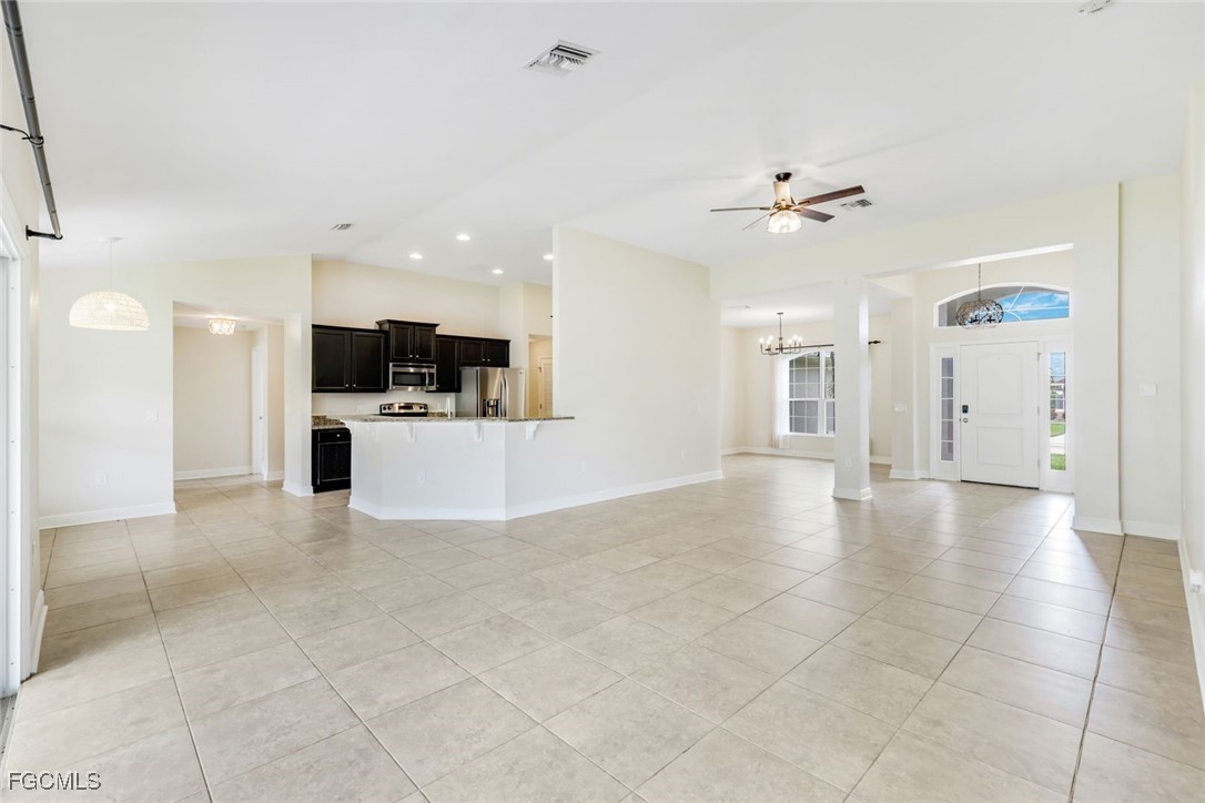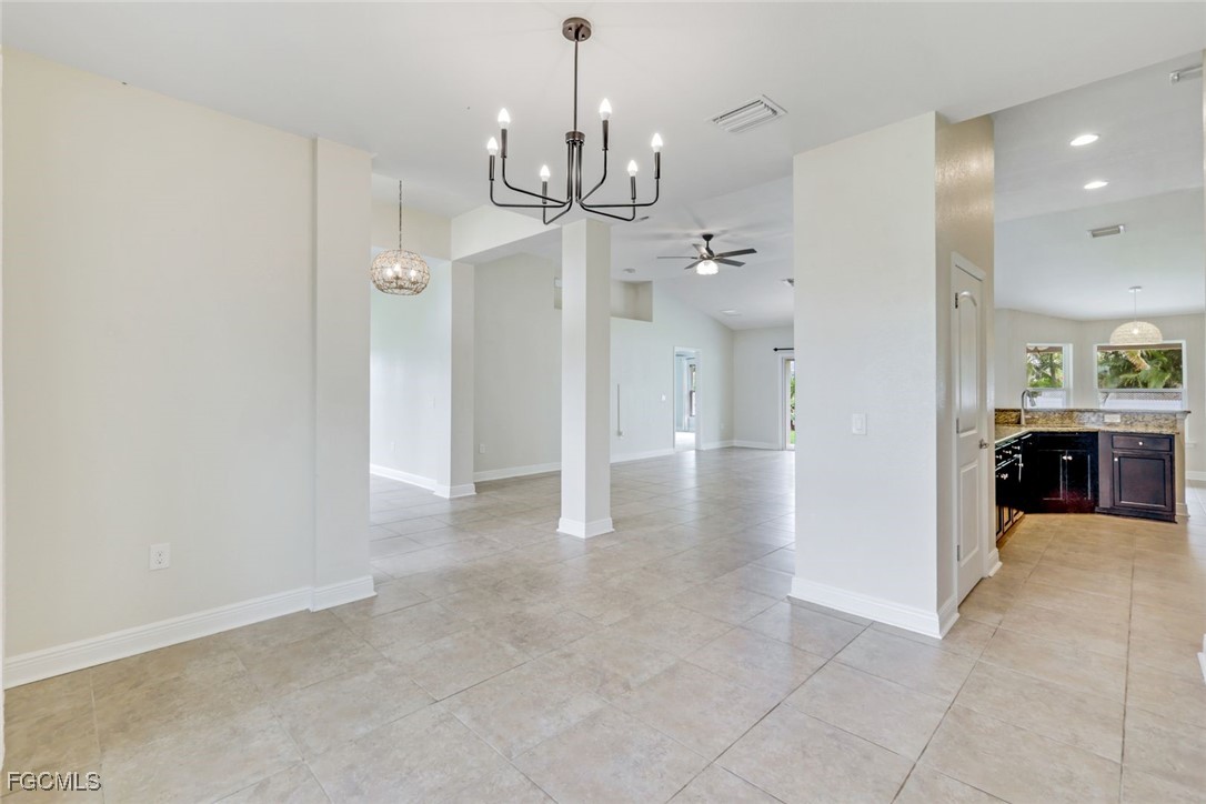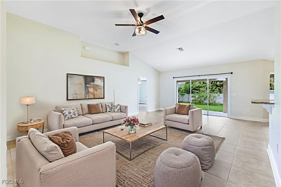 This is your rare chance to secure a VA assumable loan at just 3%, making this home not only a beautiful place to live but also an unbeatable financial opportunity. Don’t miss out—this feature alone makes this property a standout in today’s market! Located in the heart of SW Cape Coral, this 4 bedroom, 2 bath home with a 2 car garage is close to Oasis Charter Schools, shopping, dining, and places of worship. Inside this 2,330 sq ft floor plan, you are welcomed with plenty of space for your family and entertaining needs. The large living room, formal dining room, family room, breakfast nook, and open concept kitchen, you will be able to host functions of all sizes. The kitchen and baths offer granite countertops and plenty of storage space. The primary suite offers lanai access, walk in closets and unwind in your large soaking tub in your primary bath. The split floor plan allows for your privacy and guest bathroom also provides lanai access. The large fenced backyard is waiting for your dream pool while the littles and fur babies remain safe. This home is a dream come true so do not wait a moment longer and schedule your private showing today.