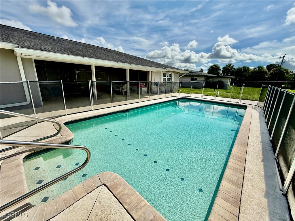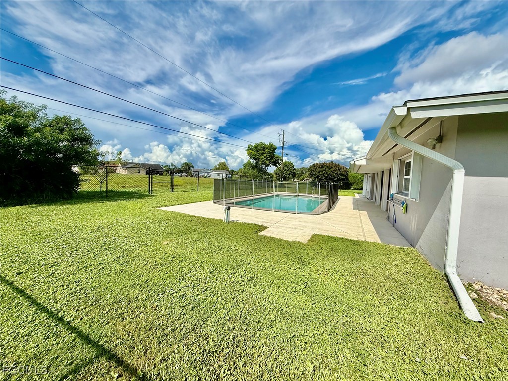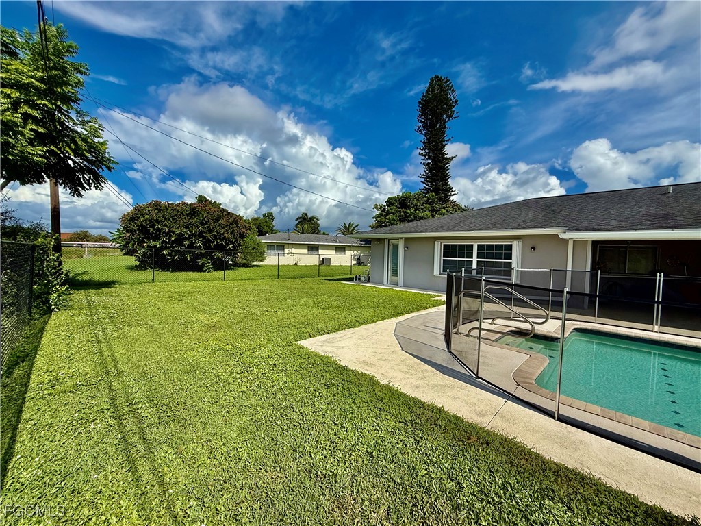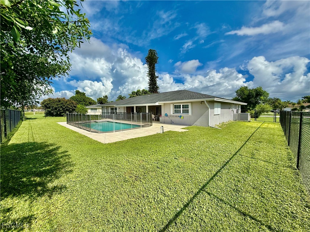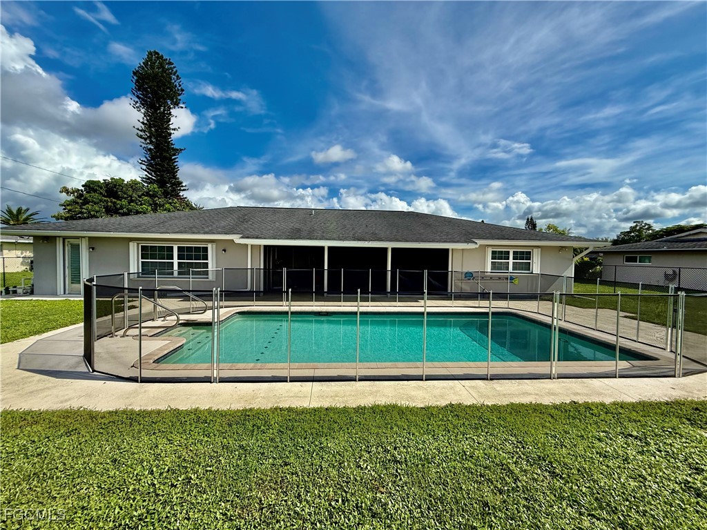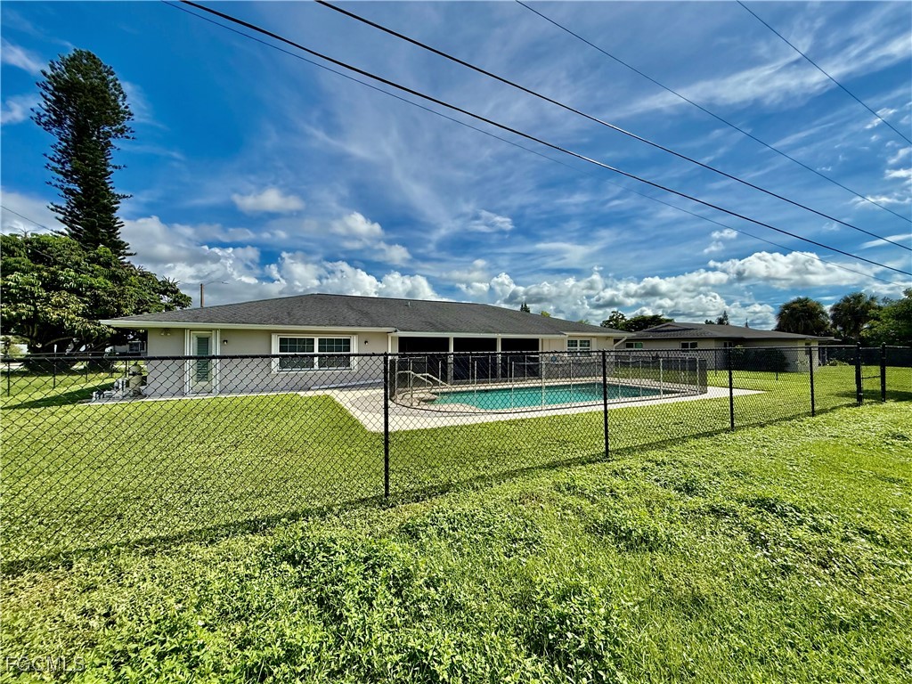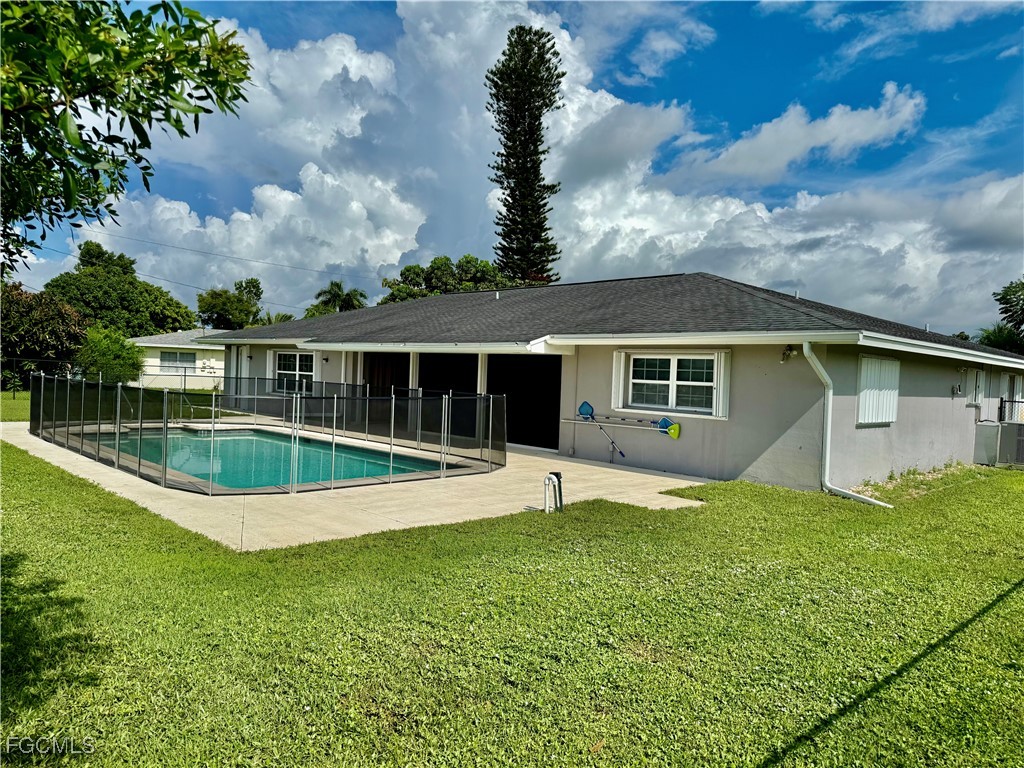 FOUR BEDROOM THREE BATH POOL HOME WITH 2333 SQUARE FEET OF LIVING AREA IN COUNTRY CLUB ESTATES, NEW DIMENSIONAL SHINGLE ROOF IN 2018, NEW WATER HEATER IN 2020, NEW CENTRAL HEAT AND AIR IN 2020, WHOLE HOME KOHLER AUTOMATIC GENERATOR WITH IN GROUND PROPANE TANK, CENTRAL WATER AND SEWER AND GREAT VIEWS OF THE WATER AND WILDLIFE WITH THE ABLE CANAL IN THE BACKYARD (LARGEST CANAL IN LEHIGH), FENCED BACKYARD with plenty of privacy, screened front entry porch, 23 X 26 oversized garage, covered lanai overlooking the pool area and the canal, plenty of room for entertaining, NEWER Cutler-Hammer Electrical panel box, newer insulated windows with roll down, accordion or panel shutters, ROLL DOWN STORM SCREENING FOR THE PATIO, SPACIOUS IN GROUND POOL WITH CHILD PROTECTIVE REMOVABLE FENCE, ceramic tile floors in the kitchen with newer LUXURY VINYL PLANK FLOORS THROUGHOUT the rest of the house, open kitchen with breakfast bar and double pantry space, plenty of cabinets and counter space, stainless steel appliances, pass through to pool area, formal living room and dining room plus a family room open to the kitchen with a breakfast nook, sliders to the pool/patio area from the family room, living room and primary bedroom, pool bath with a separate 4th bedroom for guest etc., oversized guest bedrooms with plenty of space, second guest bathroom has been completely remodeled with granite tops with dual sinks, soft close doors and drawers in the oversized vanity, built in light panel in the lighted mirror, new commodes in every bathroom, new fixtures etc., primary bedroom features access to the pool/lanai, private ensuite bathroom with dual sinks, dressing area and plenty of closet space, large indoor laundry room with extra cabinet/counter space. Quality shines throughout in this "Michigan built home". Quiet low traffic street in an excellent neighborhood atmosphere, well maintained community great for walking the dog or the taking an early morning or after dinner stroll. Located just minutes to I-75, Ft Myers and the International Airport. NO FLOOD INSURANCE REQUIRED. LEHIGH IS THE HIGHEST ELEVATION IN LEE COUNTY.