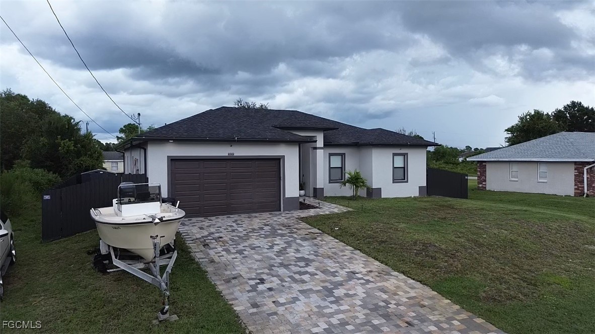 Step into this Stunning new construction in the heart of Lehigh Acres! This 3-bedroom + Den, 2-bath home features soaring cathedral ceilings, impact windows and doors, and elegant marble flooring throughout. Extended screened patio with outdoor kitchen set-up. The chef’s kitchen shines with quartz countertops, stainless steel appliances, and a large island perfect for entertaining. The spacious primary suite offers dual walk-in closets and a spa-like bath with dual sinks. With a lush St. Augustine lawn and every detail thoughtfully designed, this home blends modern luxury with everyday comfort — move-in ready and waiting for you!