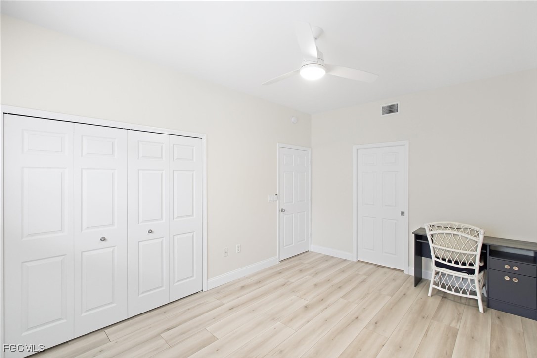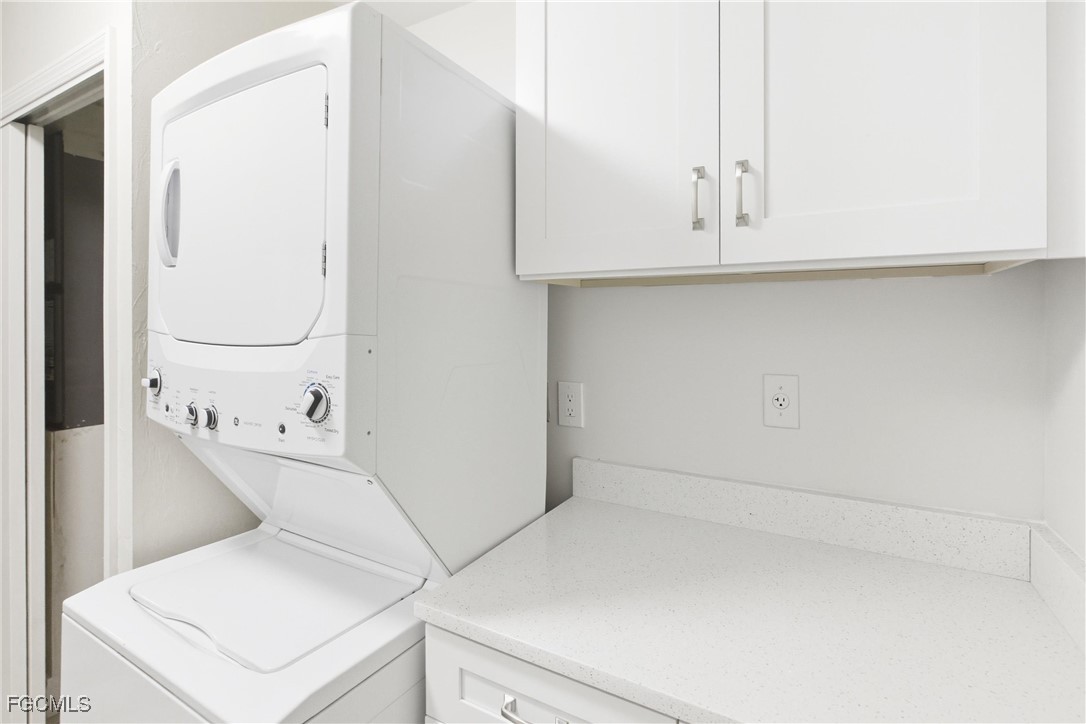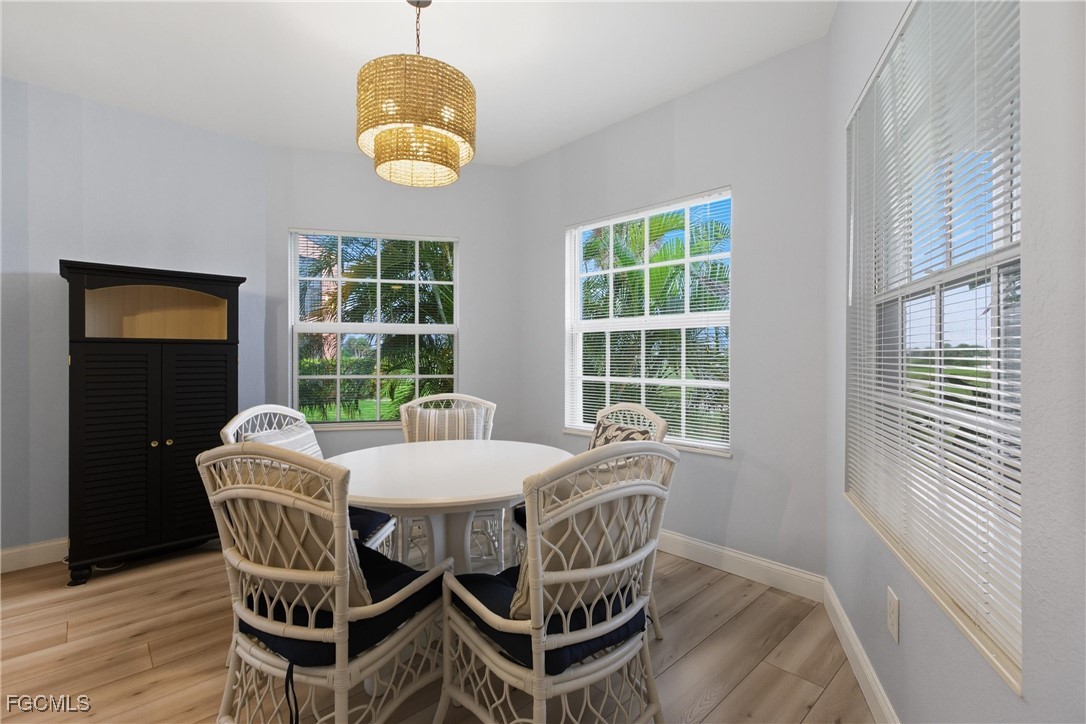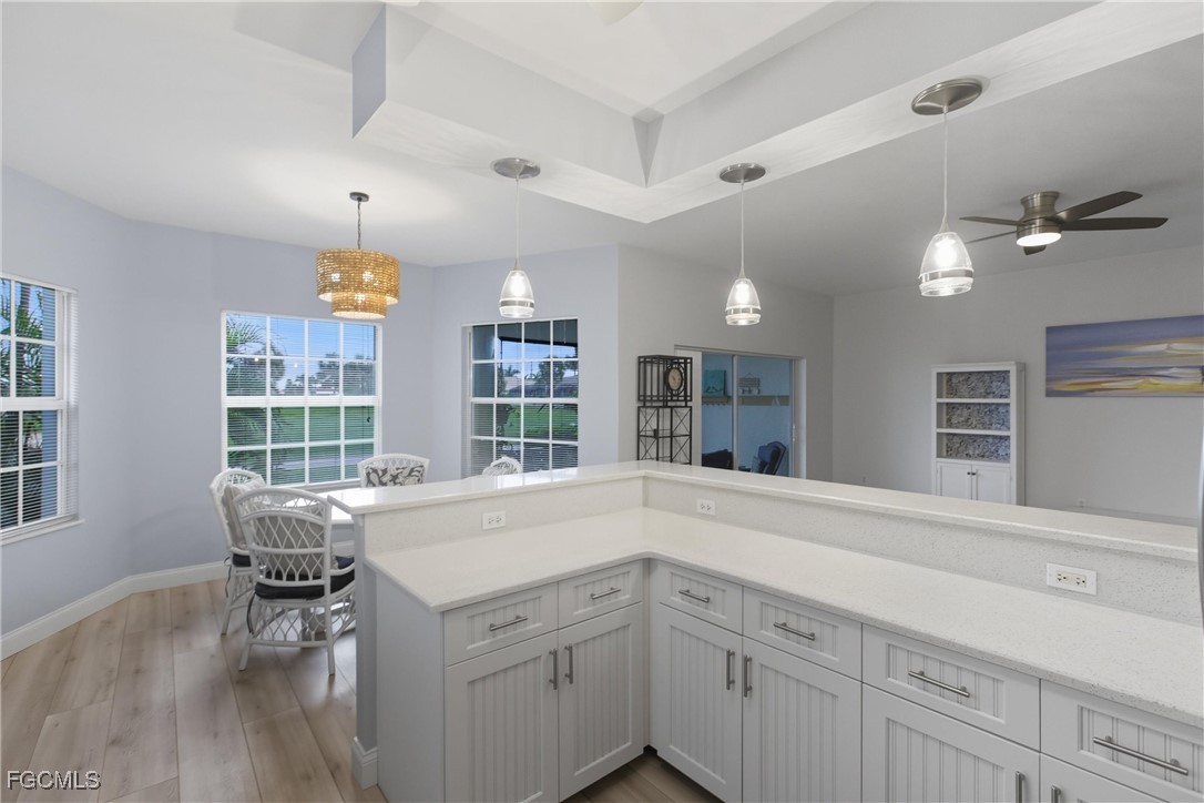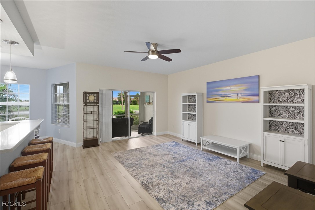 Arrive home to GARAGE PARKING with built-in WORKBENCH and STORAGE shelving, then follow a short sidewalk to your PRIVATE entry. Inside you’ll find LAMINATE flooring throughout, a welcoming foyer with large storage closet and pantry, and a kitchen designed for entertaining with QUARTZ countertops, STAINLESS STEEL appliances, BEADBOARD cabinetry, raised BREAKFAST BAR; and an OPEN LAYOUT. The living area flows to the SCREENED LANAI, where you’ll ENJOY expansive WATER and golf course VIEWS, daily wildlife sightings, and breathtaking SUNSETS. Step right out to the HEATED POOL, just beyond your lanai. The home features two SPACIOUS bedrooms.