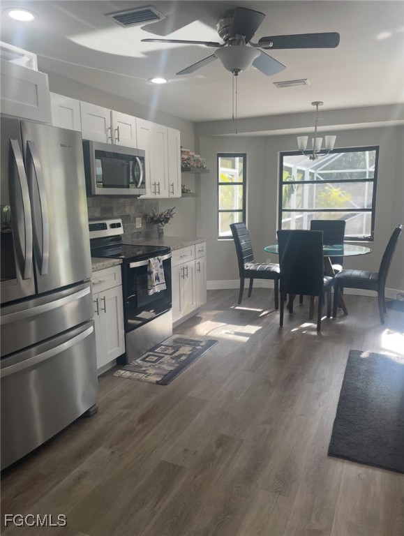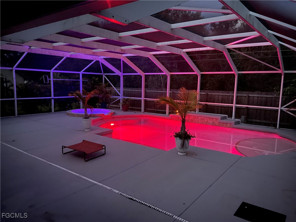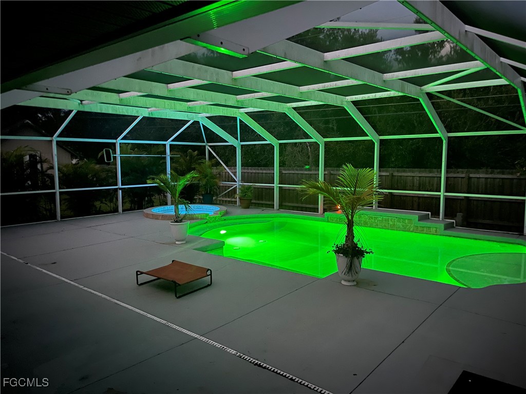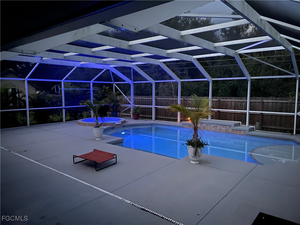 Beautiful 3 bedroom 2 bath pool home with hot tub, water fall, sun bathing shelf and spacious screened lanai with plenty of space to bbq with family and friends. Has water proof laminate flooring throughout the home and beautiful garage floors. Newer cabinets installed not long ago and have high level granite surfaces throughout. Large wood fenced yard for your kids or pets to enjoy. Newer roof and ac unit. This great neighborhood offer a quiet comfortable home feel and is close to US-17 offer shopping and golf. This home is not in a flood zone. Come see this beautiful home.