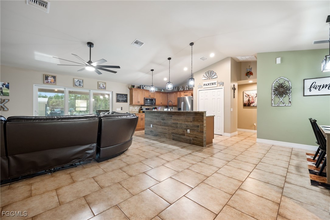 Welcome to your dream retreat in Alva! This beautifully maintained 2019 concrete block home offers 4 bedrooms, 2 bathrooms, and 1,669 sq. ft. of thoughtfully designed living space, all nestled on a generous 1-acre lot. Inside, you'll love the open-concept layout, centered around a spacious kitchen island, perfect for entertaining or enjoying nightly family meals. Farmhouse-style touches and custom trim carpentry in the guest bedrooms add warmth and character throughout. The primary suite features backyard views, his and hers closets, dual sinks, and a walk-in shower for a private retreat. Built with energy efficiency in mind, the home is equipped with impact windows and doors and finished with stylish window treatments to help keep your home cool and comfortable year-round. Step outside to a screened-in lanai, ideal for grilling or relaxing, and enjoy the fully fenced half-acre backyard with a detached carport perfect for storing your toys, tools, or outdoor gear. The additional 0.5-acre parcel provides endless potential for a future workshop, garage, or extra storage space, with added privacy and secondary access from Columbus Ave. Conveniently located just 8 minutes from The Alva School and Alva Boat Ramp, and only 15 minutes to Walmart and Publix, this home offers the perfect balance of country living and everyday convenience. Whether you're looking for room to spread out, build your dream shop, or simply enjoy a peaceful lifestyle, this Alva gem has it all. Don’t miss this opportunity, schedule your private showing today!