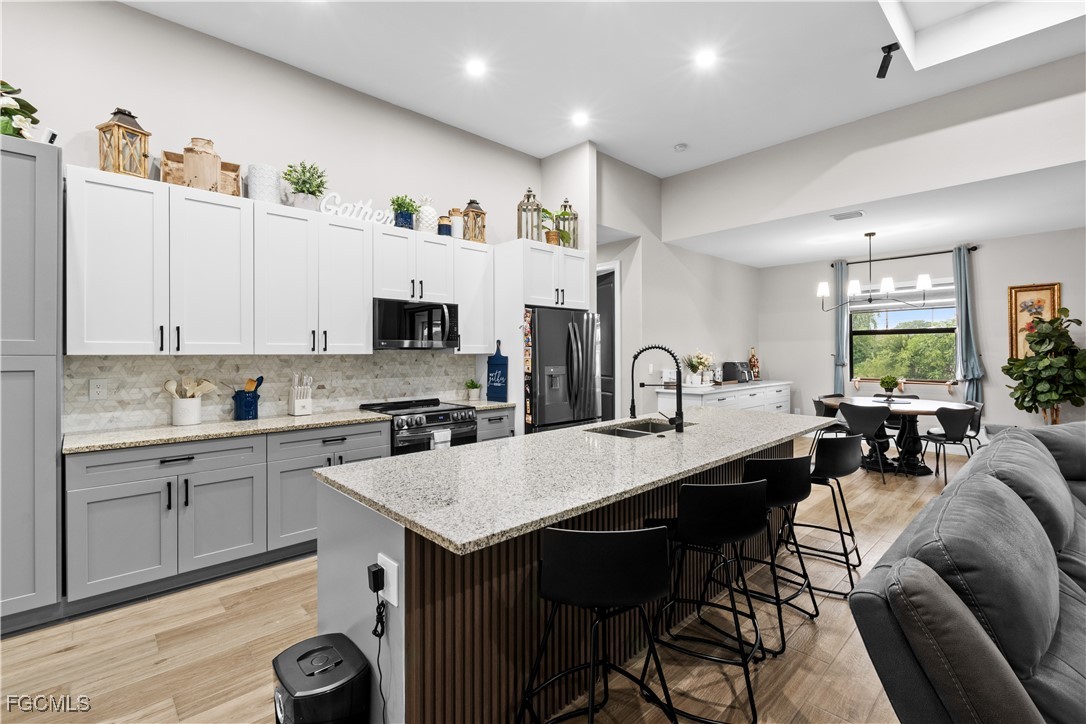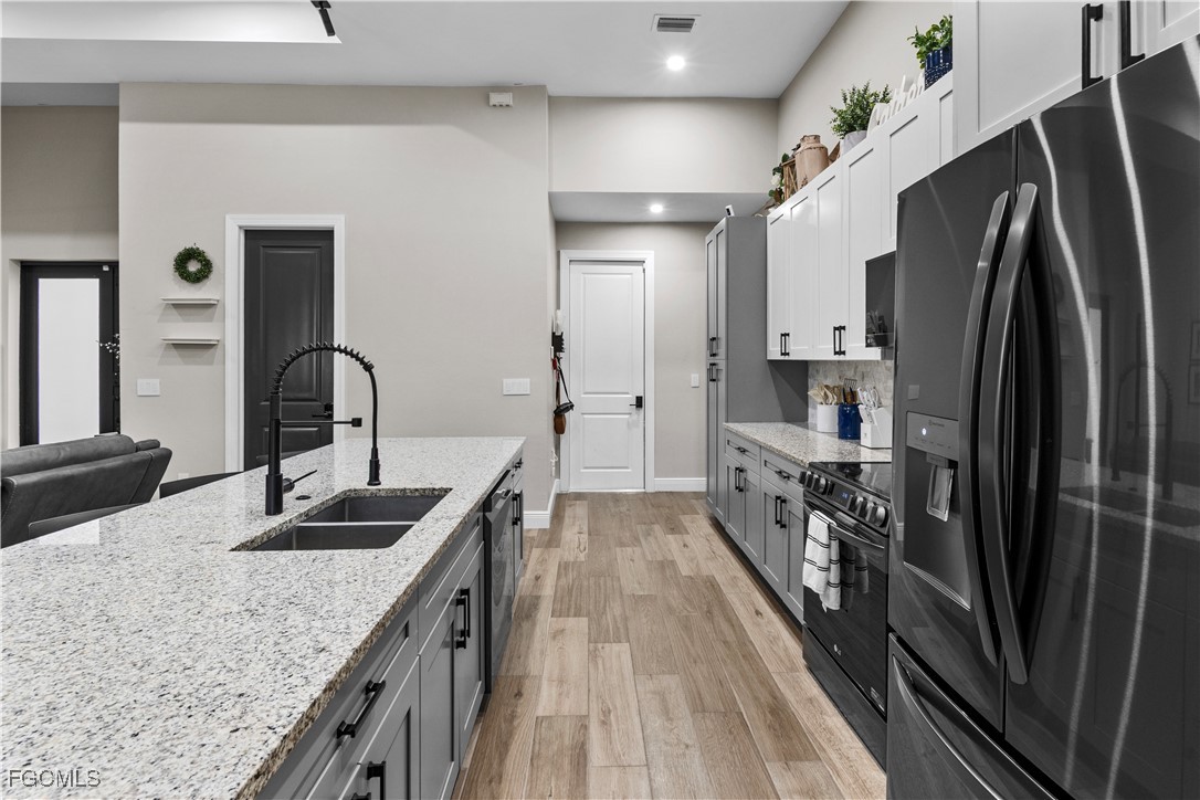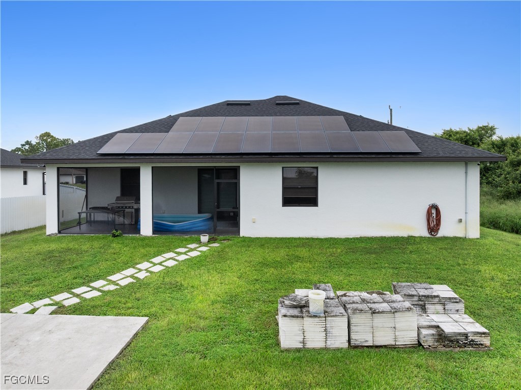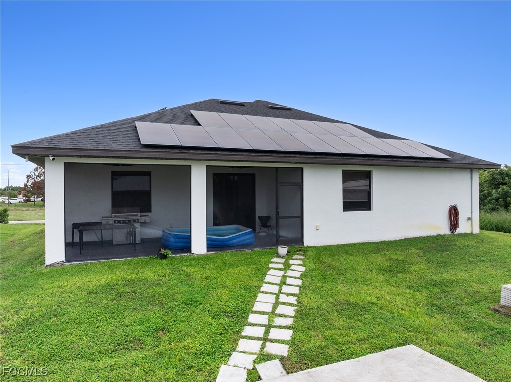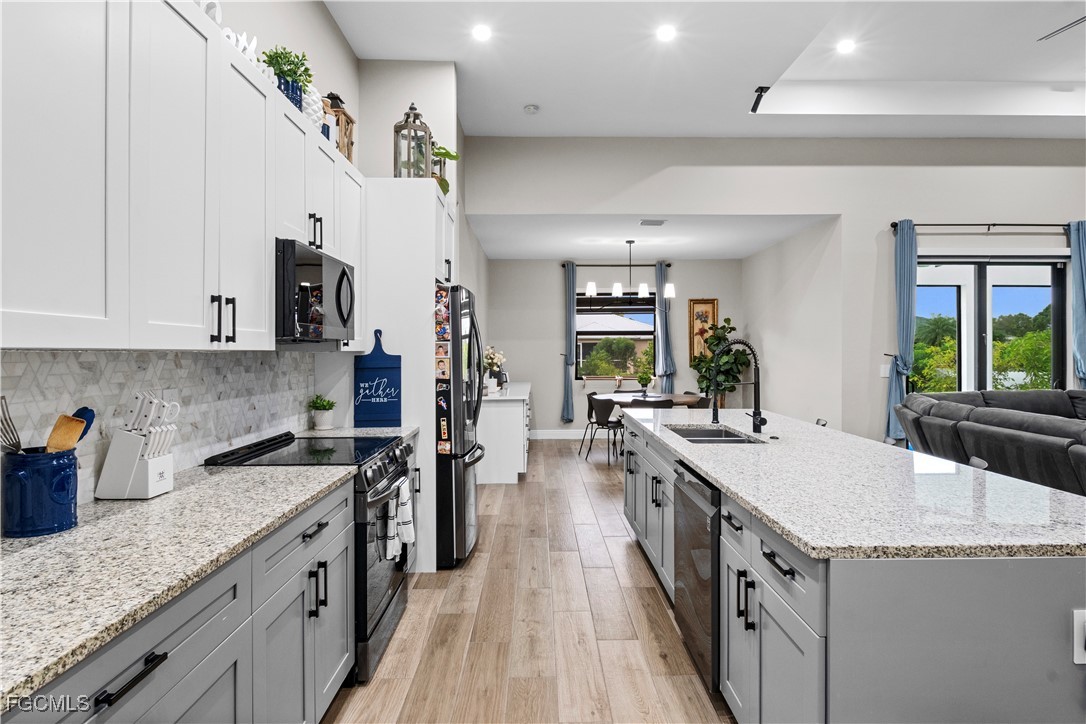 Enjoy added convenience with laundry room cabinets, sink, backsplash, washer/dryer, and updated light fixtures in all baths. Smart home features include a Casera lighting system, Honeywell thermostat, alarm with cameras, and window shades. Energy-efficient upgrades include solar panels (loan transferable), tankless water heater with recirculating hot water, and water conditioner.