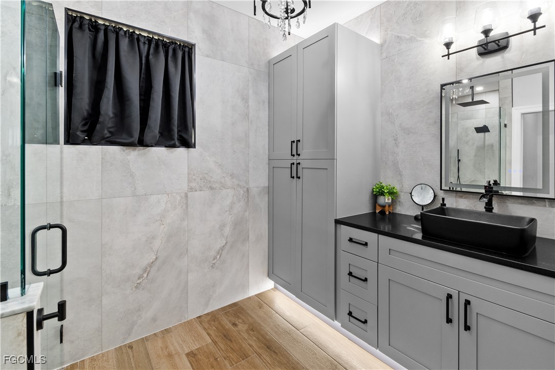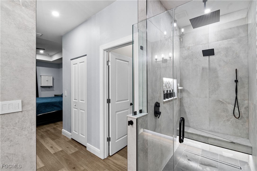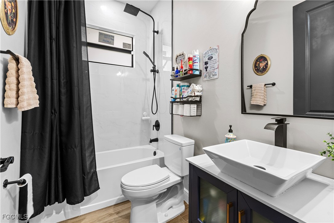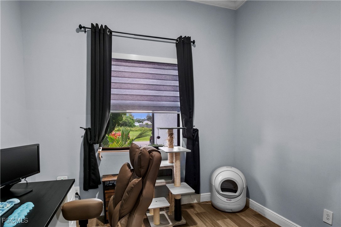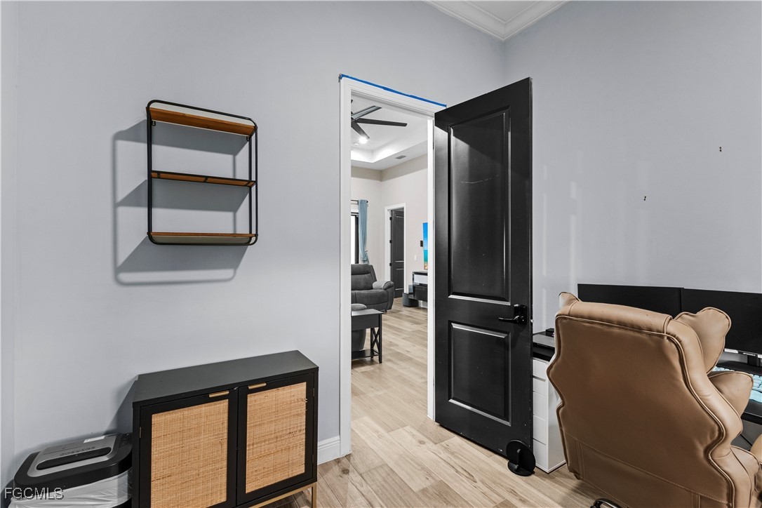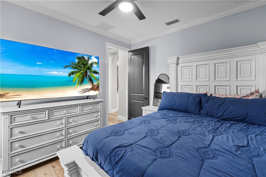 Beautifully upgraded home featuring a fully remodeled floor with 5.5” baseboards, crown molding, and fresh interior paint. The modern kitchen offers a pantry, custom backsplash, island accents, dining room cabinets, and upgraded lighting. The master suite boasts a remodeled bathroom with glass shower door, upgraded fixtures, and custom closets, while the secondary bedrooms also include custom closets.