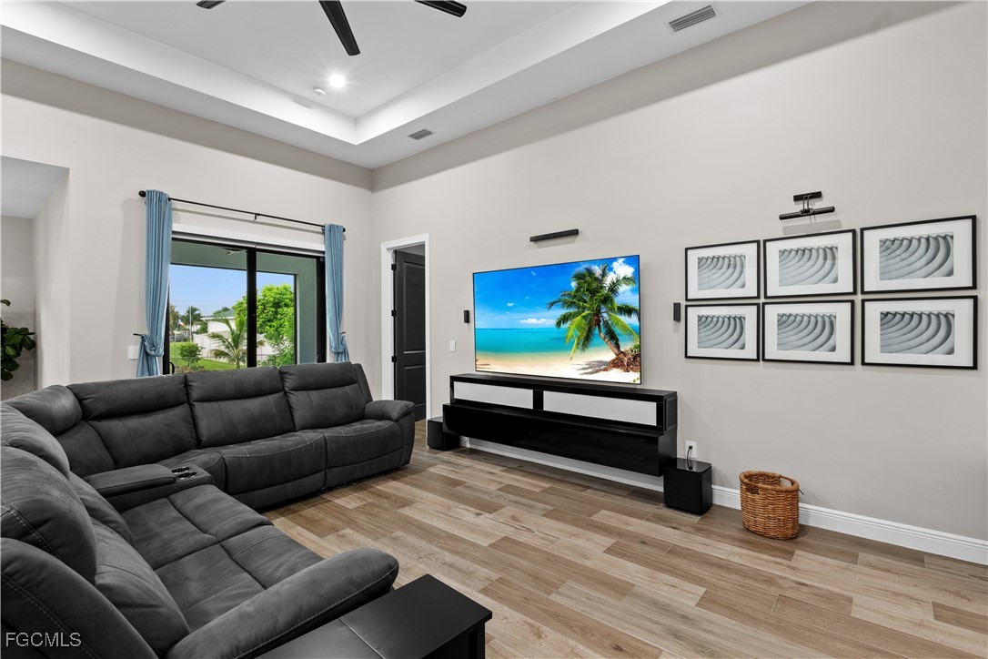 Outdoor living shines with an enclosed lanai with lights, fans, and new flooring, a front entry enclosure, backyard shed, patio concrete slab, exterior lighting, and a painted garage floor. Truly move-in ready with every detail thoughtfully upgraded.
