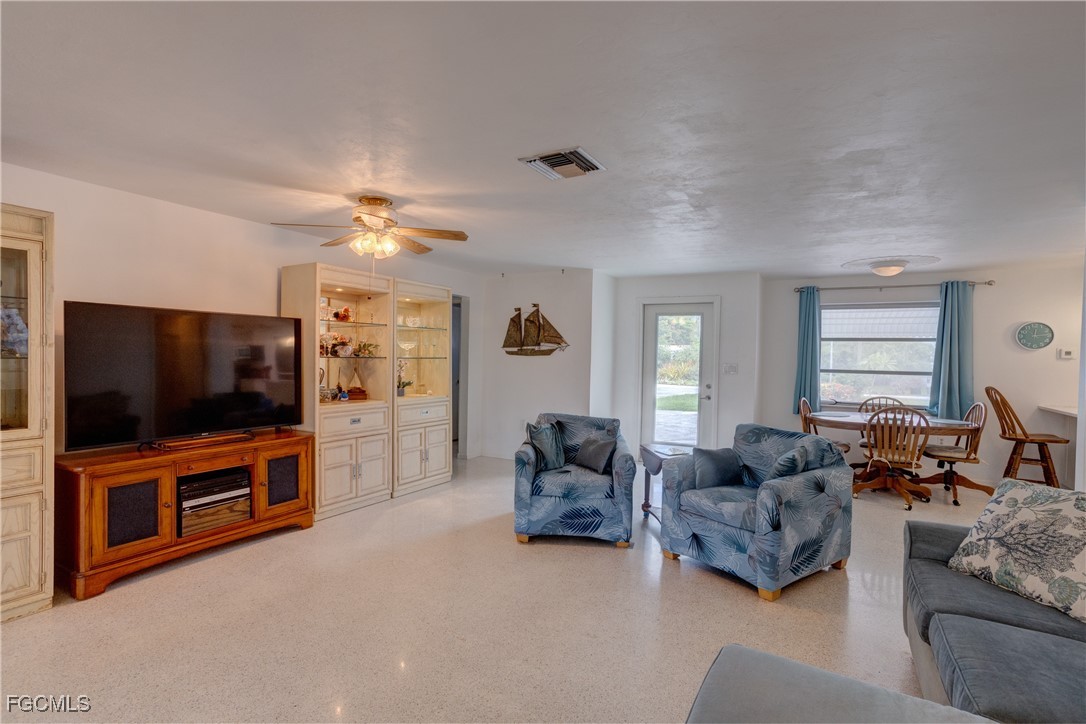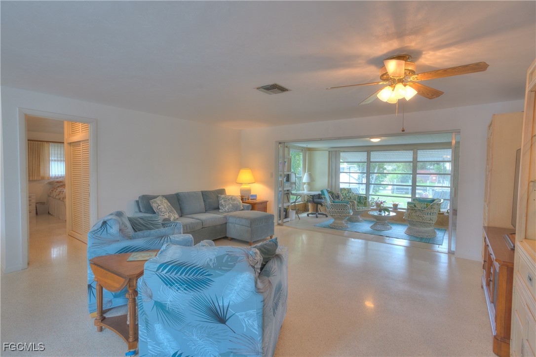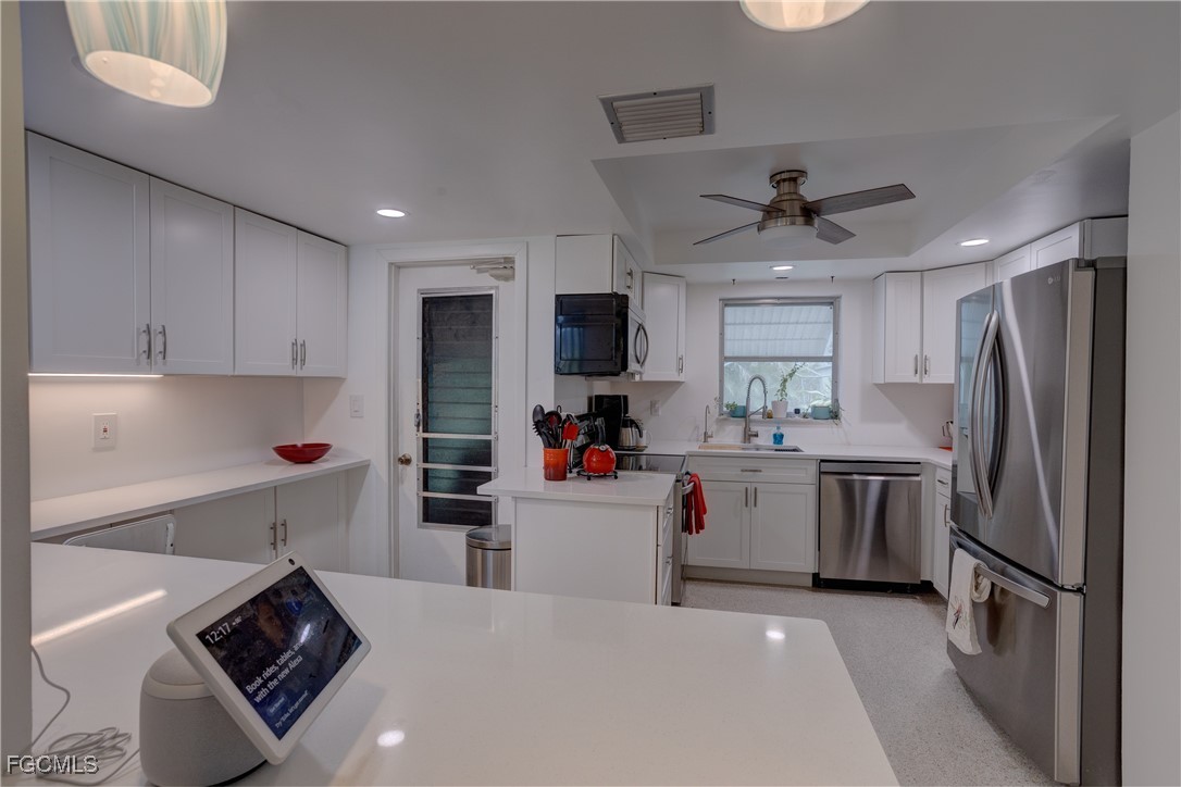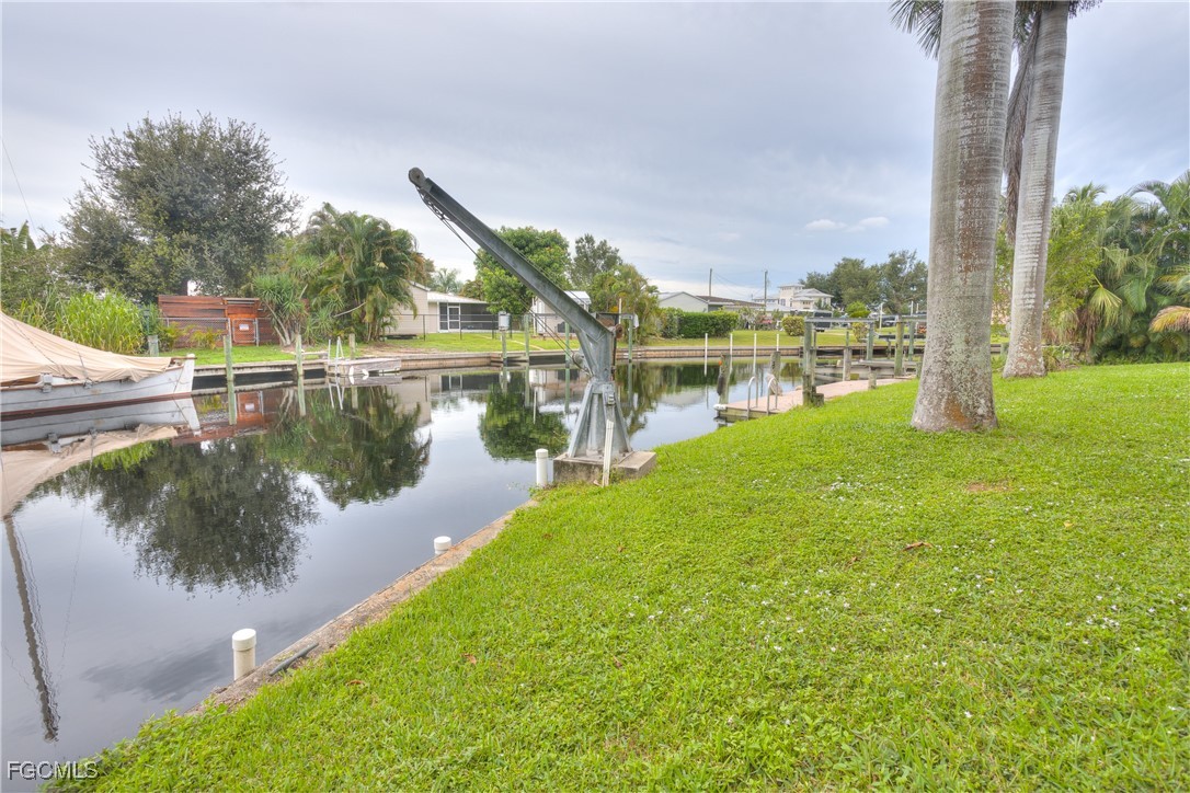 Welcome to your dream waterfront retreat! This recently remodeled 3-bedroom, 2-bathroom ranch-style home sits on an oversized lot with direct Gulf access, perfect for boating enthusiasts and those seeking a relaxed coastal lifestyle. Step inside to find a bright, open floor plan with modern finishes throughout. The updated kitchen features sleek countertops, contemporary cabinetry, and new stainless steel appliances, seemingly flowing into the spacious living and dining areas. Both bathrooms have been tastefully updated, and all three bedrooms provide comfortable space for family and guest. Outside is where this home really shines. The expansive backyard offers mature fruit trees with plenty of room for outdoor living, while the wide canal frontage includes a large Trex dock with oversized 13 foot wide, 13,500 pound boat lift, ready for your watercraft. Whether you're cruising to the Gulf, enjoying a day of fishing, or watching endless sunsets from your dock, this property delivers the ultimate waterfront lifestyle. Don't miss this move-in ready gem combining modern updates, generous space, and exceptional boating access.