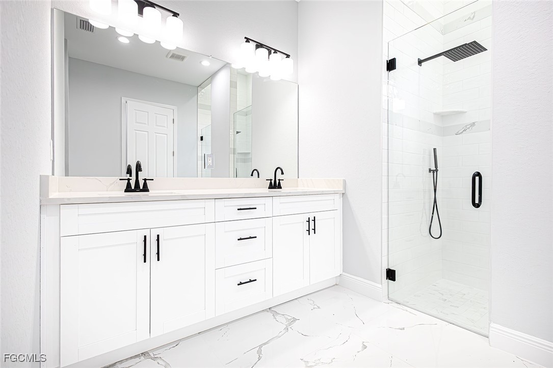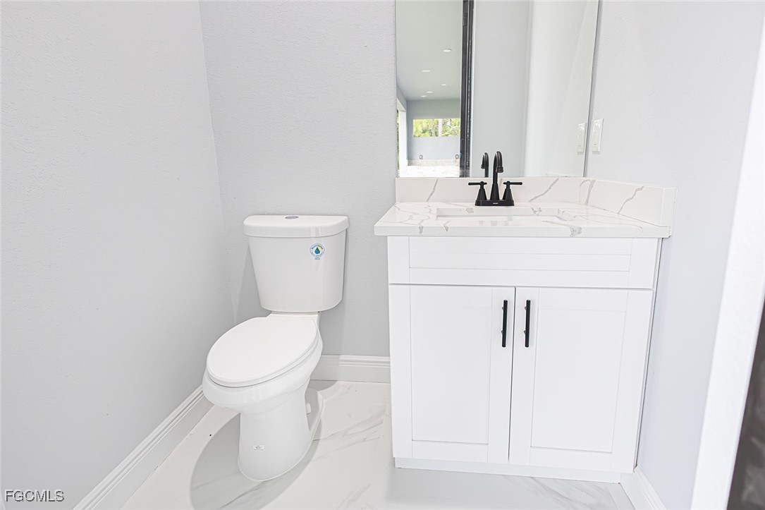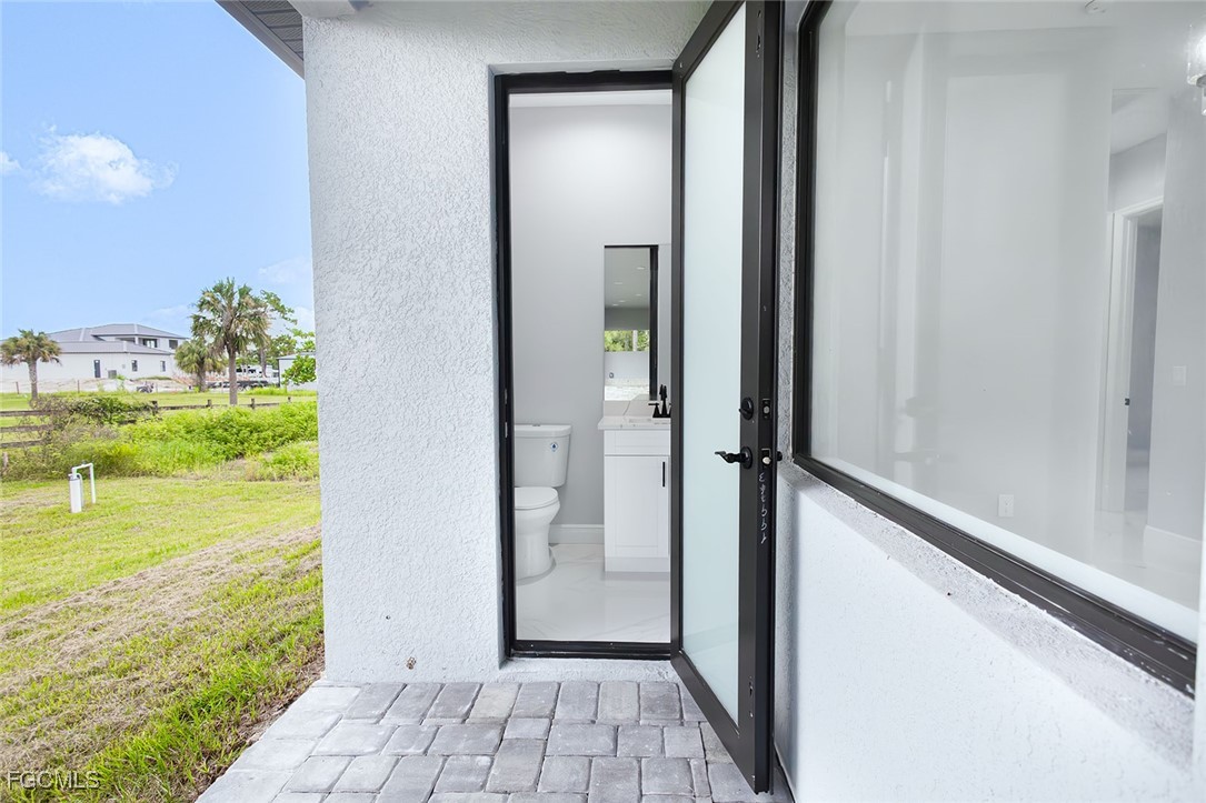 Welcome to this modern and elegant residence in a desired area of Lehigh Acres, just minutes from Buckingham Field, Fort Myers, Interstate I-75 and Southwest Florida International Airport (RSW). This 3 bedroom, 1 den, 2.5 bath home features a split floor plan with many upgrades for you and your family. For your safety, it has hurricane impact doors and windows. Sleek cabinets, granite countertops and stainless-steel appliances. This house has ceramic coating throughout the house. The split floor plan provides additional privacy to the master bedroom, and the master bathroom has spa-like features: separate shower with dual shower heads, double vanities and dual walk-in closets. Updated with light fixtures throughout the house. Outdoor sink and counter, half bath for future pool or outdoor activities, spacious patio, automatic sprinkler system, paver driveway, epoxy coated garage floor. Interior photos shown do not reflect the actual color of the tiles, light fixtures or countertops in the property. Schedule your visit today to see this gem in the process of completion.