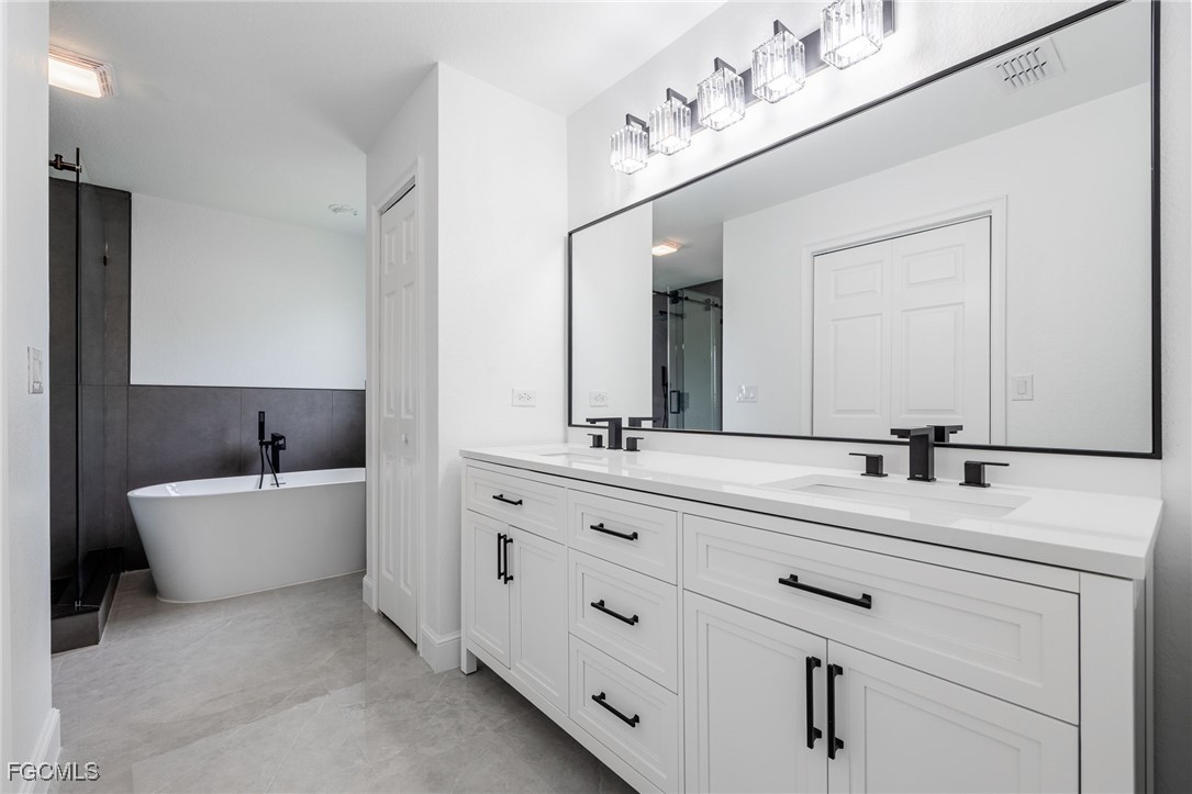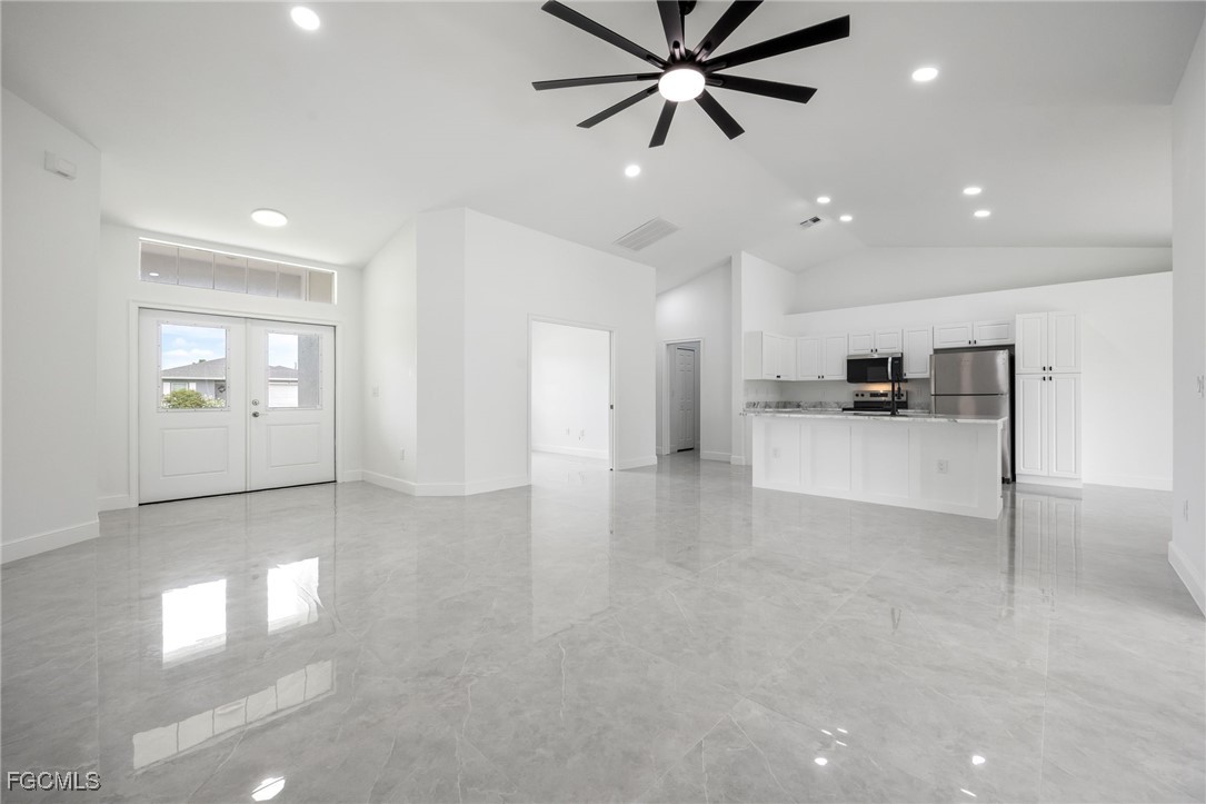 Beautifully remodeled 3 bedroom + den, 2 bath pool home with 2-car garage in NE Cape Coral. This home has been fully remodeled, and completely updated with luxury finishes throughout the interior. Features include brand-new double front doors, fresh interior and exterior paint, all new tile flooring, vaulted ceilings, recessed lighting, and new ceiling fans and light fixtures. The kitchen offers brand-new stainless steel appliances, new granite countertops, a new sink, and updated fixtures. Both bathrooms have been renovated with new vanities and mirrors; the primary suite includes a new walk-in shower and a standalone soaking tub, while the guest bath has a redone shower and updated finishes. Additional upgrades include a 2024 roof and 2022 A/C. Outside, enjoy a screened lanai with a sparkling pool—perfect for entertaining or relaxing. Move-in ready with modern updates and a bright, open layout, this home is ideal for enjoying the Florida lifestyle.