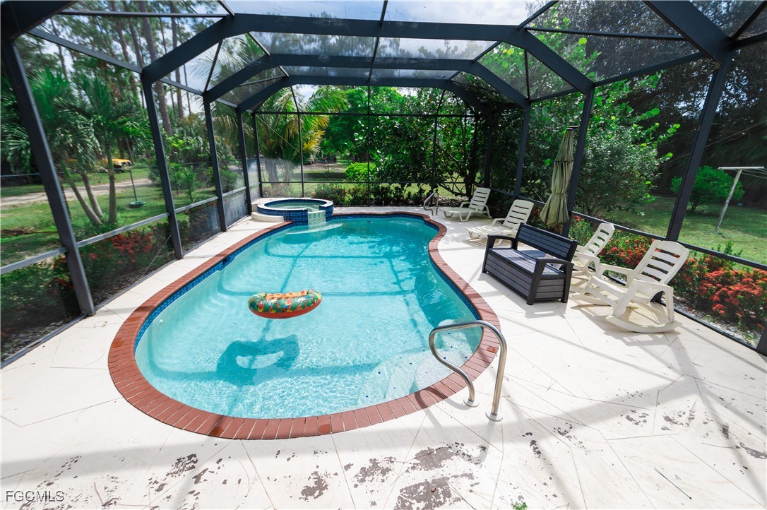 Discover this spacious two-story fixer-upper in desirable Lehigh Acres with city water, offering endless potential on a generous 2+ acre lot! This 3-bedroom, 2.5-bath home boasts 2,591 sq ft of living space, a refreshing pool, fenced yard, outbuildings. Built in 1997, it features tile, wood, and carpet flooring (though most has been removed to subfloor for your customization), along with appliances including refrigerator, range/oven, dishwasher, disposal. Currently undergoing renovations but sold strictly AS-IS due to sellers' personal circumstances—motivated owners eager for a quick sale! Buyer to complete unfinished projects, including new flooring throughout, full master bath remodel, drywall repairs, and painting. Property is on the city water and septic system. Perfect opportunity for buyers ready to personalize their dream property—bring your vision and offers today!