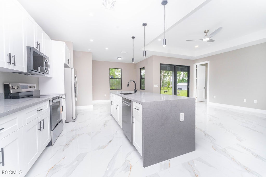 Be the first to live in this beautiful, newly constructed home located in the heart of Lehigh Acres! Conveniently situated near shopping centers, top-rated schools, and medical facilities – everything you need is just minutes away. With modern finishes throughout and Washer & Dryer included. Spacious yard & fresh landscaping. Prime location near local amenities. Move-in Ready – Schedule your tour today and secure this gorgeous home before it’s gone!
