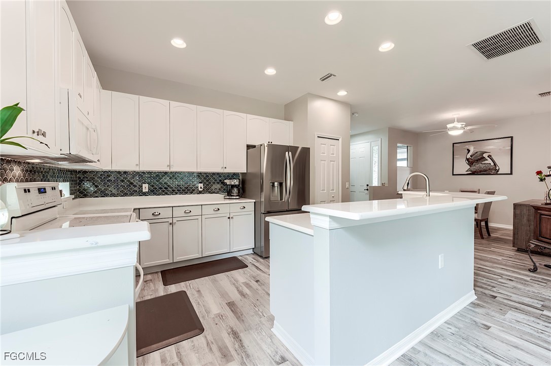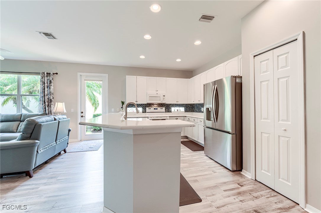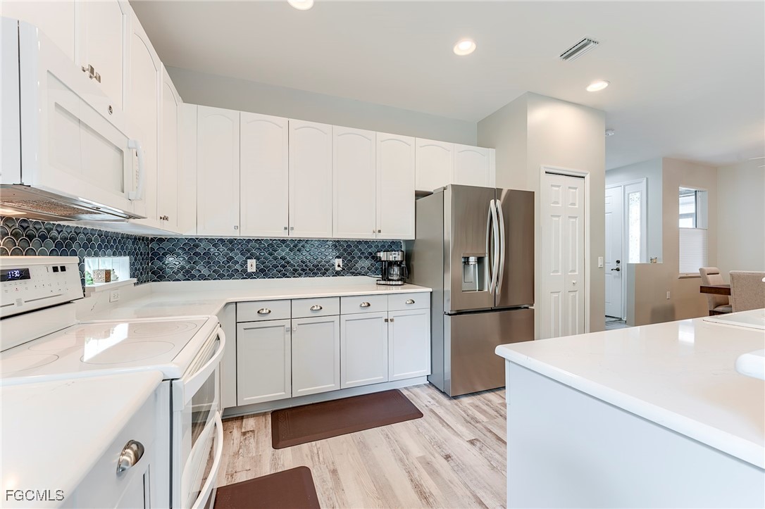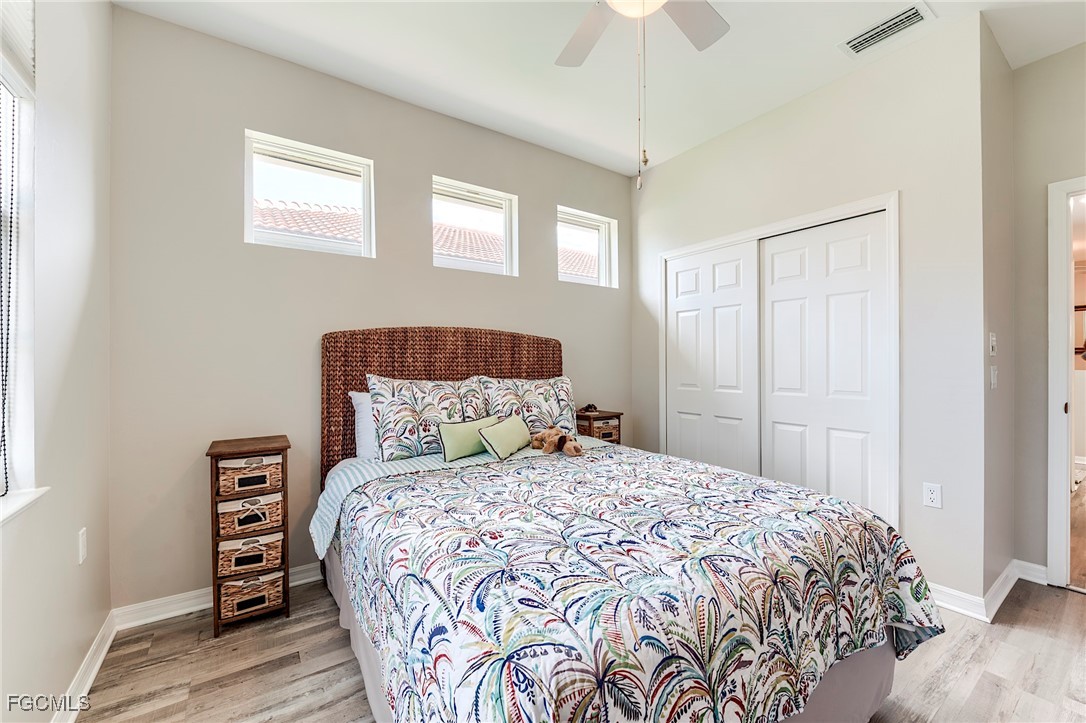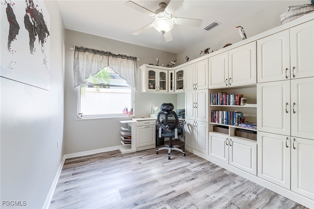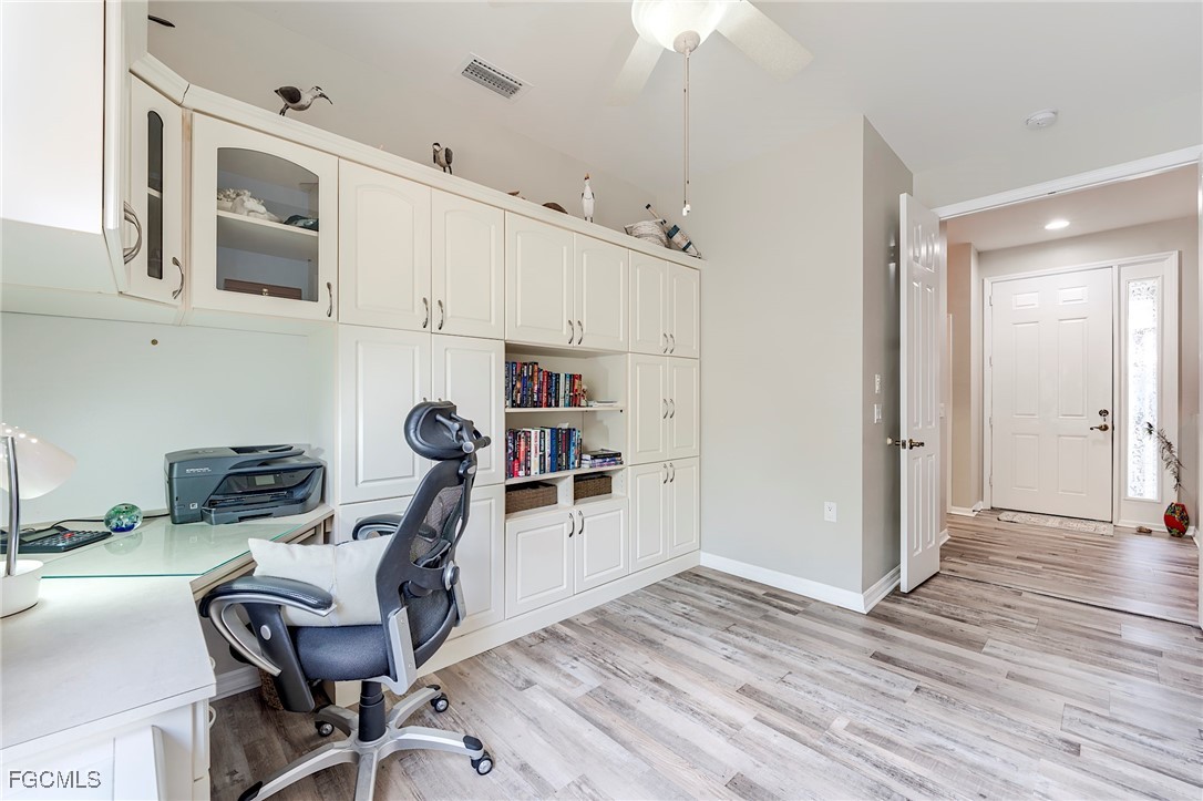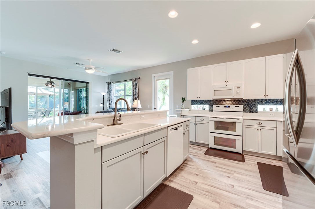 Welcome to this WCI-built Picasso model home in the Avila community of Pelican Preserve, a "walls-in only" insurance community where the HOA handles all exterior maintenance. The HOA/Condo replaced the roof, gutters, downspouts, and painted the exterior in 2021. Pelican Preserve is a nationally recognized active lifestyle 55+ gated master-planned community. This single-family home overlooks the #2 Heron Hole on the membership optional 27-hole golf course. Featuring 2 bedrooms, 2 bathrooms, a den/office, dining room, 2-car garage, and an enclosed Florida room with sliders for an indoor-outdoor feel, the floor plan is both functional and inviting. The screened lanai offers beautiful views and space for a potential pool. All windows and doors have electric roll-down shutters for peace of mind. The home has gas availability but currently uses electric for cooking, along with a tankless gas water heater for endless hot water. Move-in ready, with new LVP flooring, fresh paint and updates throughout. This house offers access to 3 pools, a fitness center, spa, game room, billiards, woodworking shop, 2 restaurants, a preserve with a boardwalk, dog park, fishing pier, 27-hole golf course, pickleball, tennis, and a theater. Fiber Internet and TV service is included so you only have to pay for electric, gas, and water.