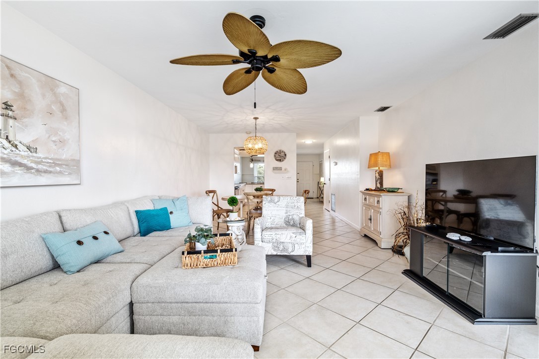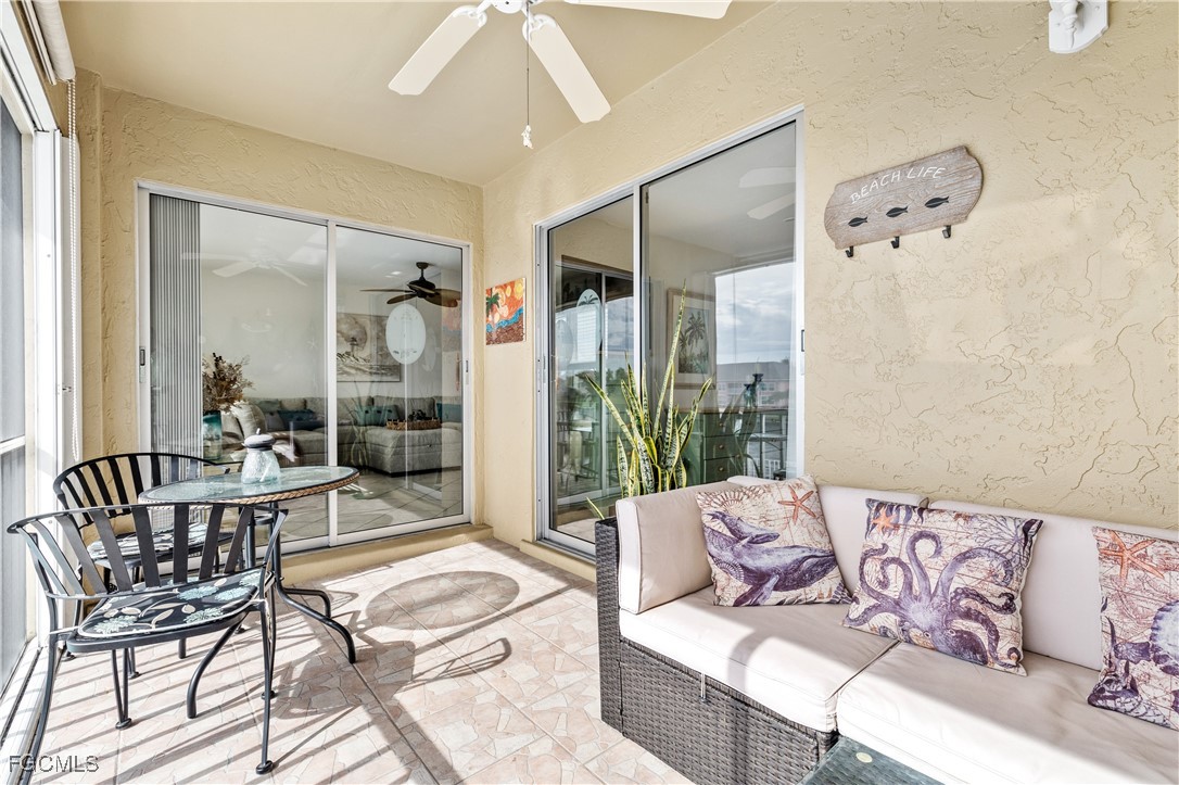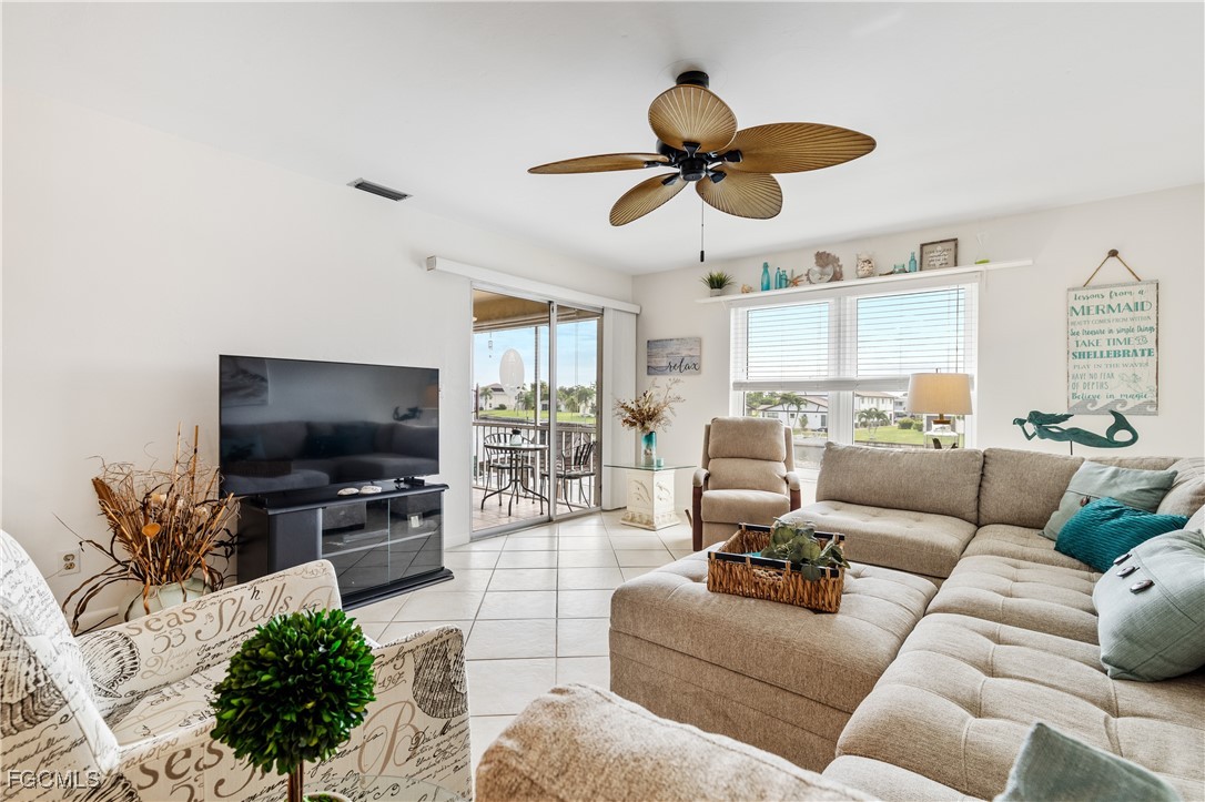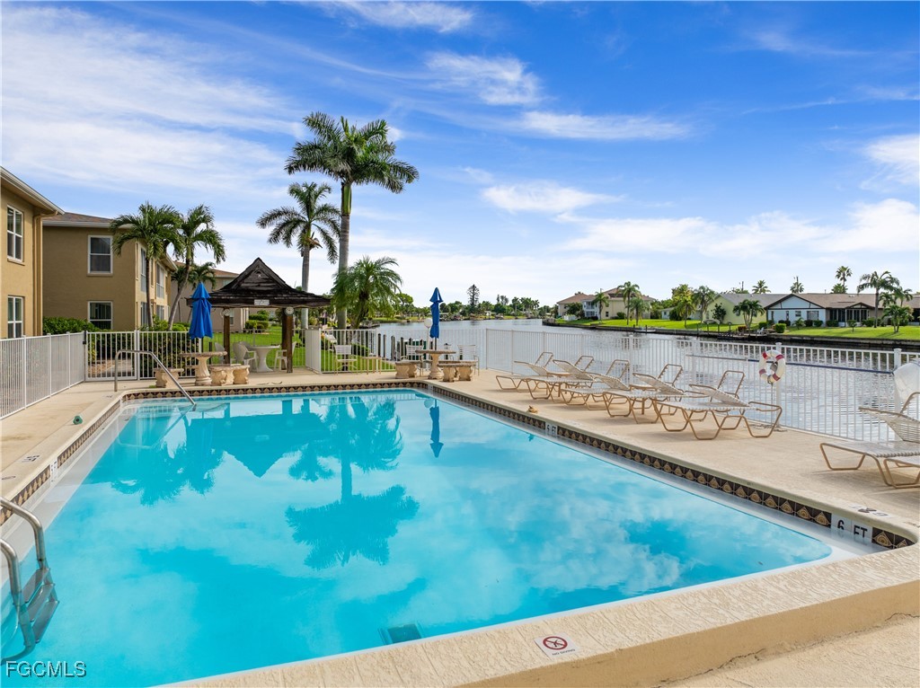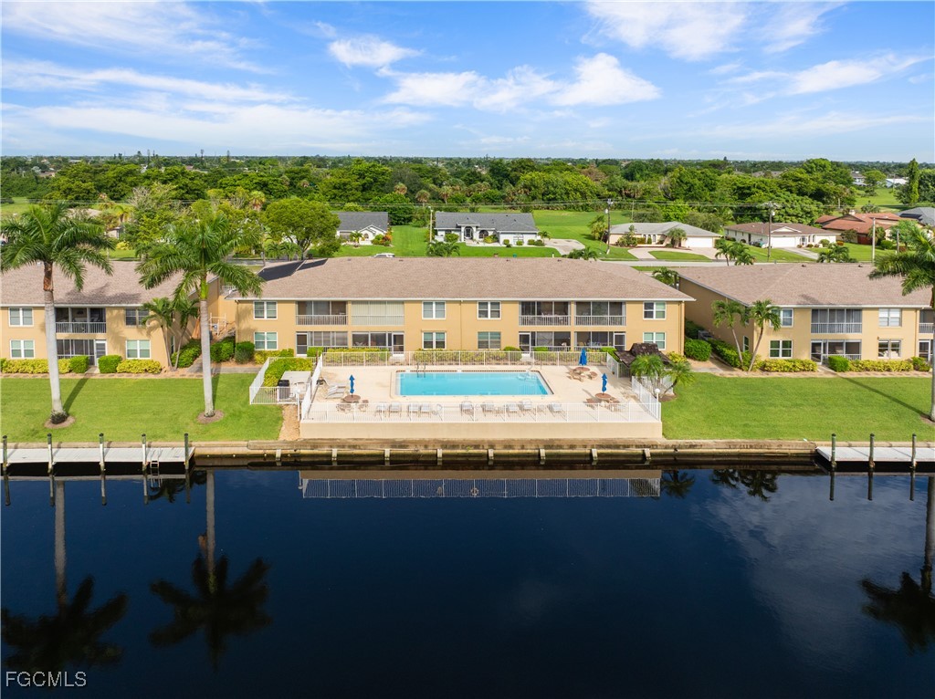 Major Price Reduction! Welcome to your piece of paradise in this beautifully maintained 2nd-floor condo! Enjoy this Turnkey 2 bed, 2 bath condo in a desirable 55+ community on the 200-foot-wide Rubicon Canal with Gulf access. This 2nd floor home features granite countertops in the kitchen and both bathrooms, a spacious island with seating, updated guest bath, front sitting room, and a primary suite with walk-in closet. Ceiling fans are found throughout, and a new washer and dryer were added in 2024. Recent updates include a new roof, new carports, HVAC in 2021, and the condo includes hurricane shutters for peace of mind. The condo is sold Fully Furnished, so you can move right in and start enjoying the Florida lifestyle. Community amenities include a heated pool with grill and tiki area, along with six shared dock spaces available on a first-come basis. The HOA provides low-maintenance living with trash, water, sewer, pest control, pool care, and landscaping all included. This is a non-rental, no-pet, no-smoking community offering serene waterfront living in Cape Coral—just bring your suitcase and enjoy your waterfront views of the largest canal in Cape Coral from your screened in lanai!