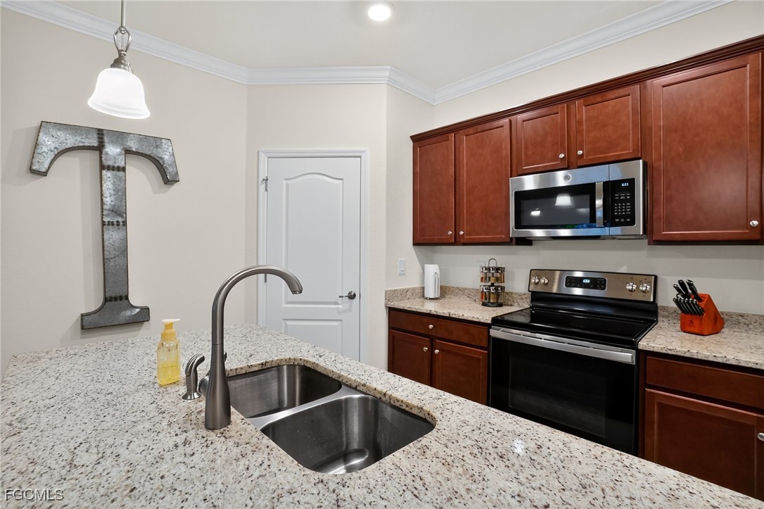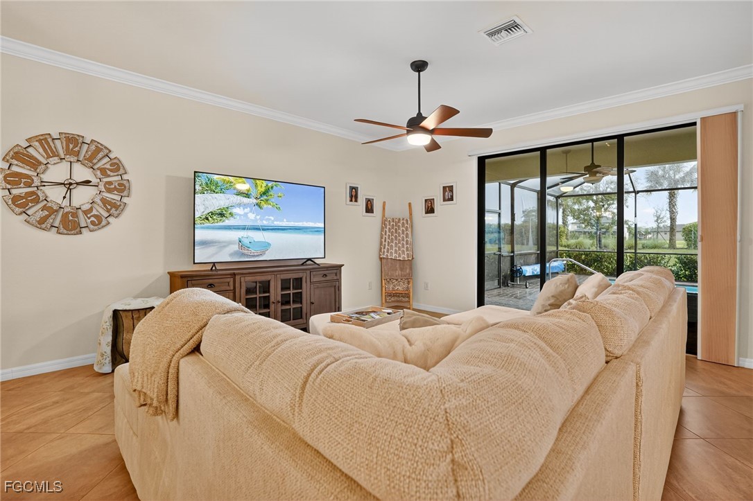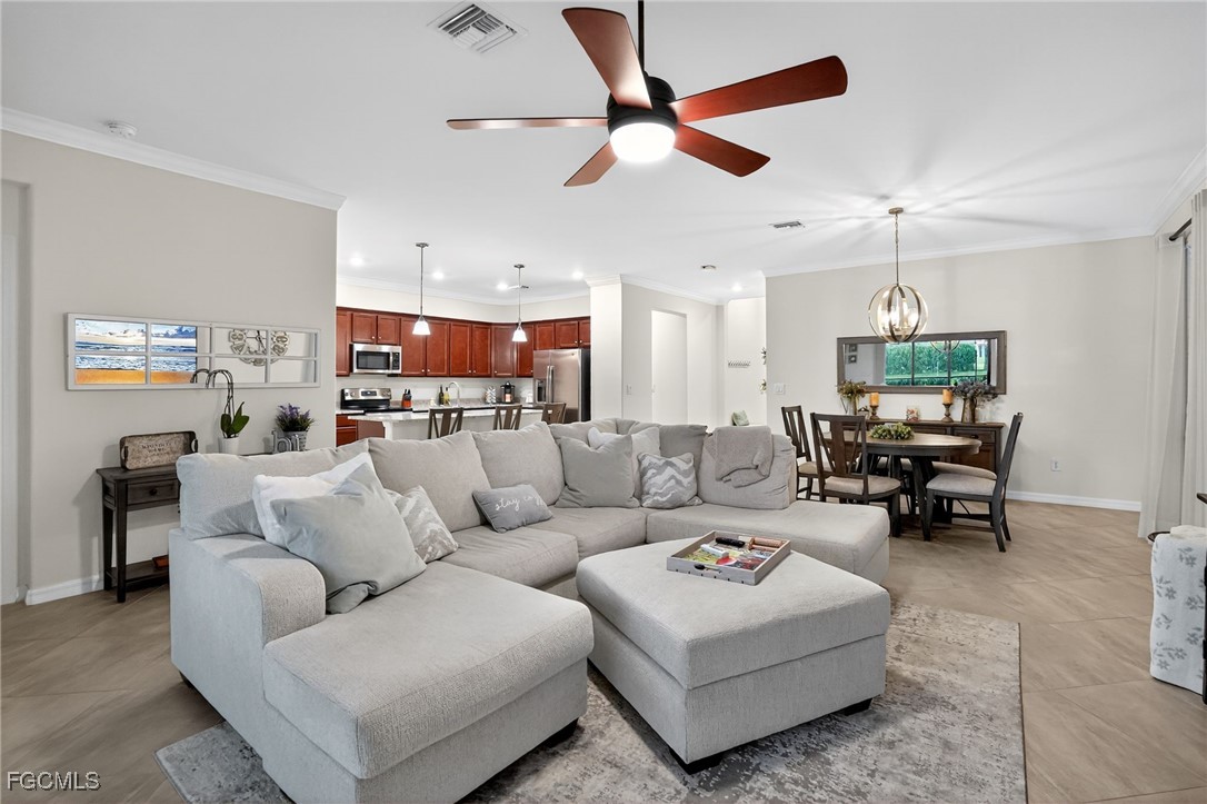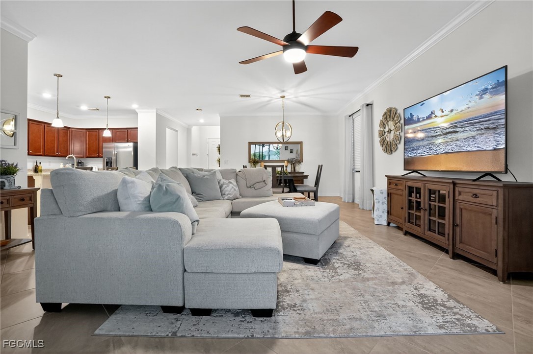 This stunning 3-bedroom, 3-bath pool home combines style, comfort, and convenience in one perfect package. Each bedroom has its own private bath, giving everyone space and privacy. The open floor plan flows beautifully from the living room into a chef’s kitchen with granite counters, stainless steel appliances, crown molding and tile throughout.