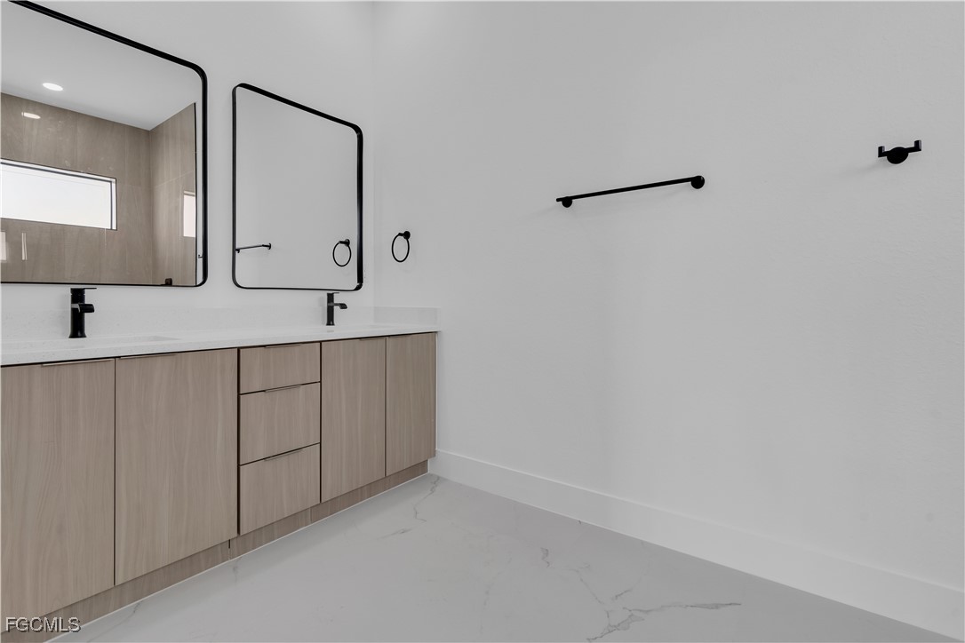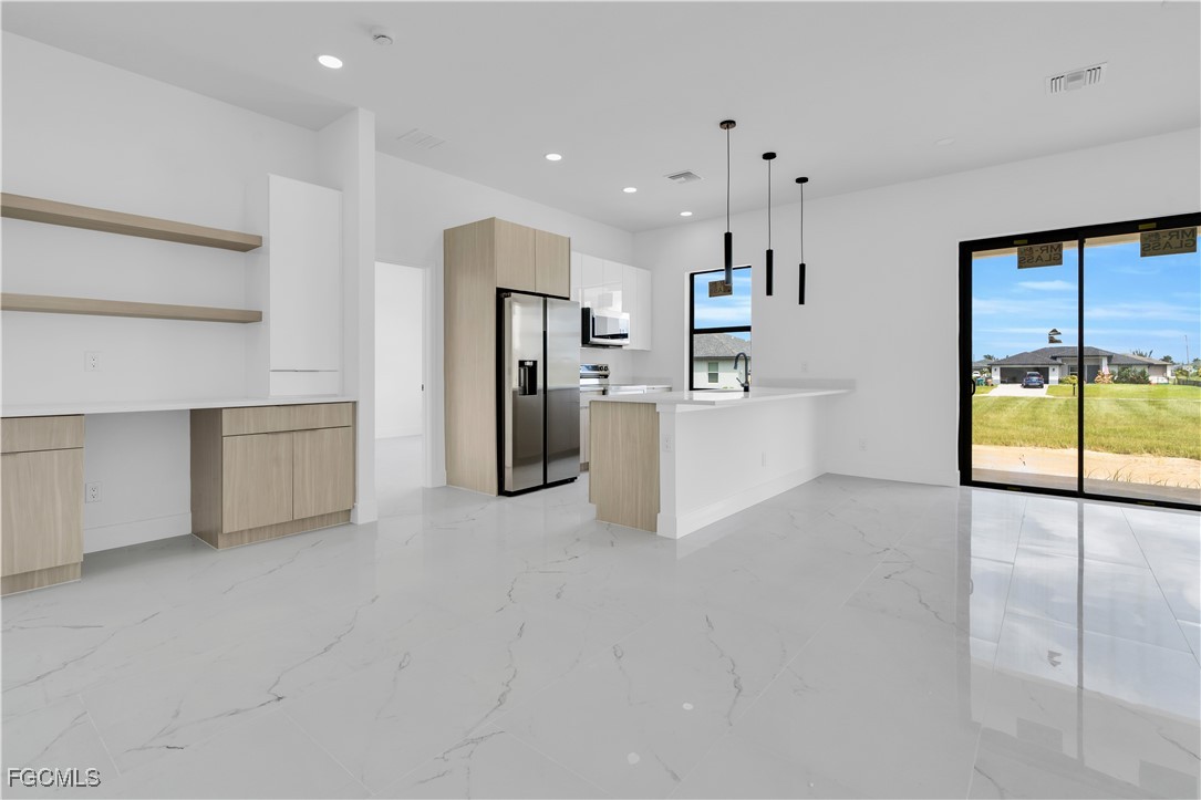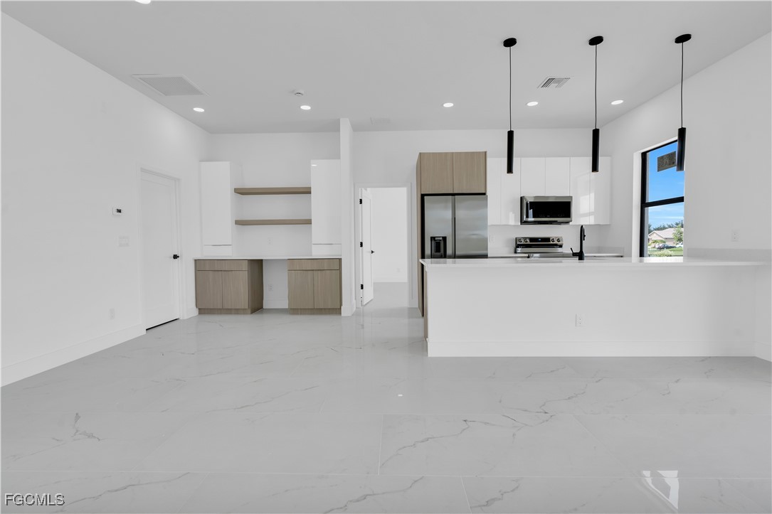 Welcome to your brand-new 2025 dream home in one of the most desirable up-and-coming neighborhoods of NW Cape Coral. This stunning 3-bedroom + Den / 2-bathroom residence offers the perfect blend of style, functionality, and location. Whether you're a first-time homebuyer, a growing family, or an investor looking for the ideal Airbnb or seasonal rental, this is the opportunity you've been waiting for. Step into an open-concept layout designed for modern living, flooded with natural light and elegant finishes throughout. The den is the ideal flexible space, perfect for a home office, creative studio, or guest room. The gourmet kitchen boasts sleek countertops, custom cabinetry, stainless steel appliances, and a large island, ideal for hosting and entertaining. Enjoy the spacious primary suite with walk-in closet and a luxurious ensuite bathroom featuring dual vanities and a walk-in shower.