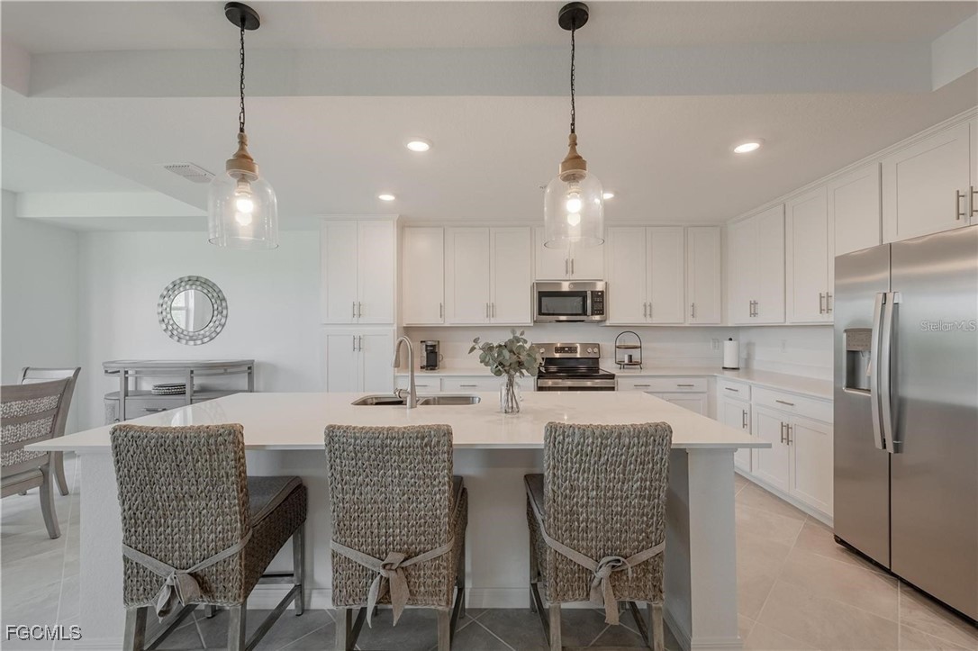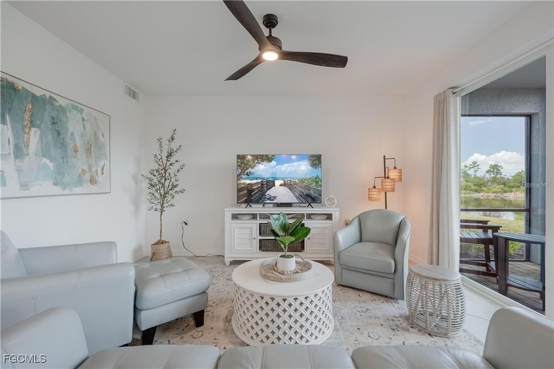 Welcome to your oasis in the gated community of Heritage Landing Golf and Country Club. Built in 2023, this elegant 2-bedroom, 2-bath, first-floor home with covered carport offers 1,154 sq ft of air-conditioned living and 1,283 total sq ft. The Beautifully Birkdale floor plan in Terrace V, is designed for comfort and function, with a soothing neutral palette, crown molding, and an open flow that invites relaxation. The expansive chef’s kitchen showcases stainless-steel appliances, quartz countertops, pendant lighting, and a large center island. Hurricane-impact windows and doors provide peace of mind and eliminate the need for shutters. Sliding glass doors lead to a screened in, under roof lanai with pavers flooring and screen door out to the grassy area, where you’ll enjoy uninterrupted nature views of the lake. The covered front porch enhances tropical cross breezes. The primary master suite features a lavish walk-in glass door shower, and generous closets with shelving. The guest suite has its own bath for privacy. A nearby carport and personal locked storage closet add convenience. This turnkey furnished Terrace Condo has gorgeous coastal furnishings, decorated with a designer’s eye for quality. From the moment you enter, you’ll be drawn to the tranquil lakeside view and peace of nature. Whether relaxing on your lanai or gazing out from the living or dining rooms, the view lifts your spirits and eases the stress of daily life. Watch bald eagles soar above the Charlotte Preserve and spot Rosetta spoonbills, great blue herons, egrets, and even exotic Caribbean birds as they migrate through this lush tropical estuary. Heritage Landing delivers a resort lifestyle: a stunning community pool with gradual entry and lap lanes, three restaurants including an outdoor café, two full-service bars, tennis, pickleball, bocce ball, guard-gated entry, state-of-the-art fitness center with aerobics studio, and a full-service spa for nails, massage, facials, sauna, and steam. The new clubhouse also features multiple dining venues from fine to casual. Unlike many golf condos, this unit has no additional $1,500 golf capital contribution fee and no $578. quarterly Golf Club fee dues. Instead, ownership includes Social Membership with public golfing privileges. Don’t miss this rare opportunity to own a furnished 2023-built Terrace Condominium in Terrace V at Heritage Landing, one of Charlotte County’s most exclusive communities. Short drive to marinas, Punta Gorda downtown business district, I 75 and the Punta Gorda Airport with Allegiant Airline nonstop services. For additional US and International travel, Southwest Regional Airport (RSW) is a short drive, located in Fort Myers. Schedule your tour today and discover the unmatched luxury and lifestyle awaiting you at Heritage Landing!