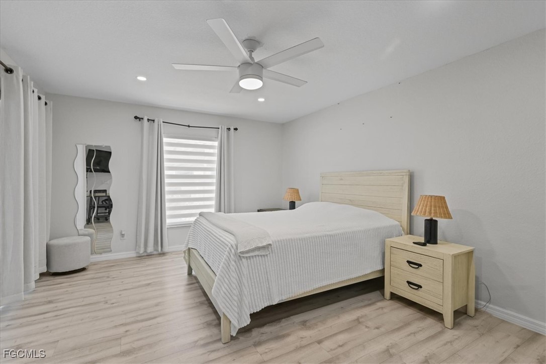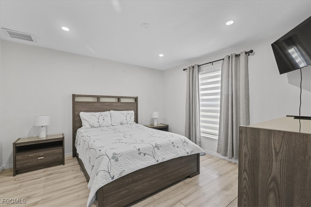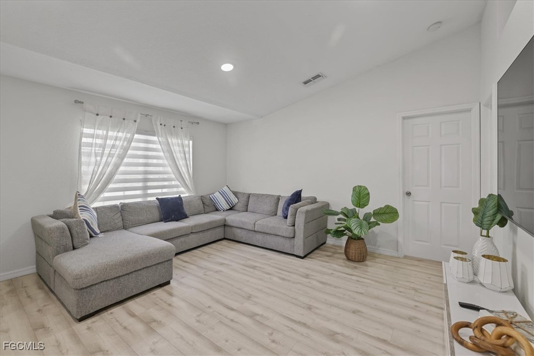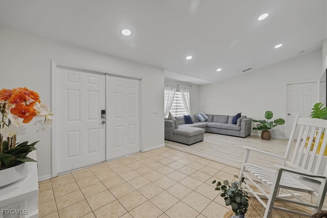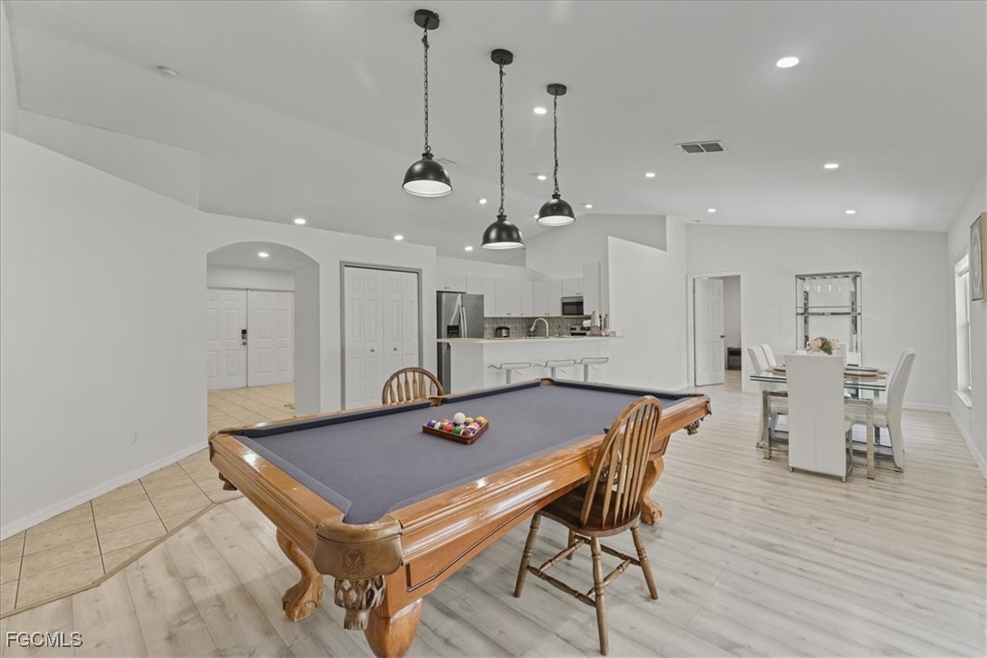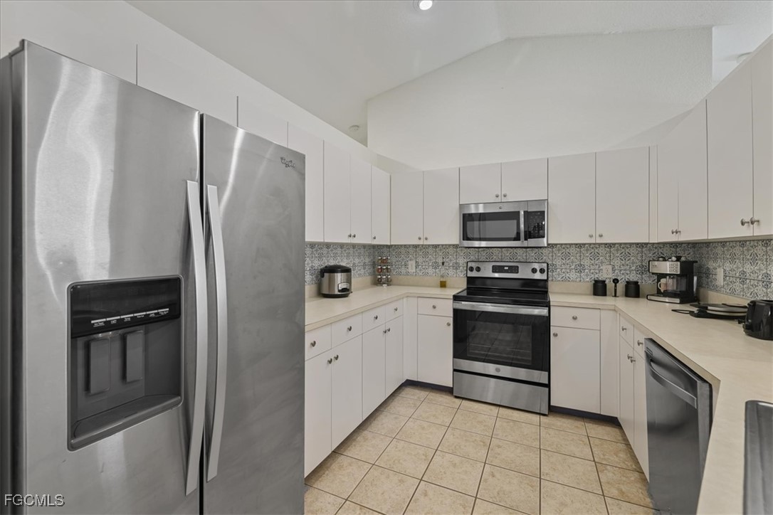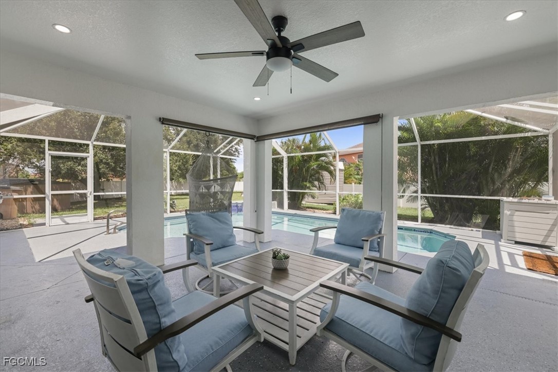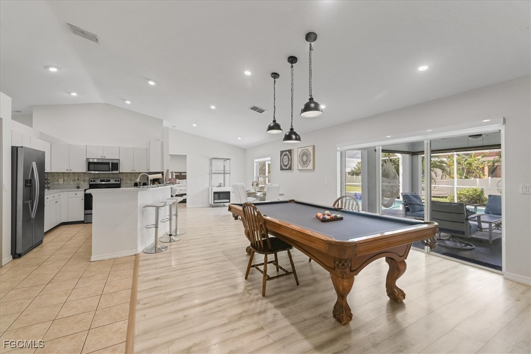 Welcome to your tropical retreat in the highly desirable Northwest Cape Coral! This beautifully maintained 3-bedroom, 2-bathroom pool home offers the perfect blend of comfort, style, and Florida living. Step inside to find a bright and open floor plan, featuring high ceilings, tile and vinyl flooring throughout, and a spacious living room ideal for entertaining. The kitchen features stainless steel appliances; ample cabinets space and a breakfast bar. The split bedroom layout provides privacy for the owner's suite, which boasts a walk-in closet and en-suite bath with dual sinks and a walk-in shower. Two additional bedrooms and a second full bath make this home ideal for families, guest, or a home office setup. Outside, your personal oasis awaits: a screened-in lanai with a sparkling heated pool, perfect for relaxing or hosting poolside gatherings year-round. The fenced in back yard offers plenty of room for pets, kids, or even a future garden. Come in and see for yourself.