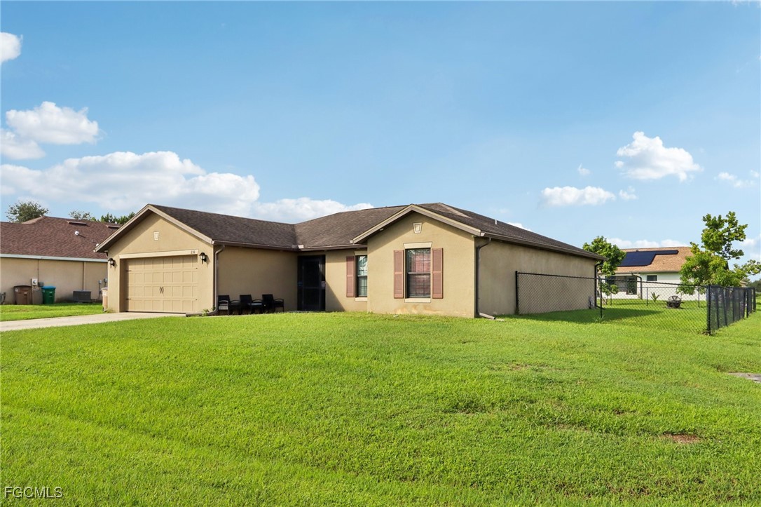 Welcome to this beautifully maintained 3-bedroom, 2-bath home offering 1,522 sq. ft. of comfortable living space in the heart of Cape Coral. Situated on a spacious corner lot, this property provides extra privacy and curb appeal, complete with a fully fenced yard—perfect for kids, pets, or entertaining outdoors.