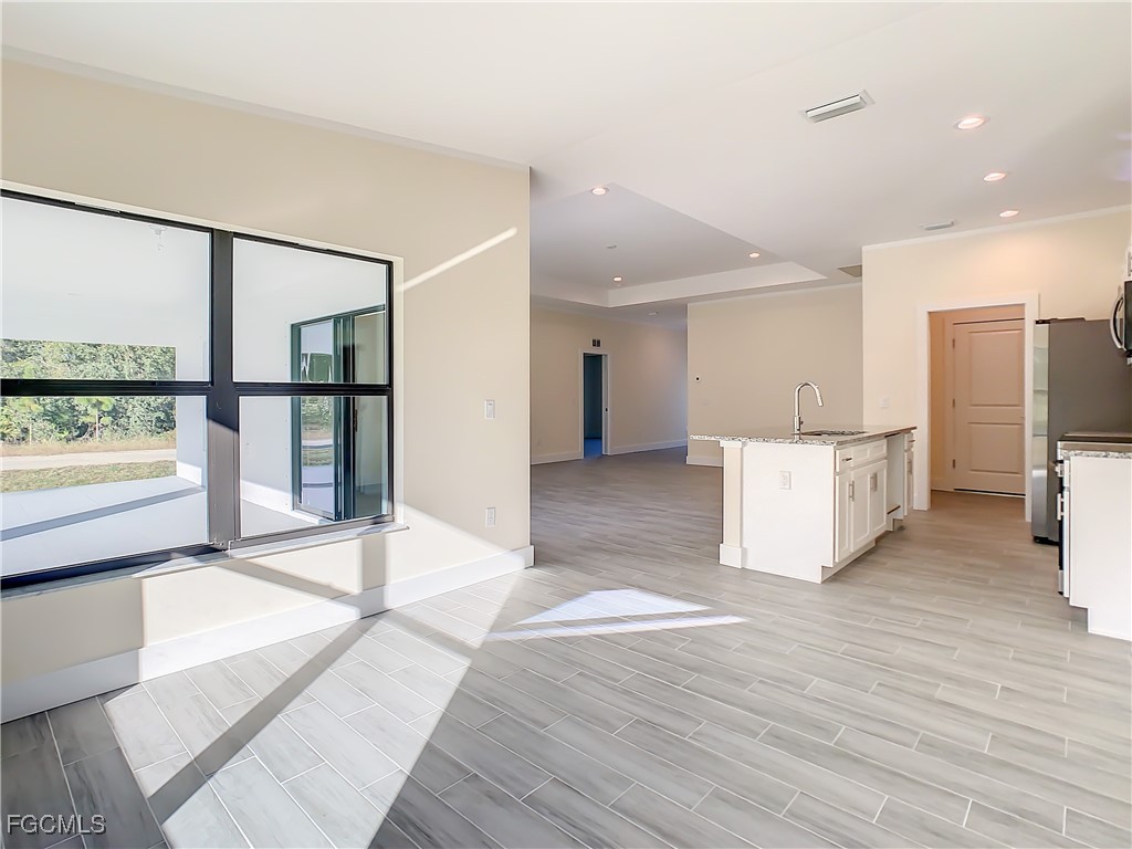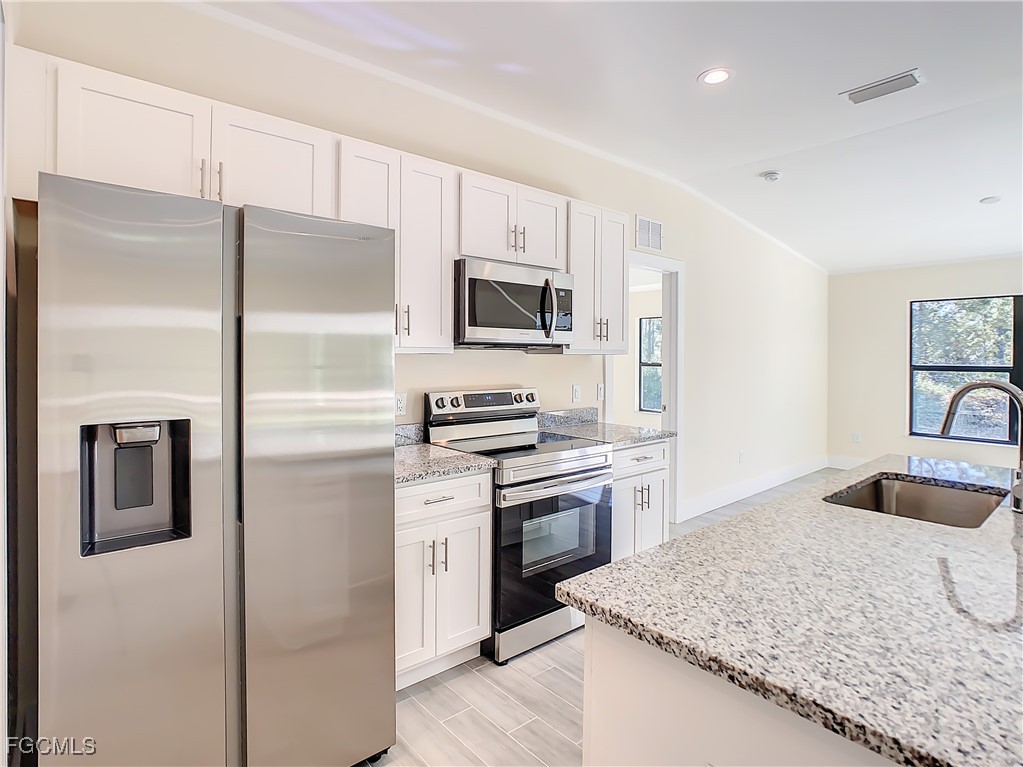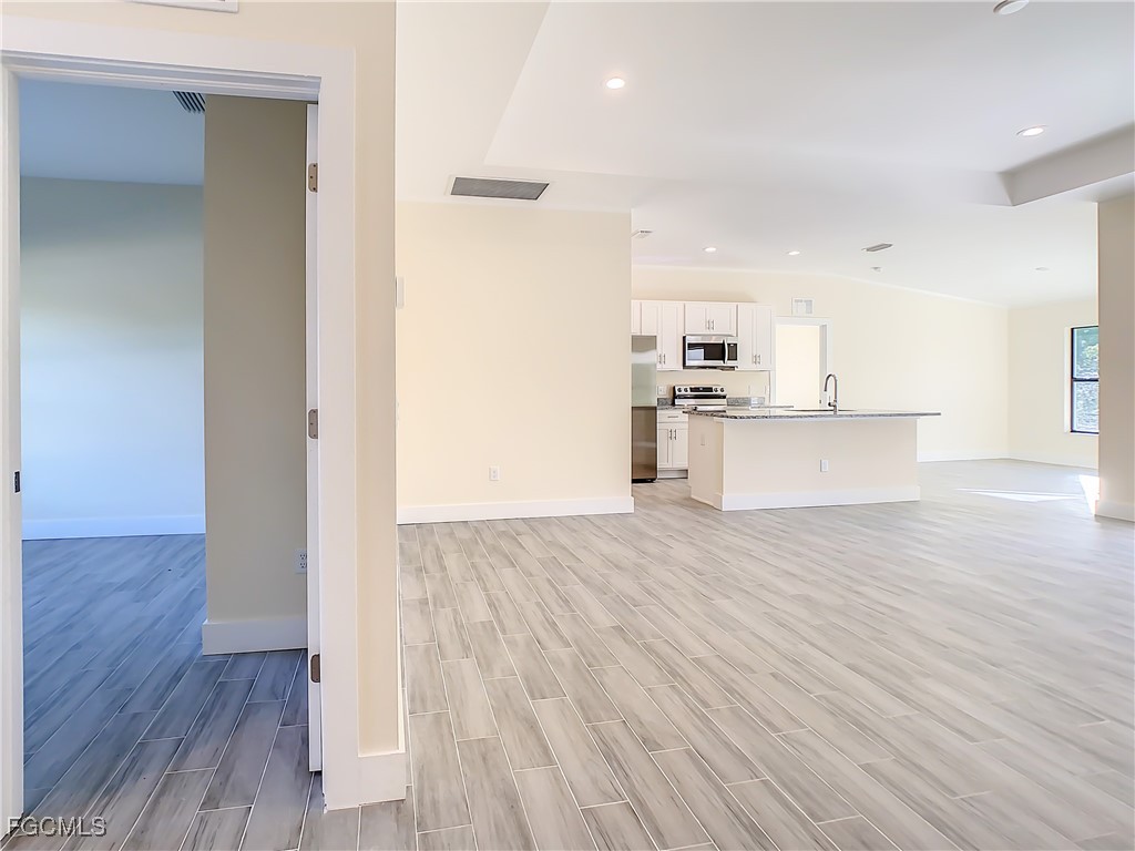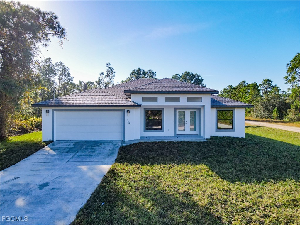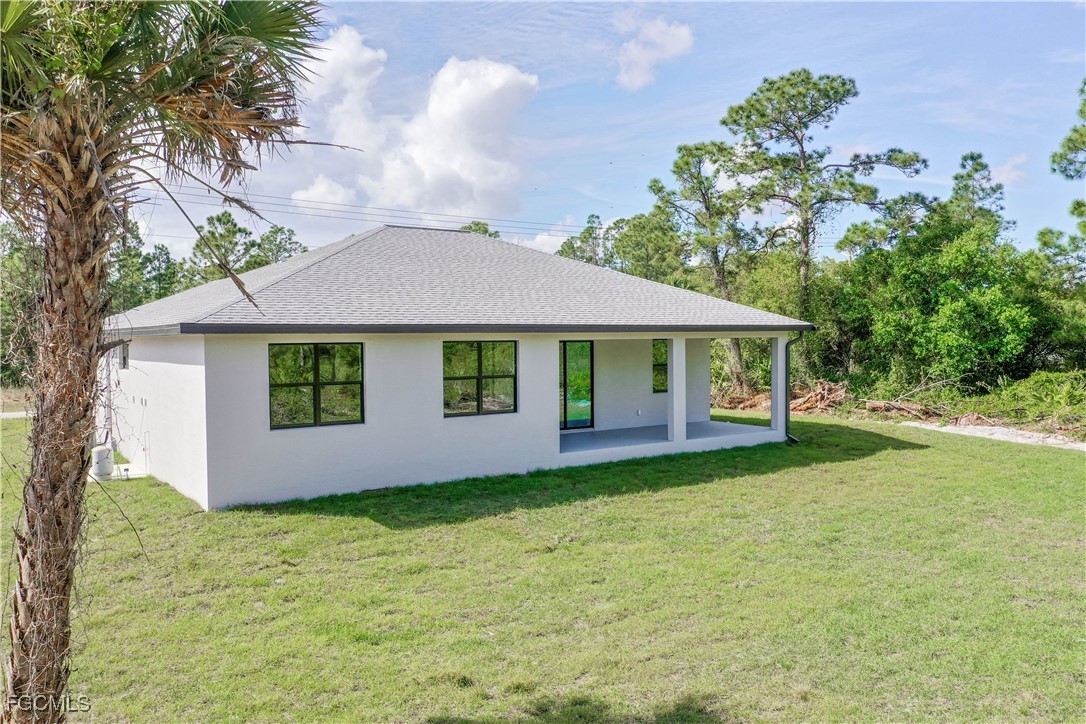 0.5 Acre Oversized Corner Lot..Enough space for a shed for cars or workshop in the rear. Beautiful brand-new home under construction .The Property will be finished in 4 weeks or less. The finish pictures are from the same model previously sold. This is a oversized 4-bedroom - 2 bathroom. The House is almost completed and will be ready to move in soon. Granite countertops in kitchen and bathroom. Stainless steel appliances, washer and dryer hook up, granite countertops, porcelain tile throughout, coffered ceilings in living room and master bedroom, this beauty has it all. The home will come with epoxy flooring in garage and painted floors on the lanai and porch. The house is located in a quiet neighborhood and is close to Downtown Lehigh Acres, SR 82 and gives quick access to Ft Myers and I-75