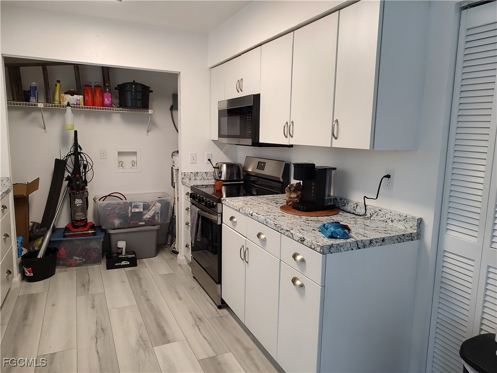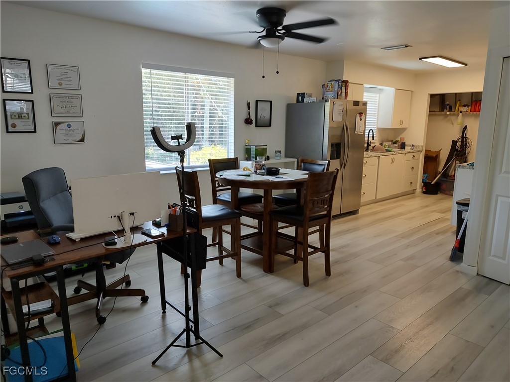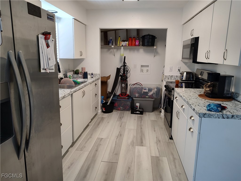 Rare stilted pool home is freshly painted inside and outside, new roof after hurricane Ian. Newly updated with luxury vinyl floors, cabinets, stainless steel appliances, soffit & fascia and more. Downstairs foyer area with storage space, upstairs with large open living / dining area, galley kitchen, pantry, washer/dryer hookup and storage closet. Large pool is screened in and there's plenty of undercover patio space for parties or extra storage. Home is currently rented annually with lease expiring Nov. 30. Excellent rental income possible. Close to schools, shopping and dining.