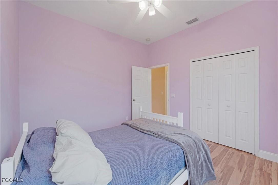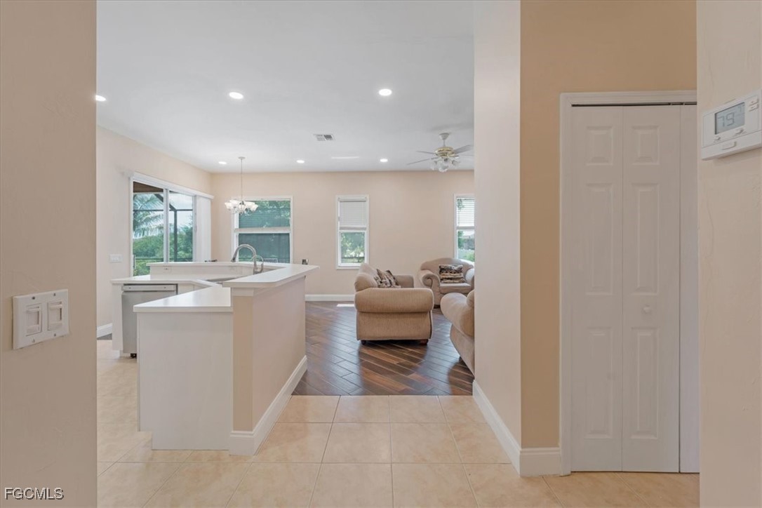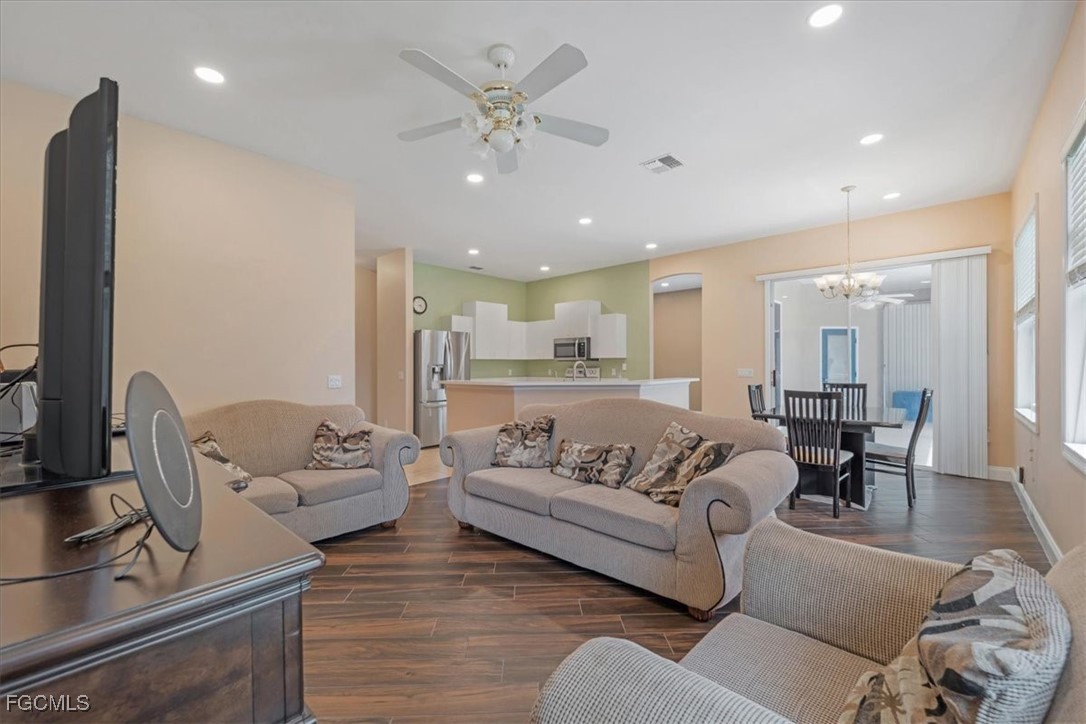 Escape to a stunning, move-in ready 3-bedroom, 2-bathroom pool home perfectly situated on a sprawling, half-acre double lot. This property offers the ultimate in privacy and space with the freedom of NO HOA fees or flood insurance. Step inside to a beautifully designed floor plan that includes a dedicated den, formal living and dining rooms, and a separate breakfast nook. The chef's kitchen features stainless steel appliances and a convenient breakfast bar. Stylish wood flooring and tasteful tile create a seamless flow throughout the main living areas. The residence features a hot water heat recovery system. The true highlight is the incredible outdoor space. Your private oasis awaits with a sparkling in-ground, screened-in pool, perfect for relaxing and entertaining. The expansive yard provides ample room for activities and includes a concrete RV pad with water and electricity hookups—offering secure parking for your RV or boat. Located in a desirable neighborhood near Fort Myers, you'll have easy access to the interstate, SWFL International Airport, pristine beaches, and vibrant downtown attractions. This is an opportunity you don't want to miss.