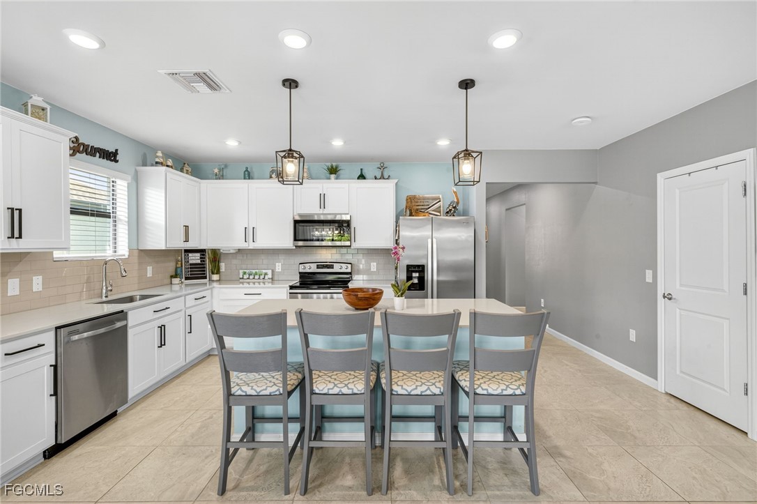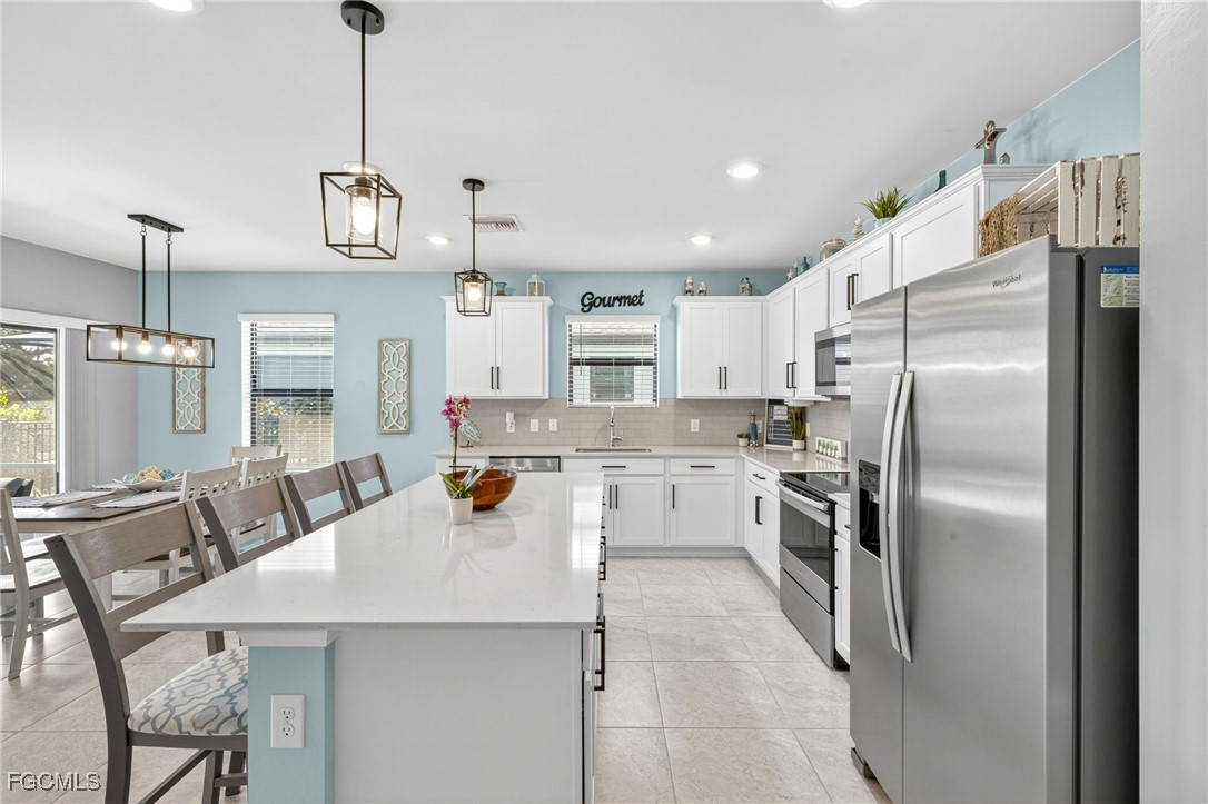 Step inside to a bright living area and modern finishes throughout. The kitchen is highlighted by sleek quartz countertops, stainless steel appliances, and a spacious island perfect for gathering. The primary suite features a walk-in closet and private bath, while three additional bedrooms provide plenty of space for family, guests, or a home office.