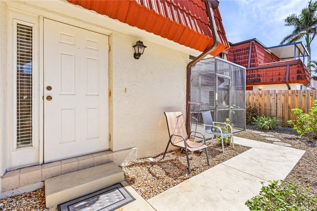 Nestled in the vibrant heart of Iona, this property offers a lifestyle brimming with serene beauty and modern convenience. Imagine waking up each day and walking down to the marina with a coffee in hand, Looking over the Caloosahatchee River. The community boasts an array of sought-after amenities including, a sparkling pool, an inviting dock, a fully equipped marina, and a private beach on the banks of the Caloosahatchee River. Perfect setting for those who cherish seaside living. The home's outdoor spaces are a private oasis, featuring mature landscaping and a secluded courtyard ideal for relaxation or entertaining. Inside, the allure continues with a cozy fireplace that adds warmth and charm. This townhome offers 2 bedrooms upstairs and 2 baths, 1 up and one downstairs for convenience. There is plenty of room here with over 1300 sq.ft. of living area, a beautiful large screened in lanai for relaxing downstairs and a nice balcony off the master bedroom to enjoy your mornings or evening sunset hues. This unit is being sold partially furnished with solid wood cabinets in the kitchen, laundry in residence. Positioned for ultimate convenience, you're just a short drive from the pristine shores of Sanibel, the vibrant city life of Fort Myers, and the easy access of Interstate 75, with a plethora of shopping, dining and healthcare facilities at your fingertips. Don't miss your chance to own a piece of paradise where every detail has been crafted for comfort, this is the haven you've been waiting for.